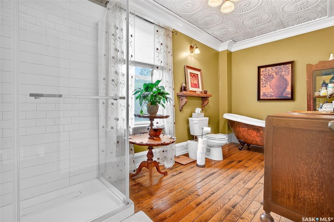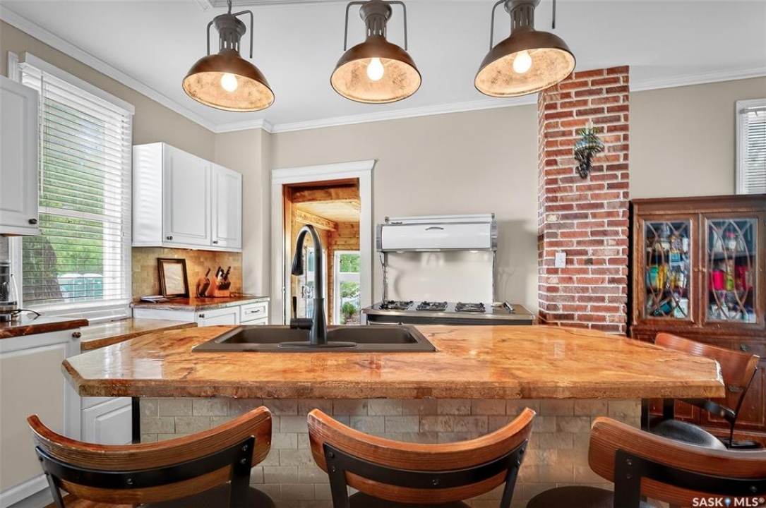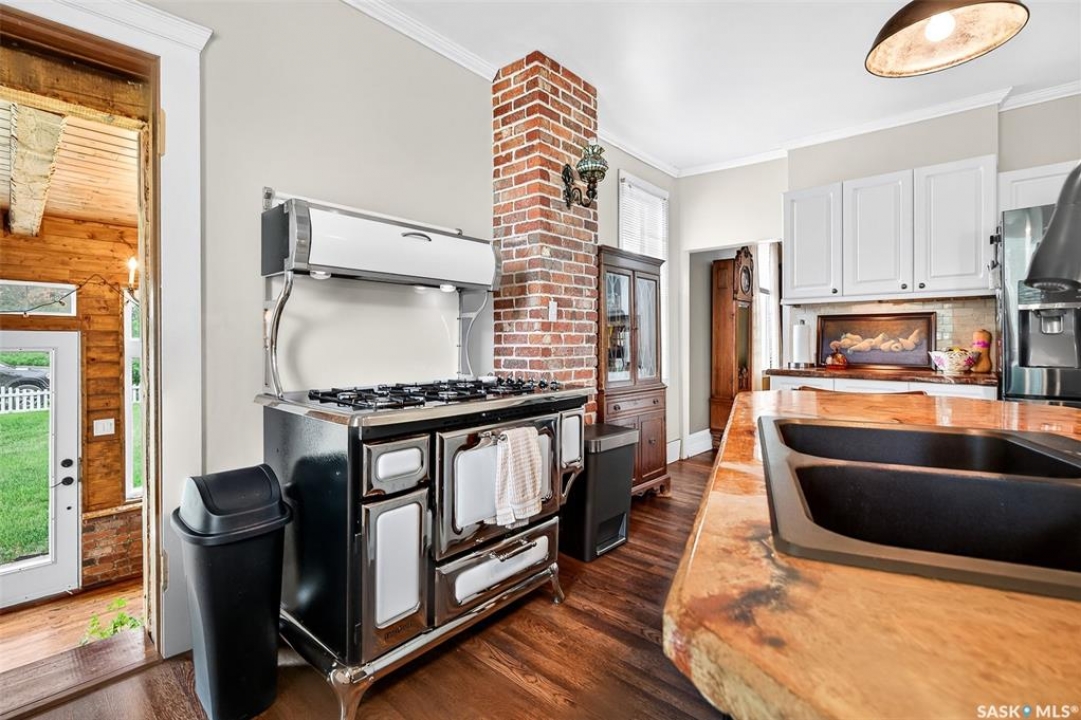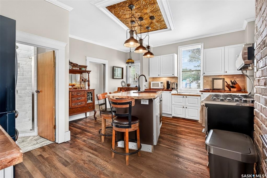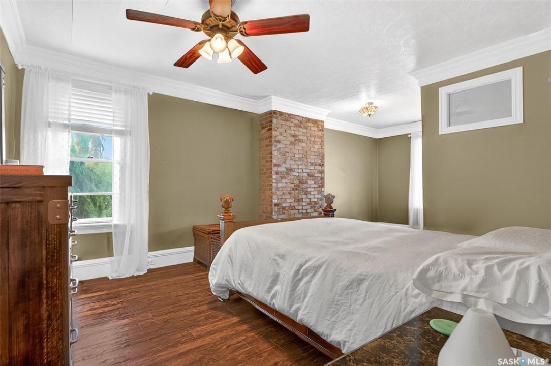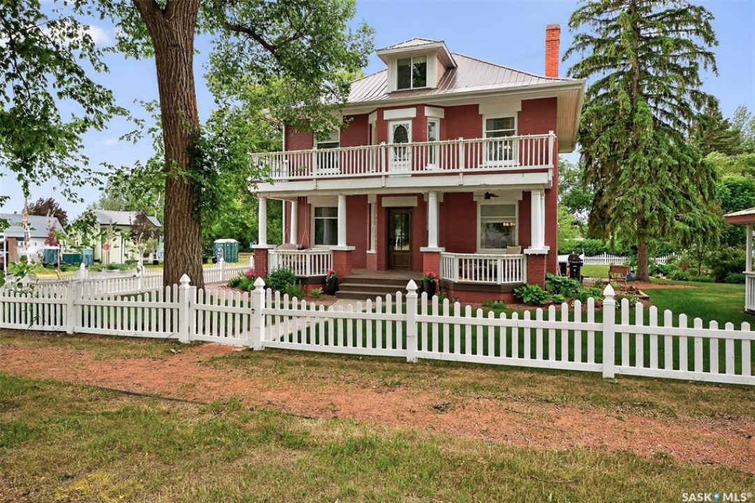 Looking for a once in a lifetime opportunity to own one of the most stunning character homes around? You won't want to miss this one! This 3 storey double brick home boasts 2,600 sq.ft. of living space on 3 floors with 3 bedrooms and 2 bathrooms. Sitting on 4 large corner lots with the most beautiful landscaping around. This iconic home stands out as soon as you see it with its excellent curb appeal. This yard features a vinyl fence, stunning gazebo, custom riverbed, stunning rock gardens, beautiful flowers and a stamped concrete pad with a rock fireplace. The home features a huge covered veranda which welcomes you into a beautiful foyer. Leading into a huge open living / dining room complete with a wood fireplace and beautiful hardwood floors. On the other side of the front door we find an office and second entrance - you are sure to love the real brick flooring. At the back of the home we have a huge kitchen which is sure to impress! Complete with a stunning custom gas stove that matches the era and a beautiful island that ties it all together. Off the kitchen we find one of the cutest sunrooms you can find - you will spend many hours here. Heading upstairs we find a huge second floor balcony with 3 large bedrooms! The primary bedroom features a seating area and a large walk-in closet. There is laundry on the second floor for added convenience. The absolutely stunning 4 piece bathroom will blow you away! From the clawfoot soaker tub to the copper sink or stunning vanity it will impress you. Heading up to the third floor we have a large loft space finished in pine that could be used as a 4th bedroom, playroom or yoga loft! The basement features a large family room, workshop, and lots of storage! If you are looking for a different pace of life Mortlach is an excellent little town. Located just 30 minutes west of Moose Jaw and boasting a K-12 school! There is so much more to see - book your walkthrough today!