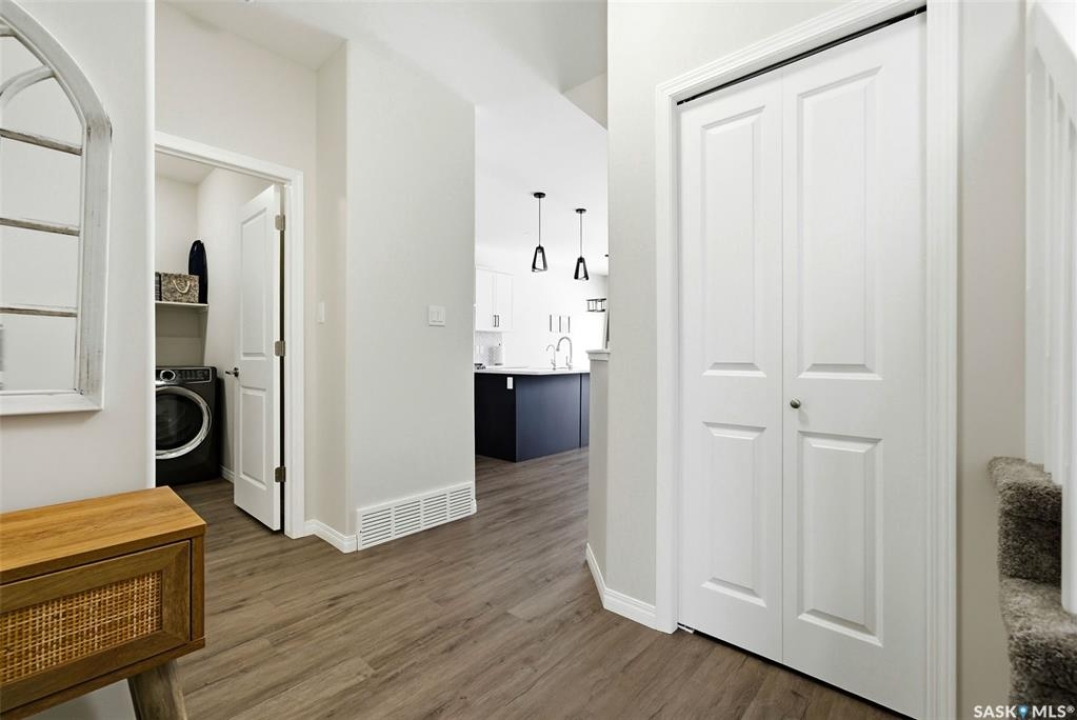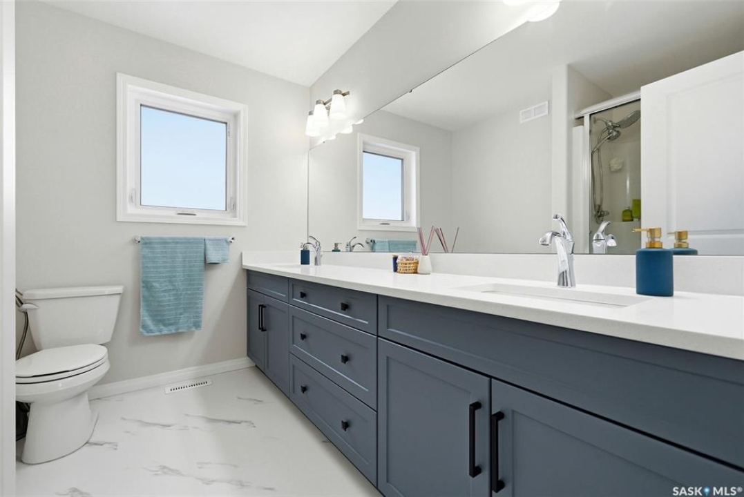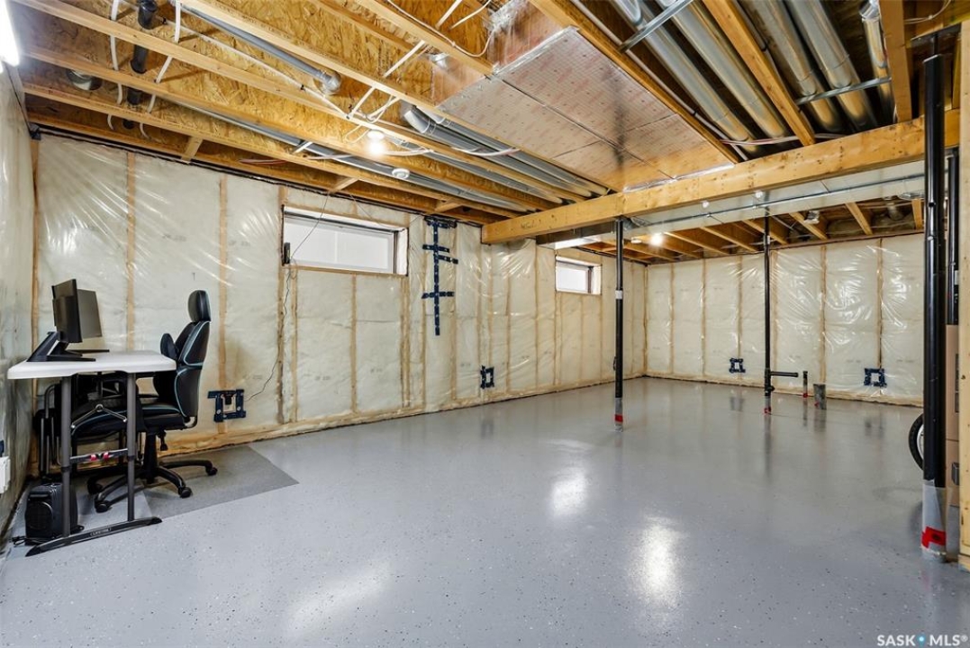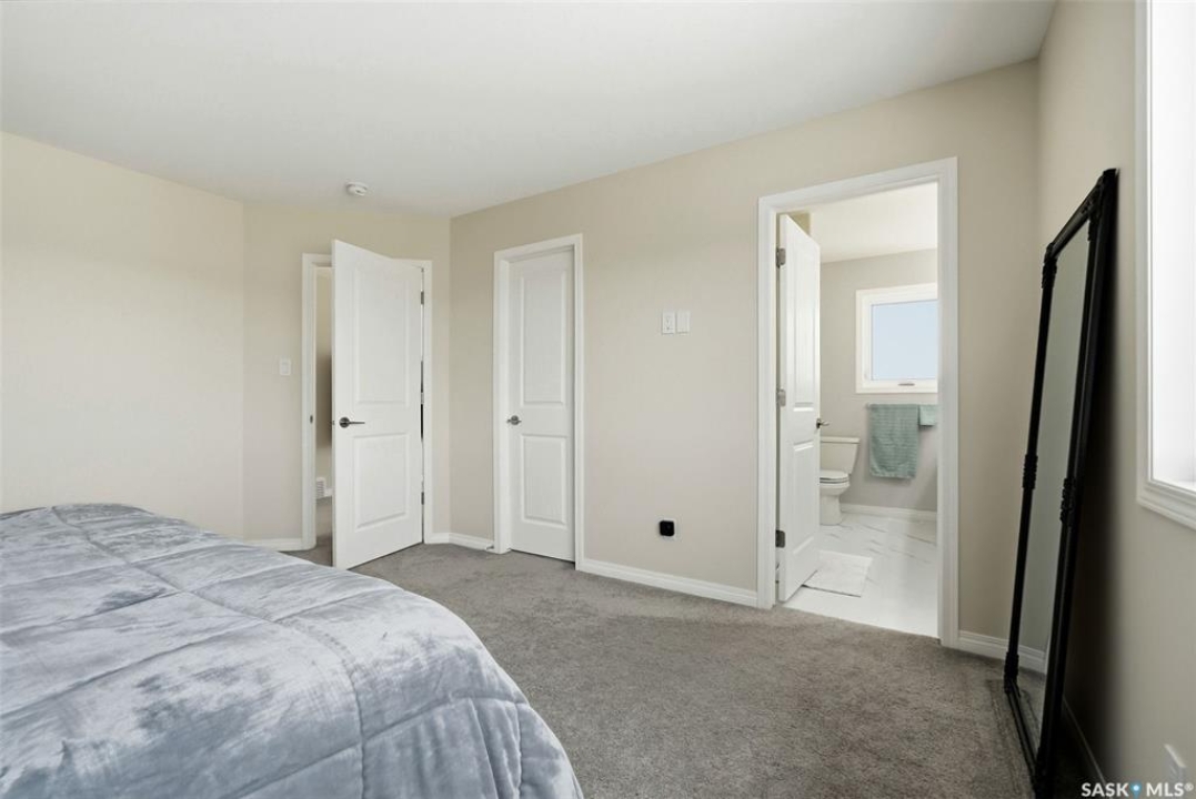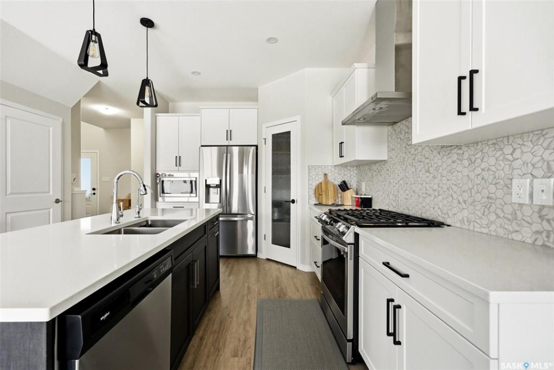 Welcome to 4330 Kinloch Bay E in The Towns—an impressive 2-storey home offering modern style, a functional family-friendly layout, and a huge fully fenced backyard. Built in 2021, this well-kept home features 1,609 sq. ft. above grade with 3 bedrooms, 3 bathrooms, and a bright second-floor bonus room. The main floor showcases an open-concept design with durable vinyl plank flooring, a stunning living room feature wall with electric fireplace, and a beautiful kitchen finished with quartz counters, two-tone cabinetry, tile backsplash, stainless steel appliances, gas range, and a large island perfect for everyday living and entertaining. The dining area overlooks the backyard and offers direct access outside. You'll also appreciate main floor laundry and a convenient 2-piece bath. Upstairs, the spacious primary suite includes a 3-piece ensuite, while two additional bedrooms and a full 4-piece bath complete the level. The full basement is unfinished and ready for your future development, with a separate entry for added flexibility. Additional features include central A/C, on-demand hot water, sump pump, double attached garage, exposed aggregate double driveway, and parking for 4 vehicles. Situated on a generous 8,380 sq. ft. lot, this home offers excellent outdoor space and room to grow in a sought-after east Regina neighbourhood.