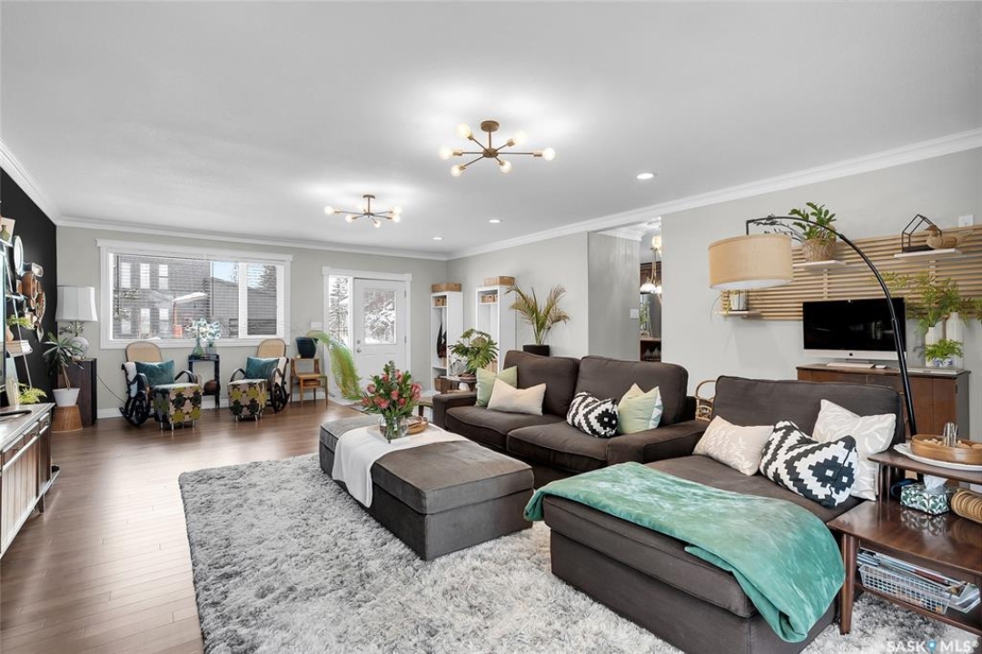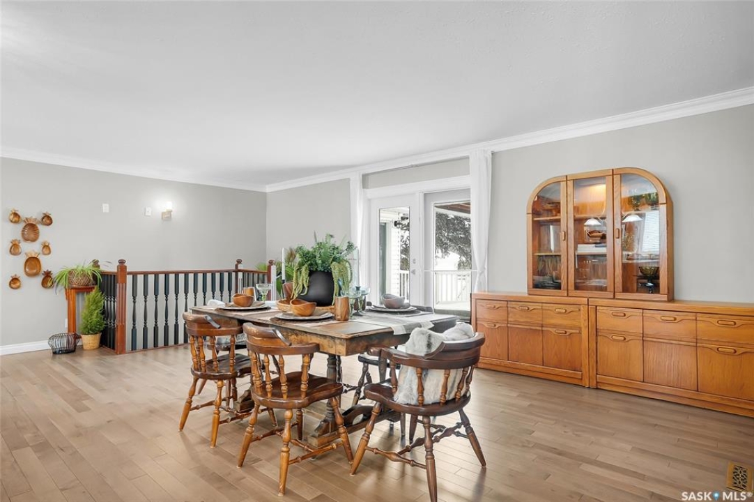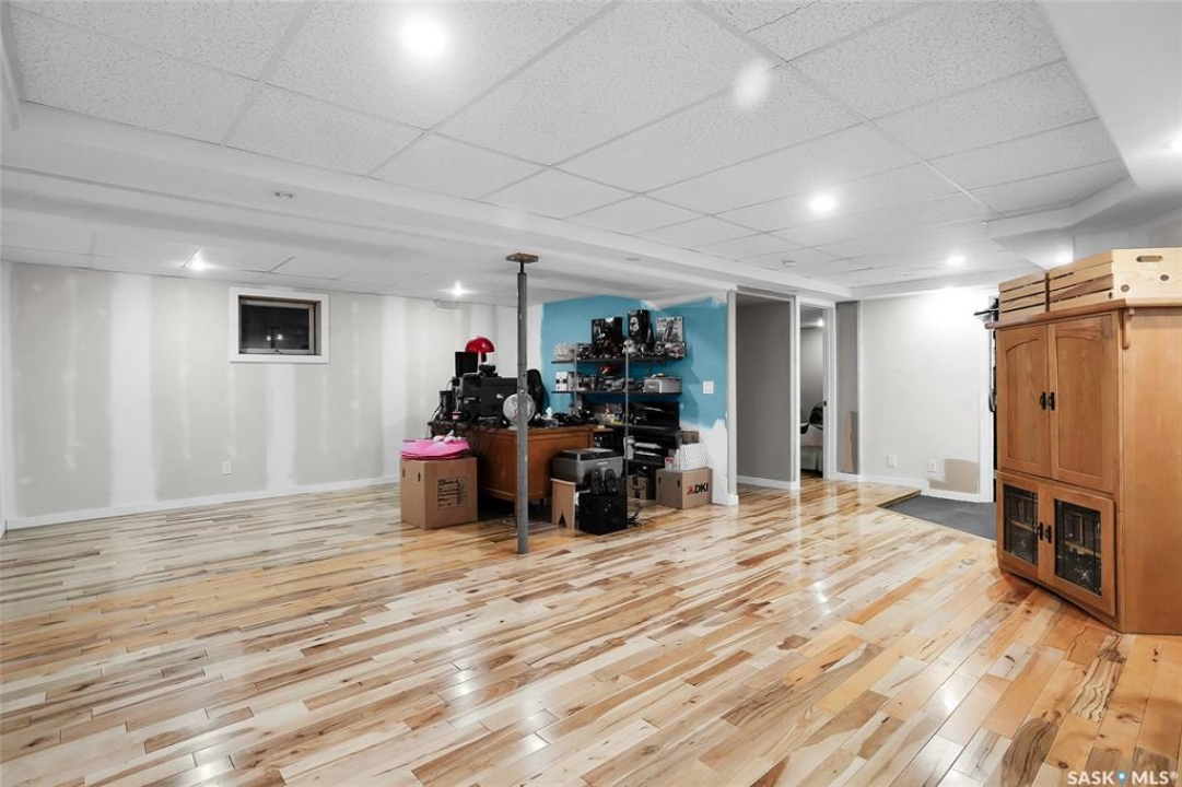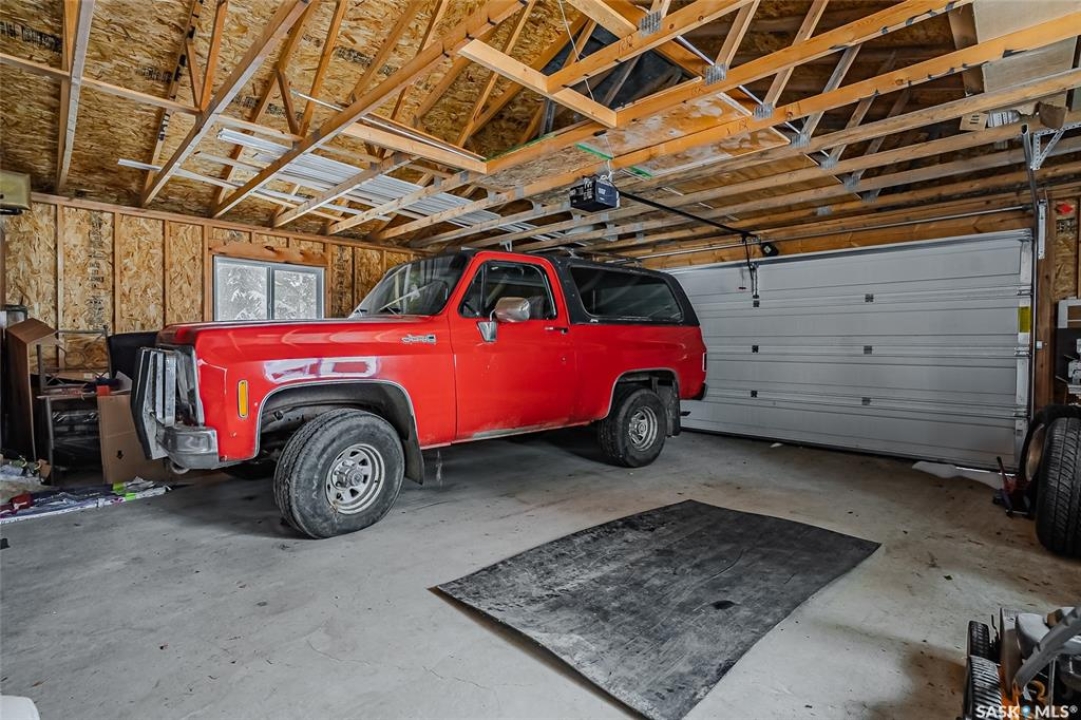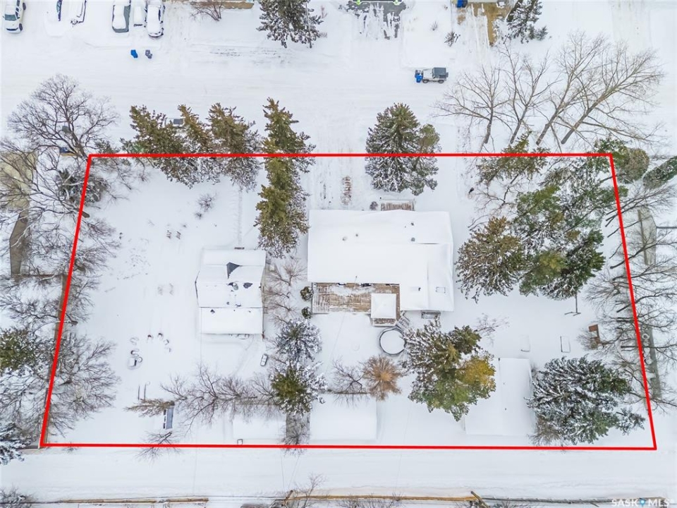 Welcome to 111 Norman Avenue in Aberdeen, where you get full on acreage energy without leaving town! Sitting on four lots wrapped in mature trees and privacy, this property feels like you're living at the lake, yet you're just minutes to Highway 11 for an easy commute to Warman, Saskatoon, or a quick escape north to Lakeland. This thoroughly updated bungalow brings the vibe with hardwood throughout the main floor, a bright modern 4-piece bath with updated plumbing (2025), and a primary bedroom that honestly feels like a boutique retreat — vaulted ceilings, skylight, built-in speakers, patio doors (replaced 2015) leading to the deck, plus a dreamy ensuite with soaker tub and your own dry sauna. The oversized living room (converted from the original attached garage) gives you that open, flexible space perfect for hosting, creating, or just spreading out, while the basement is wired for a projector so movie nights hit different. Major upgrades bring peace of mind: shingles redone in 2024, sewer line replaced from the town to the house (cost shared between seller and town), attic insulation topped up in 2022, plumbing updated in the kitchen in 2025, furnace tuned up with parts replaced in 2025, and appliances replaced in 2014 (fridge updated in 2016). With central air and thoughtful improvements throughout, this home is truly move-in ready….but the real flex? Two detached garages (single and double), with 220 power in the single garage, two driveways, nine off-street parking spots, RV parking, and endless room for hobbies, side hustles, car builds, boats, trailers, and all the toys. The massive back deck and private yard make everyday life feel like a weekend getaway. If you've been craving space, freedom, and a slower pace without sacrificing connection, this is that rare small-town lifestyle upgrade that just makes sense.