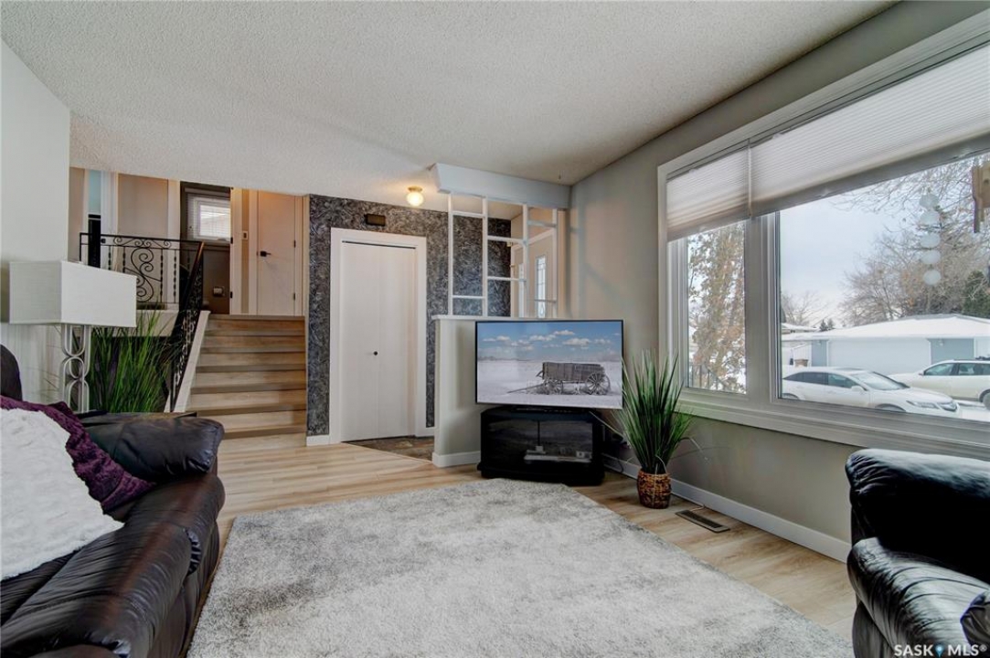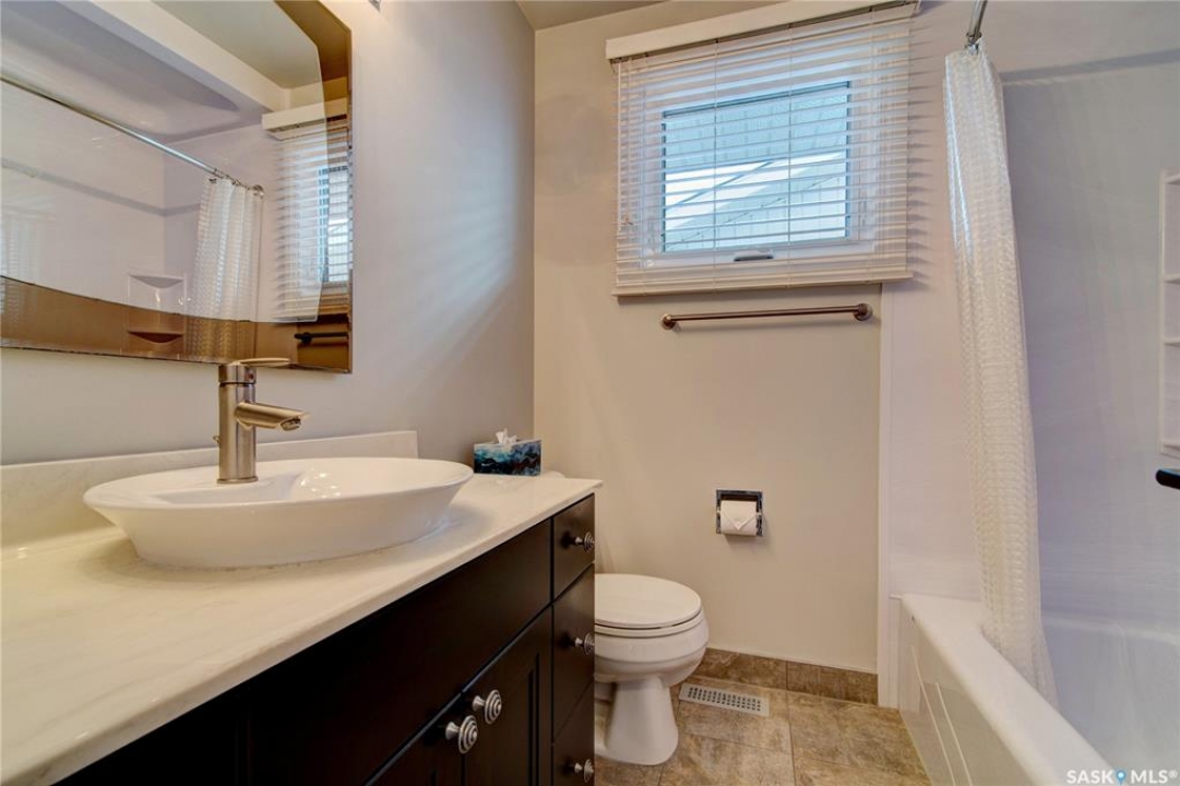 Don't miss the opportunity to own this well cared for 4 level split level with many upgrades/updates. The main floor offers spacious living room with a fireplace & laminate flooring, kitchen with an abundance of cabinets, fridge, stove, dishwasher, microwave, built-in oven (osmosis water system under the sink which is rented from Nimbus and can be removed or new owner can take over the contract) nice sized eating area and access to the maintenance free deck. On the second level there are two spacious bedrooms with laminate flooring and 4 piece bathroom. 3rd level offers two more bedrooms and 3 piece bathroom. There is a family room on the 4th level with a dry bar plus a hot tub room with exhaust fan (the hot tub needs new plumbing and the sellers have not used it for many years). Concrete crawl space, great for extra storage. Upgrades include: most flooring, baseboards & casings, interior doors, front and back doors, triple glazed windows. Part of the double garage was converted to office space and is insulated, drywalled, heated and has air conditioning. Another portion of the garage is used as a storage shed with a separate door. The original overhead door remains at the back of the garage. Could be converted back to a double garage. Great Walsh Acres location with close proximity to schools, greenspace, restaurants, shopping and all other north end amenities. Convenient access to the ring road and the Levan.