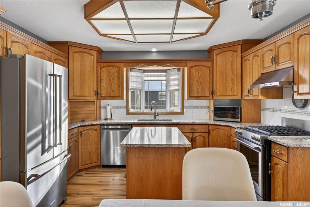 Why build when you can move in and enjoy! This rare property is located a block to Brunswick Elementary School & a few blocks to the MUCC High School. This corner lot property beams of pride of ownership inside and out. Bungalow style home was built 1999 with an attached double garage (heated and direct entry), that is 23' x 24'. The home is 1359 sq.ft. with a fully finished basement. This classic layout offers a custom oak kitchen, with an island and ample cabinet storage. The kitchen has quartz countertops and includes fridge, stove(gas), dishwasher, microwave all replaced in 2021. The dining area has garden doors to a covered deck with easy access to a private backyard and hot tub to enjoy! There are three bedrooms on the main floor. The primary bedrooms is spacious with a walk in closet and three piece ensuite. There are three bathrooms throughout. The basement was finished approximately 2018 that includes tonnes of rec room space to enjoy, three piece bath, den and large workshop room. The basement den and workshop could easily be transitioned to finish as bedrooms. This home features main floor laundry with cabinet storage and access to garage. Other notable inclusions with this property are hot tub, fountain (backyard), workout equipment in basement (elliptical/treadmill/multi use) and hoist in garage (400lb capacity). Shingles have been replaced in 2019 (30 yr shingles), flooring throughout kitchen, dining, bedrooms & bathrooms have been replaced through the recent years as well. Home features rubber paved (to street) driveway, low maintenance backyard & rv parking at the rear of property. DELAY PRESENTATION OF OFFERS: ALL OFFERS TO BE RECEIVED BY TUESDAY MARCH 3/26 by 1pm. Exterior photos were take fall of 2025.