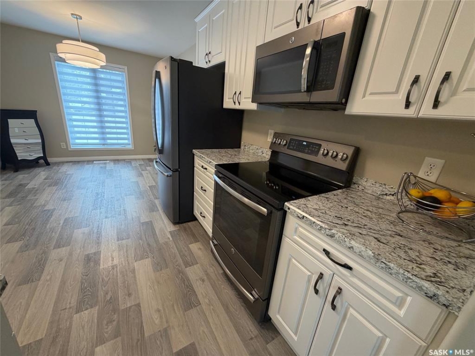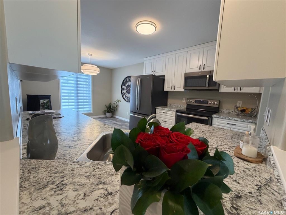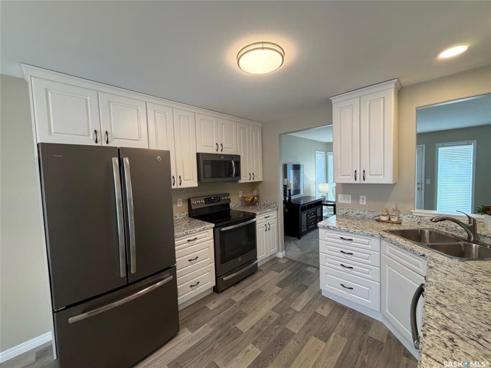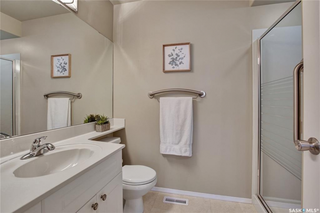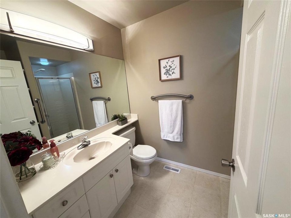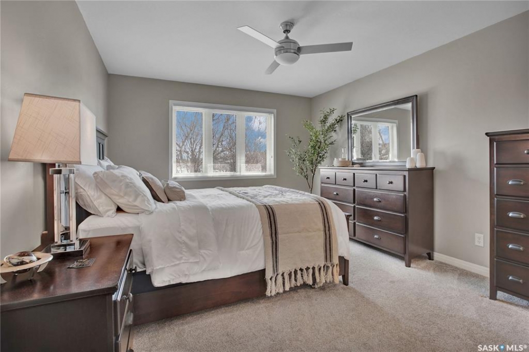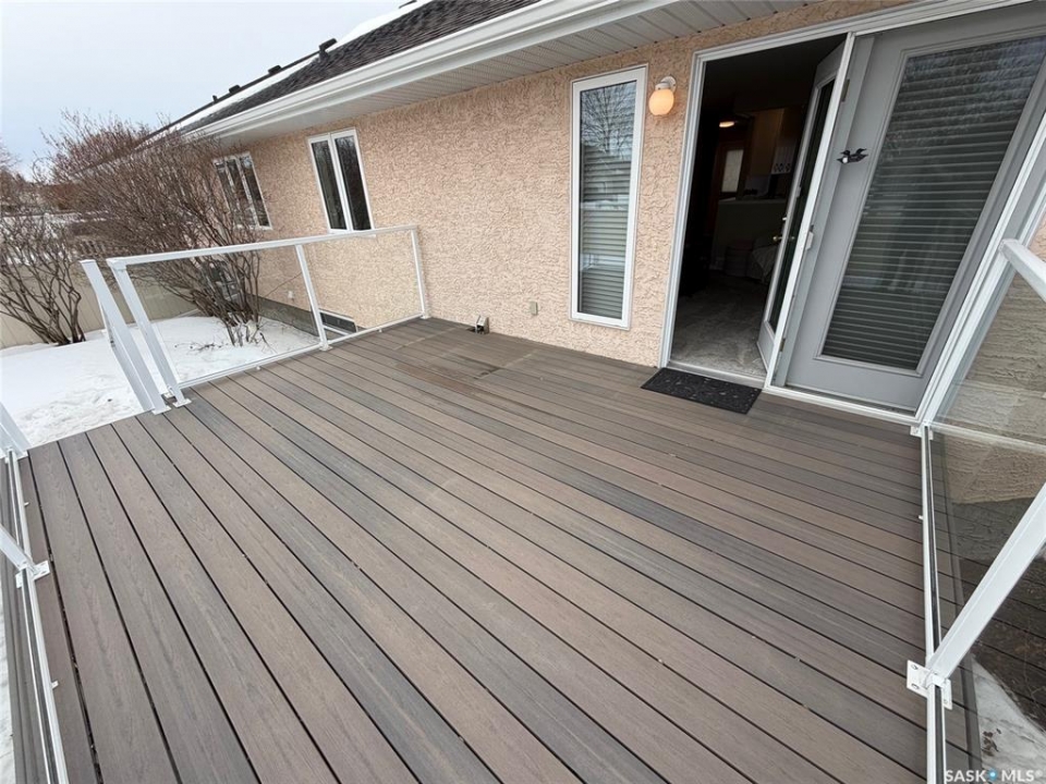 Welcome to ArborGlen Estates — Peaceful Living Backing Arbor Creek Park Unit 27 is the perfect place to begin your next chapter. Located in a gated community with minimal yard maintenance (handled by the HOA), this 1,198 sq ft bungalow offers comfort, quality, and convenience in the heart of Arbor Creek. Inside, you'll find a bright, open-concept layout with vinyl plank flooring flowing from the foyer into the spacious kitchen and dining areas. The kitchen features soft-close cabinetry and high-end stainless steel appliances — stove, fridge, built-in dishwasher, and microwave exhaust fan. A large pantry includes laundry hookups for those who prefer main floor laundry. The living room is filled with natural light thanks to multiple windows and garden doors that lead to a private deck backing green space. The deck is built with composite decking, acrylic glass panels, regal railing, and a natural gas BBQ hookup — perfect for relaxing or entertaining. The primary bedroom easily fits a king-sized bed and includes dual closets and a 3-piece ensuite with a spacious vanity. A second bedroom on the main floor is ideal for guests. From the front foyer, enjoy direct access to a 20' x 22' heated double attached garage, adding everyday convenience. Downstairs, the fully developed lower level offers a large family room, a den/office, a stylish 3-piece bath, ample storage, and a utility room with a newer furnace, hot water heater, and air exchanger. Additional Highlights: • Central air conditioning • Central vacuum • Quick access to Arbor Creek walking paths • Close to University Heights and Brighton amenities • Recent upgrades: shingles, furnace, water softener, flooring, garage overhead natural gas heater This one-owner home has been meticulously maintained and thoughtfully updated. A rare opportunity in ArborGlen Estates — turn-key ready for you to move in and enjoy.