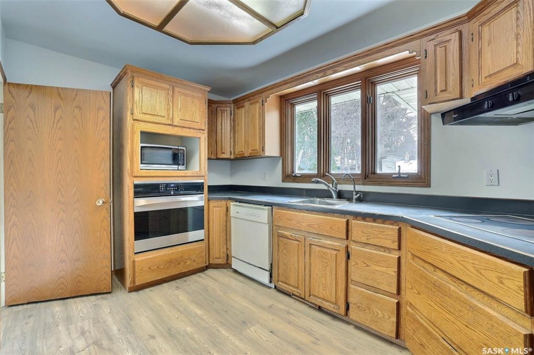 Welcome to this spacious bungalow in desirable Whitmore Park, ideally located close to the University of Regina, Wascana Park, transit, shopping, and both elementary and high schools. This is a well-established neighbourhood known for its convenience and strong long-term value. The home offers excellent functionality with a thoughtful rear addition that significantly expands the main floor living space. This addition includes a functional wood fireplace and creates a bright, open family room and adds valuable square footage that sets this home apart from many others in the area. The main floor features three bedrooms, including a primary bedroom with a convenient 2-piece ensuite, along with a full main bathroom. The layout is practical and comfortable, making it a great fit for families or buyers looking for flexible living space. Downstairs, the fully developed basement includes a non-regulation suite with a separate side entry. The lower level offers a kitchen, living area, dining space, two bedrooms, and a bathroom — ideal for extended family, multi-generational living, or added income potential. The foundation walls appear solid, and the home has been well cared for over the years, offering a great opportunity for buyers looking for space, functionality, and value in a prime south-end location. If you're looking for a home with extra square footage, suite potential, and a strong neighbourhood setting, this Whitmore Park bungalow is one to see.