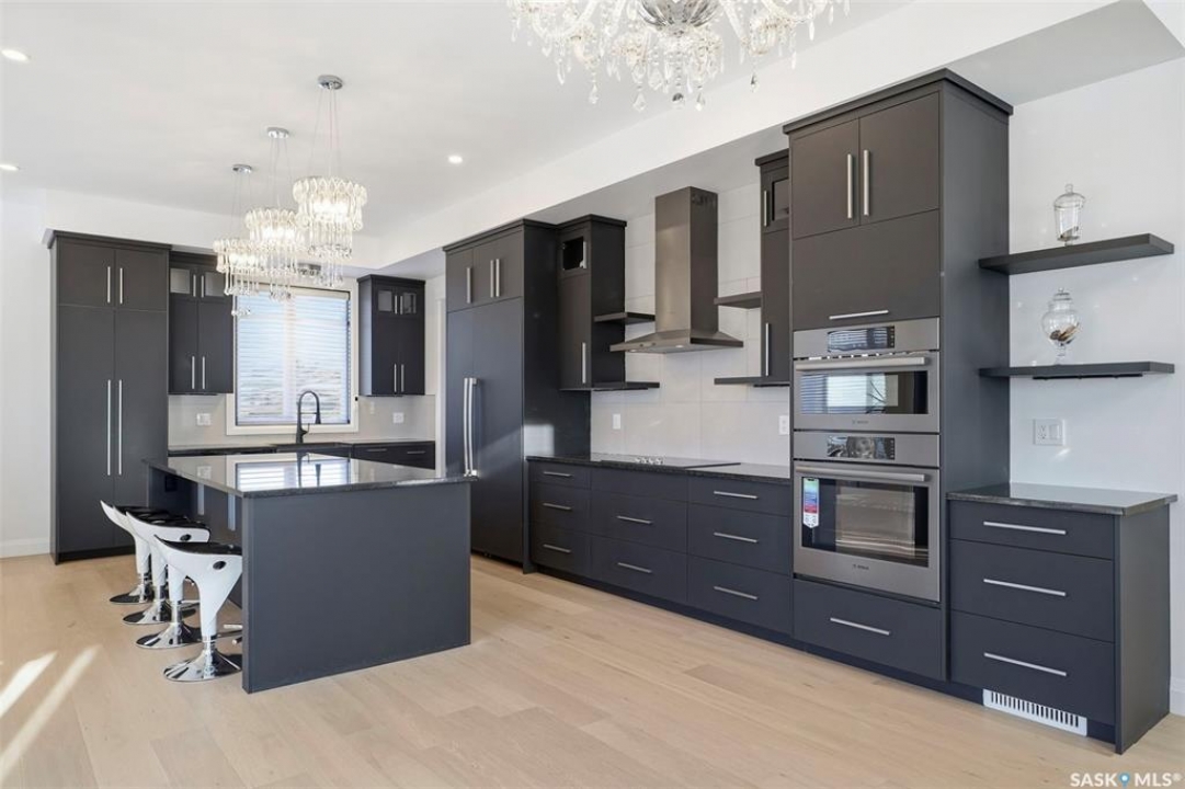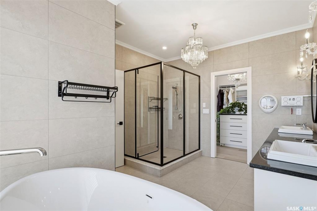 Welcome to 529 Greenbryre Bend—an exceptional walkout estate in prestigious Greenbryre Estates. Blending luxury, comfort, and modern design, this stunning home backs onto a private yard with breathtaking sunset views and abundant natural light. The main floor showcases 10-foot ceiling, expansive windows, and elegant open-concept layout. A spacious foyer leads to a den/office. The impressive living room features 22-foot soaring ceiling, gas fireplace, and panoramic views of the beautifully xeriscaped backyard. The chef's kitchen offers floor-to-ceiling custom cabinetry, marble countertops, tile backsplash, and premium built-in Bosch appliances, complemented by a fully equipped spice kitchen with gas stove. The generous dining area opens to a covered back deck. A custom wood floating staircase with solid oak treads and glass railing leads to the upper level, highlighted by 9-foot coffered ceilings. Three spacious bedrooms each include a walk-in closet and private ensuite. A bonus room and balcony add flexible living space. The primary suite is a private retreat with electric fireplace, expansive walk-in closet with granite island, and luxurious 5-piece ensuite featuring a soaking tub, dual sinks, and premium finishes. The walkout basement offers abundant natural light, a spacious family room, luxury wine cellar, two additional bedrooms, and a spa-inspired bathroom with sauna. Premium engineered flooring and in-floor heating enhance comfort. The low-maintenance backyard features a patio and artificial turf for year-round enjoyment. Additional highlights include marble tile at the entry, marble feature walls, in-floor heating in basement and garage, triple attached garage with 5–7 car driveway, motorized blinds, custom full-height tiled bathrooms, designer lighting with crystal chandeliers, and natural Golden Sesame granite with custom stone exterior coping. This extraordinary home showcases exceptional craftsmanship, thoughtful design, and luxury finishes throughout.