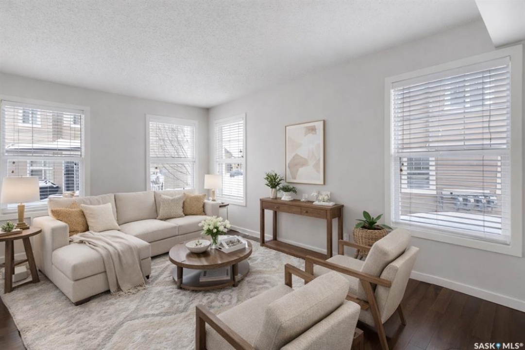 Welcome to 215-410 Ledingham Way! This well cared for 1341 sq foot, end unit, features 3 bedroom and 3 bathrooms. The main floor has hardwood flooring, lots of light (South facing condo with extra windows), a 2 piece bathroom, kitchen with quartz countertops, a functional island, and direct entry to the single attached garage. Upstairs you will be impressed with the large bedrooms. The 4 piece bath features a skylight and entry from both the primary bedroom or hall. The basement is fully developed with a family room and 3 piece bath as well as laundry. Other features include some updated appliances & central air. Close to many amenities. Condo fees include water, common insurance, snow removal, lawn care and reserve fund contribution. Dogs allowed with board approval (some breeds excluded). Staged photos are virtual.