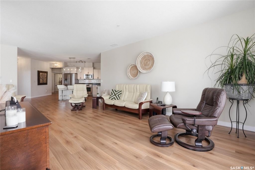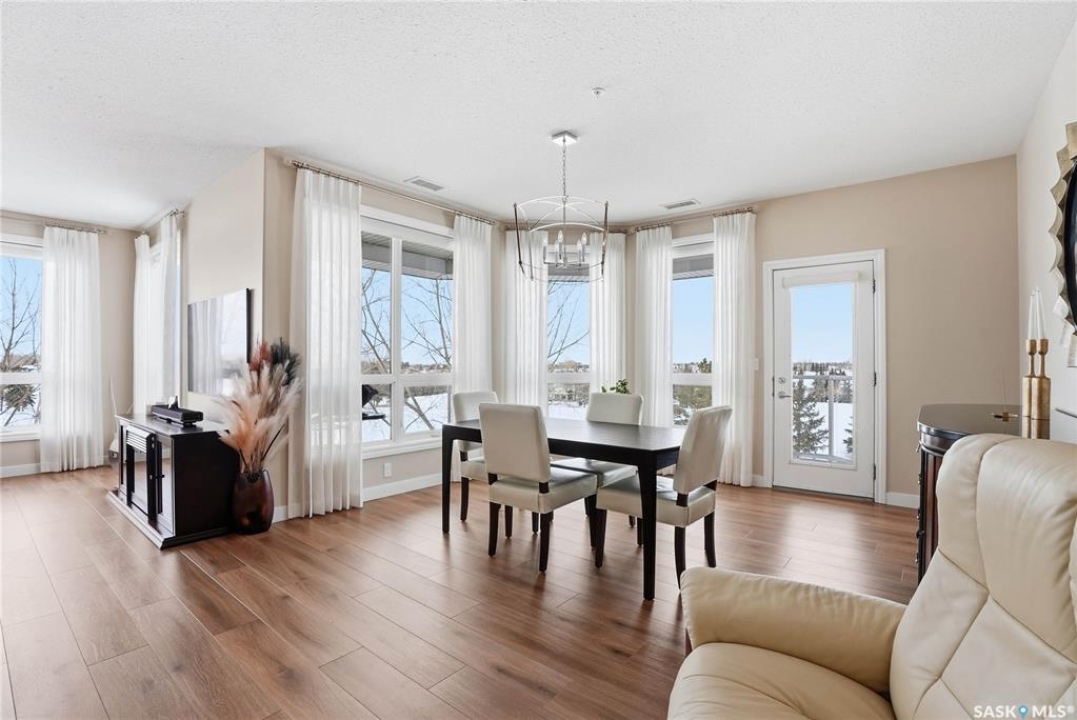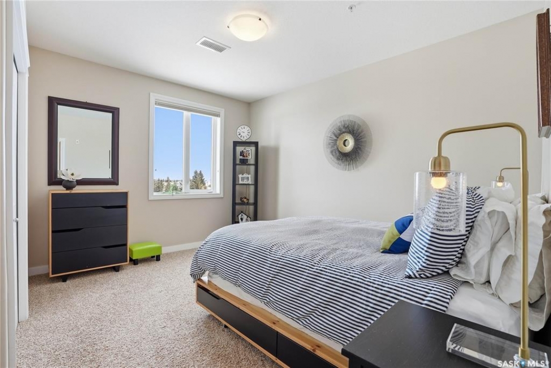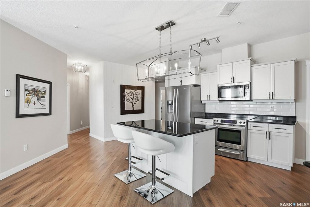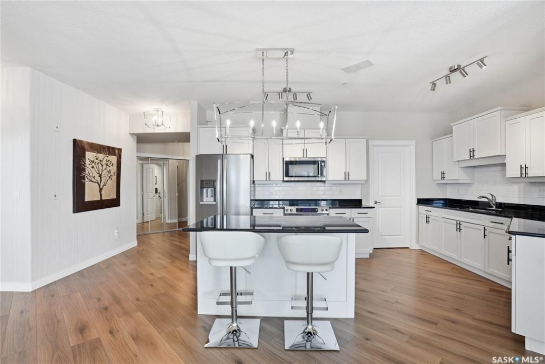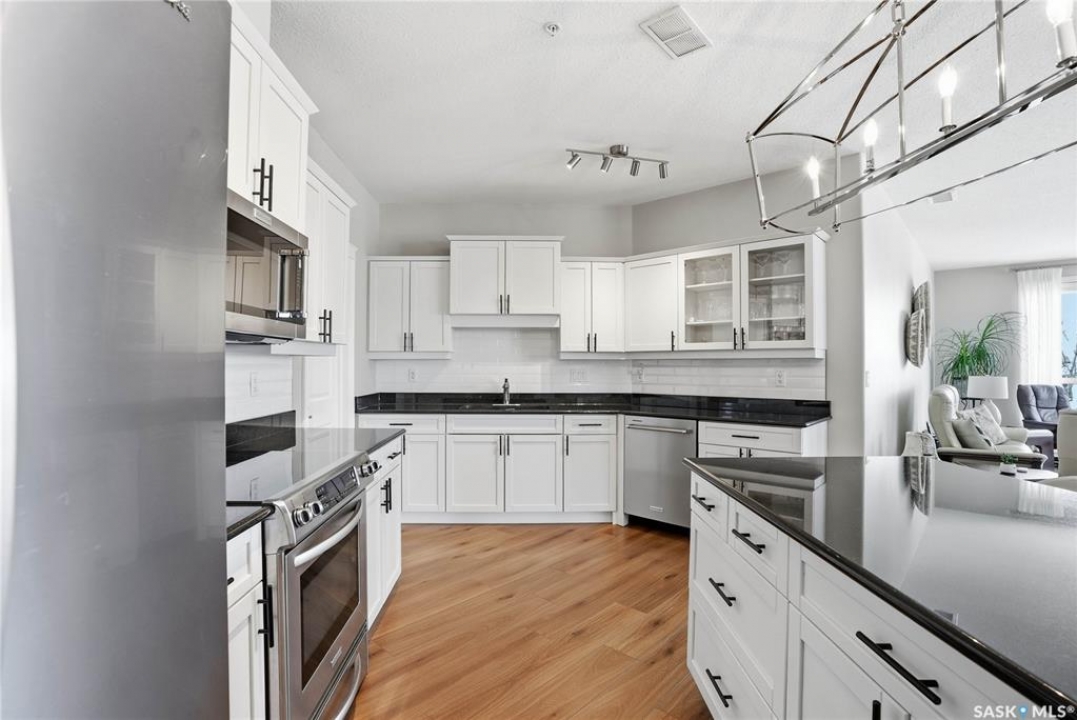 Welcome to Unit 302 – 405 Cartwright Street, an immaculate corner unit condominium overlooking the prestigious Willows Golf & Country Club. Perfectly positioned to capture serene views and exceptional natural light, this residence offers an elevated lifestyle in one of the city's most sought-after communities. Step inside to a beautifully designed open-concept layout featuring soaring 9-foot ceilings, luxury laminate flooring, and an abundance of natural light flowing effortlessly throughout the space. The kitchen is both refined and functional, showcasing granite countertops, a generous island with additional seating, refinished cabinetry accented with black hardware, under-valance lighting, crown moulding, ample pot and pan drawers, a pantry, and a full stainless-steel appliance package including fridge, stove, and a vented hood fan. Seamlessly connected to the kitchen, the living room invites relaxation and entertaining alike, with sliding door access to your private dura deck overlooking Zena #1, complete with a gas line for your BBQ — an ideal setting for quiet mornings or sunset gatherings. The king-sized primary retreat offers blackout blinds, a striking accent wall, and a walk-in closet with custom organizers. The adjoining 3-piece ensuite is thoughtfully appointed with a built-in linen closet, makeup vanity, and tile surround, creating a spa-inspired atmosphere. An additional bedroom, a beautifully finished 4-piece bath with tile flooring and granite countertops, a spacious office, and in-suite laundry with extra storage complete this exceptional home. This unit includes two underground parking stalls and a generous 5' x 10' storage space. Additional features include air conditioning, double-pane PVC windows, newer light fixtures, premium Hunter Douglas blinds package, amenities room with gym area and washing bay in underground parking. An exquisite blend of comfort, style, and golf course living — Unit 302 is a residence you'll be proud to call home.