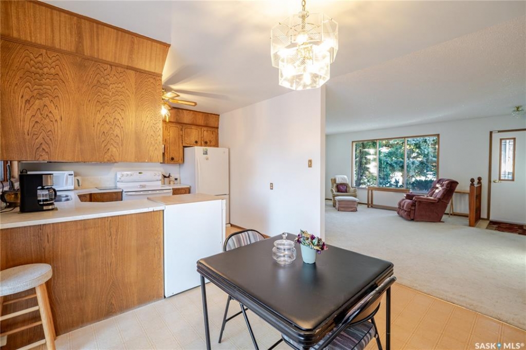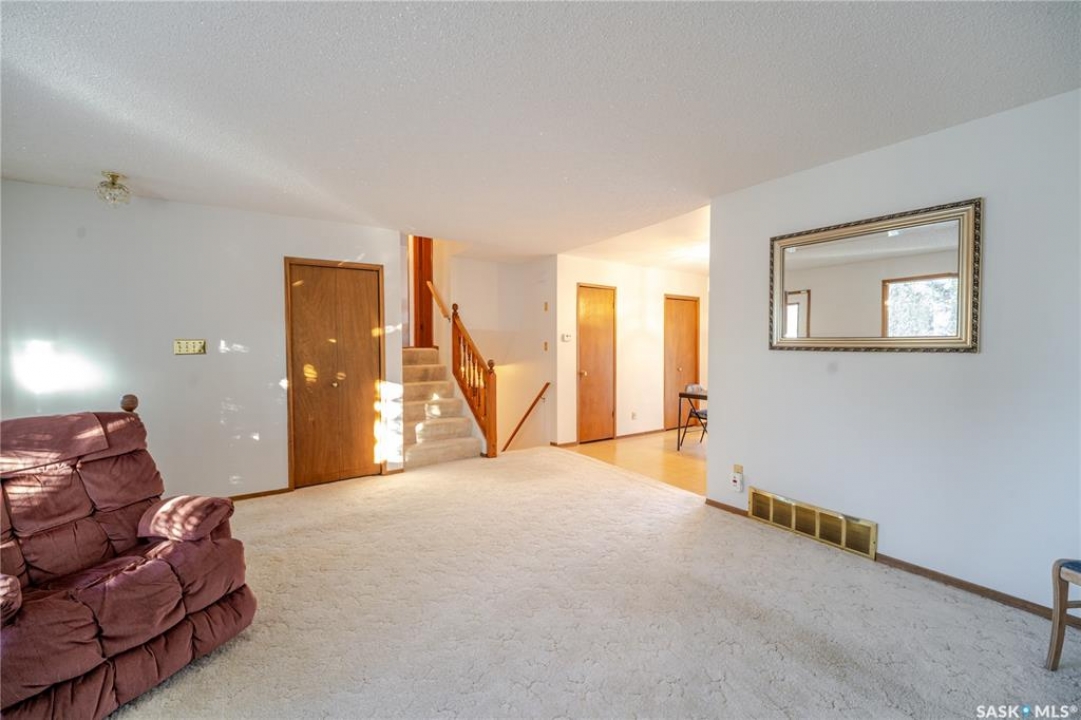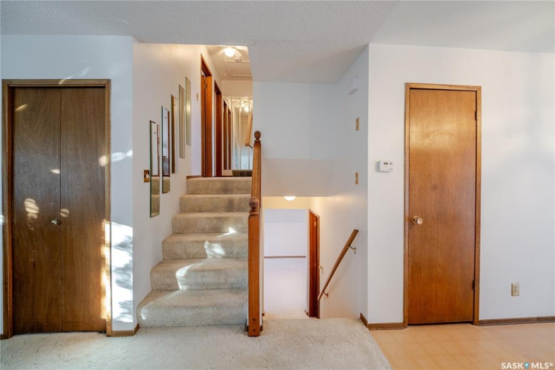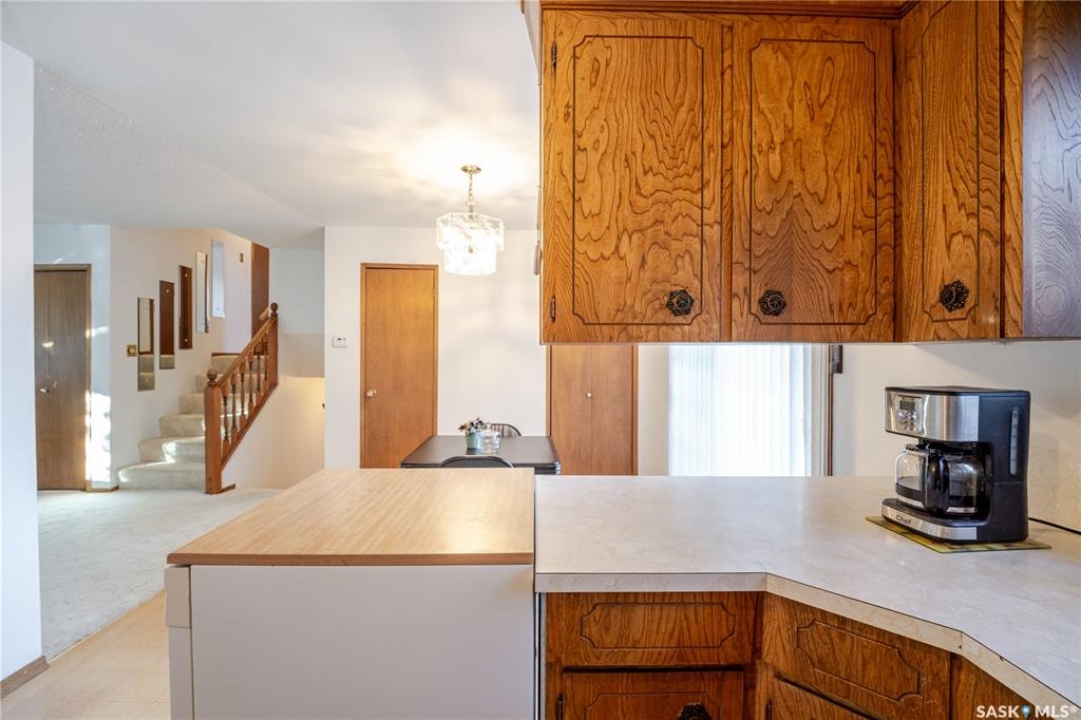 Loved and cared for by the same family for decades, this inviting 4-level split is ready to welcome its next chapter. Freshly painted throughout, the main floor features a bright and spacious living room with a large front window, flowing seamlessly into the dining area with patio doors leading to the private backyard. The U-shaped kitchen offers excellent functionality, complete with a window overlooking the yard, ample cabinetry, pantry storage, and a portable dishwasher. Upstairs, you'll find three comfortable bedrooms, including a generously sized primary bedroom at the back of the home, along with a 4-piece bathroom. The first lower level offers a bright, L-shaped family room with versatile space for relaxing, games, crafts, or the potential for a fourth bedroom. The second lower level provides additional flexible space ideal for a playroom, hobby area, or future bedroom. The spacious utility room houses the laundry area, furnace, and hot water tank with room for additional storage. The backyard is truly a private oasis, filled with mature fruit trees and shrubs, including chokecherry, raspberry, and lilac. When in full bloom, it feels like your own secluded sanctuary with no visible rear neighbors. Completing the home is a single attached garage with a large overhead door and convenient access to the backyard. A wonderful opportunity in a beautiful setting — this one is a must-see.