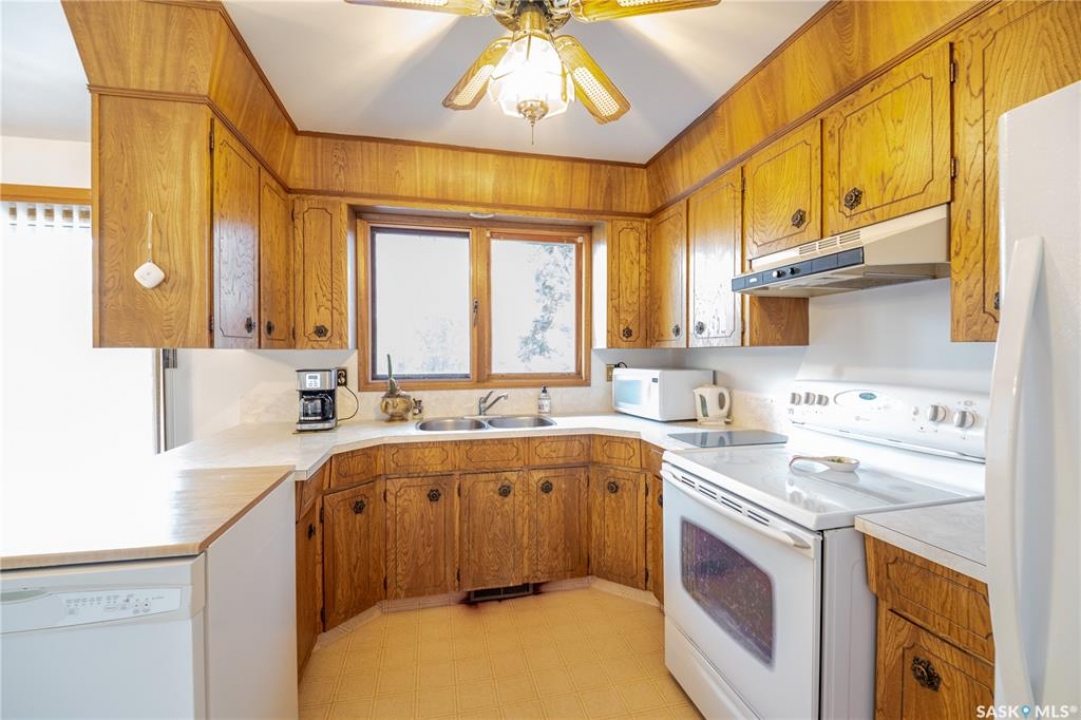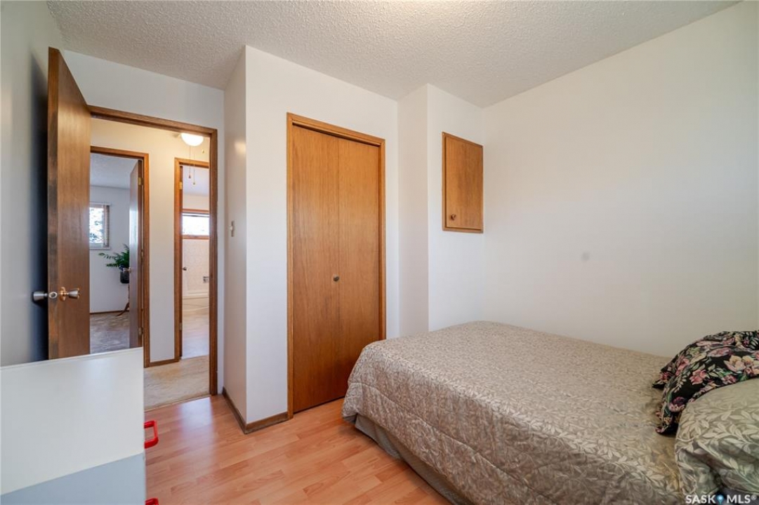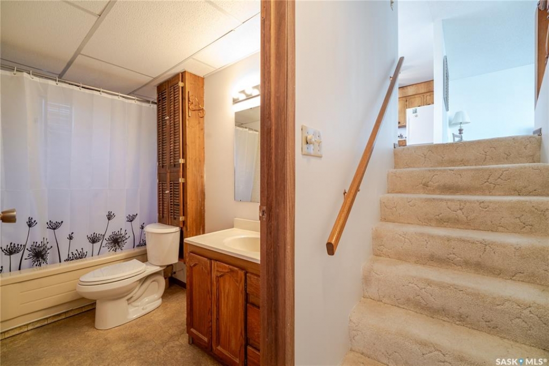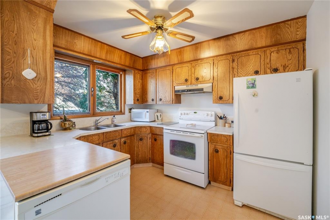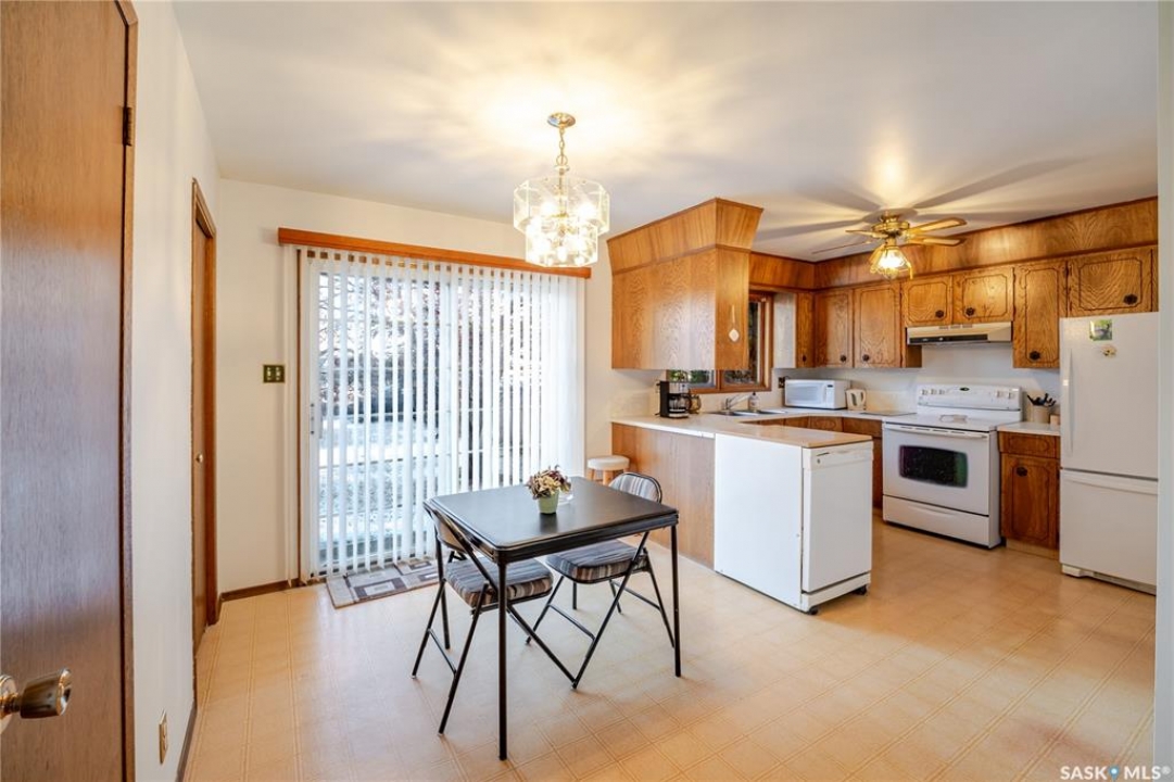 Loved and cared for by the same family for decades, this inviting 4-level split is ready to welcome its next chapter. Freshly painted throughout, the main floor features a bright and spacious living room with a large front window, flowing seamlessly into the dining area with patio doors leading to the private backyard. The U-shaped kitchen offers excellent functionality, complete with a window overlooking the yard, ample cabinetry, pantry storage, and a portable dishwasher. Upstairs, you'll find three comfortable bedrooms, including a generously sized primary bedroom at the back of the home, along with a 4-piece bathroom. The first lower level offers a bright, L-shaped family room with versatile space for relaxing, games, crafts, or the potential for a fourth bedroom. The second lower level provides additional flexible space ideal for a playroom, hobby area, or future bedroom. The spacious utility room houses the laundry area, furnace, and hot water tank with room for additional storage. The backyard is truly a private oasis, filled with mature fruit trees and shrubs, including chokecherry, raspberry, and lilac. When in full bloom, it feels like your own secluded sanctuary with no visible rear neighbors. Completing the home is a single attached garage with a large overhead door and convenient access to the backyard. A wonderful opportunity in a beautiful setting — this one is a must-see.