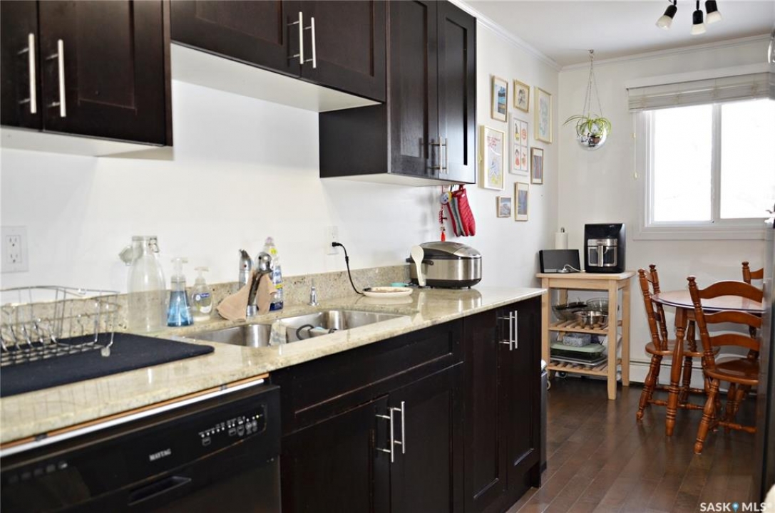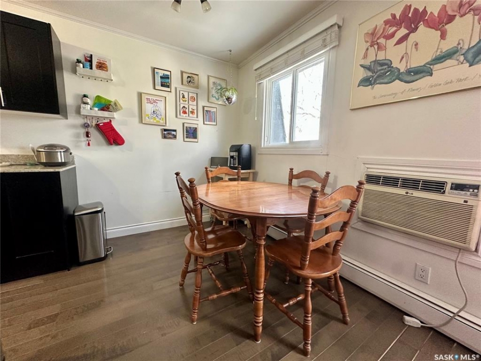 Welcome to 301 920 9th Street East! This fantastic condo is nestled in the highly sought-after Nutana neighborhood, it is a bright and beautifully updated top-floor corner condo that offers 774 square feet of living space, featuring two spacious bedrooms, a full bathroom, and in-suite laundry. The large entryway, crown moulding and abundant storage add to the appeal, while newer windows and a patio door fill the space with natural light. There is a large living room, dining space, a generous primary bedroom, and one dedicated parking stall. Don't miss out on this fantastic opportunity, call today for your private viewing!