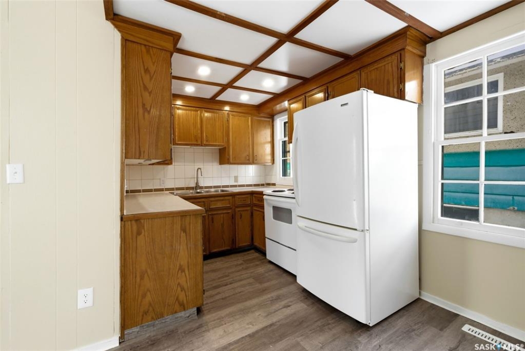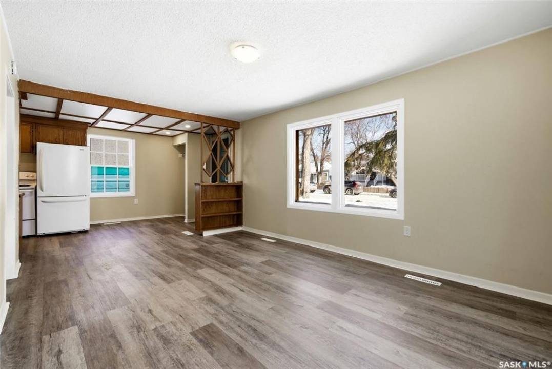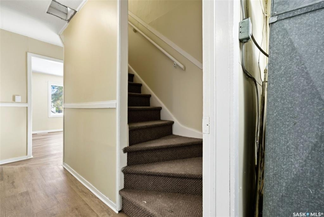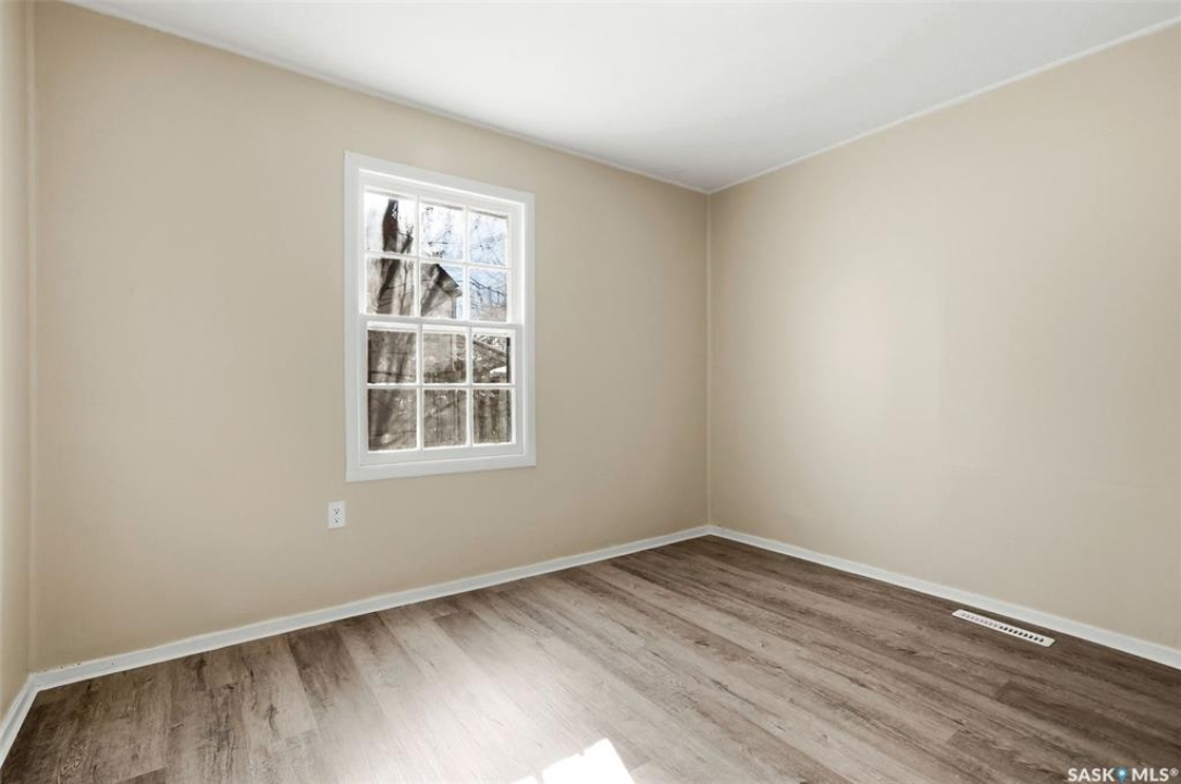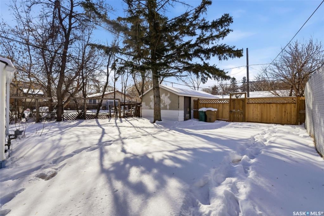 Welcome to this well maintained 1,000 sq ft home offering 3 bedrooms (one on the main floor and two upstairs) and a full bathroom conveniently located on the main level, along with main floor laundry. The bright and inviting interior features light neutral tones, oversized windows, and newer vinyl flooring throughout the main floor, creating a warm and functional living space. This home is situated on a generous 5,218 sq ft fenced lot, and boasts a large backyard, single detached garage with laneway access, and plenty of room to enjoy outdoor living. Ideally located close to schools, parks, and the hospital, with quick access to Lewvan Drive for an easy commute. This property is a perfect starter home or would make an excellent investment opportunity.
