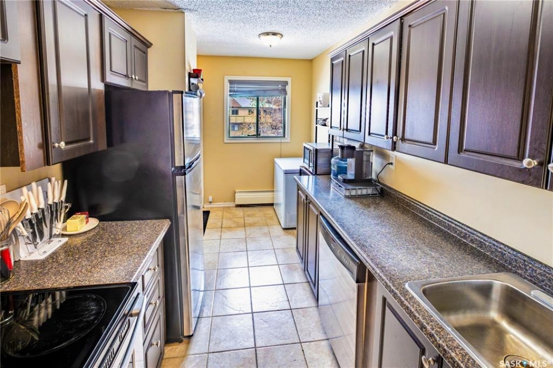 Charming 1-bedroom, 1-bathroom condo featuring a cozy wood-burning fire place in the living room. Bright eat-in kitchen-- perfect for everyday living. Step outside to your private deck with a built-in storage shed, ideally positions facing the courtyard and your convenient parking stall. A great opportunity for first-time buyers, downsizers, or investors seeking low-maintenance living in a welcoming setting! Immediate possession is available!