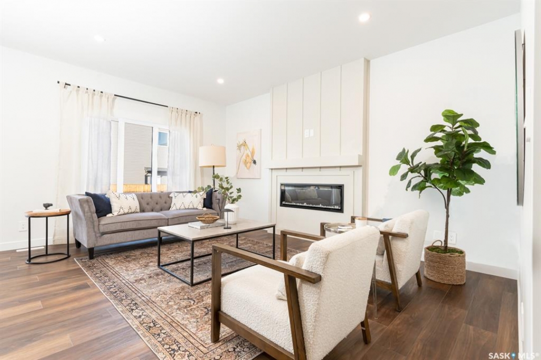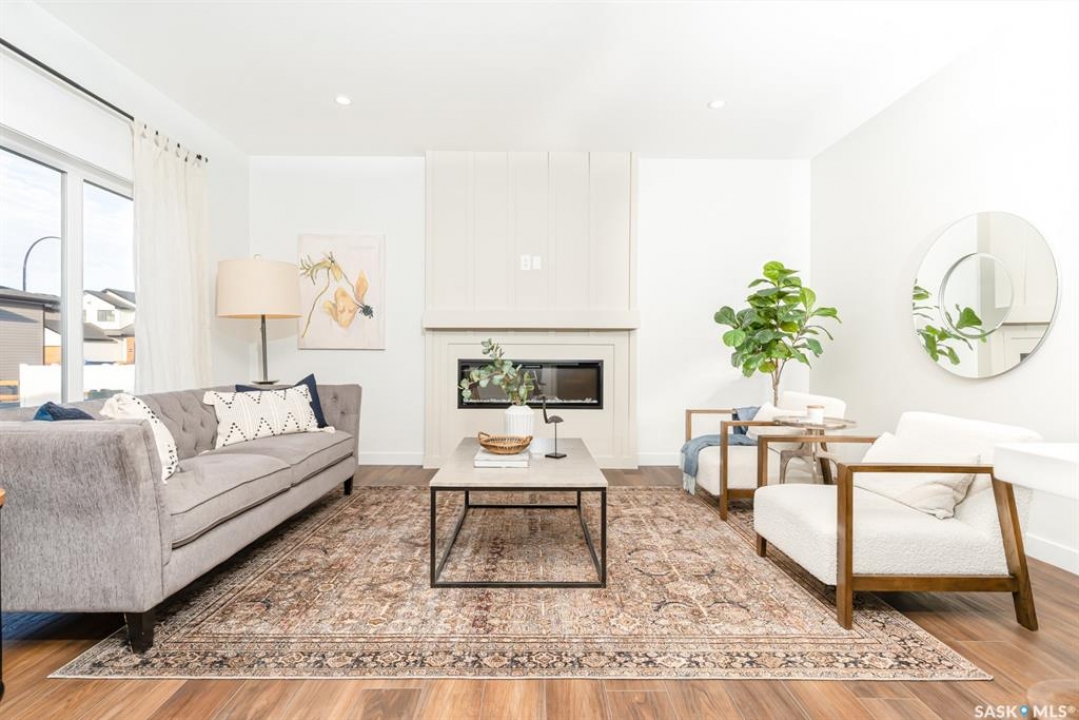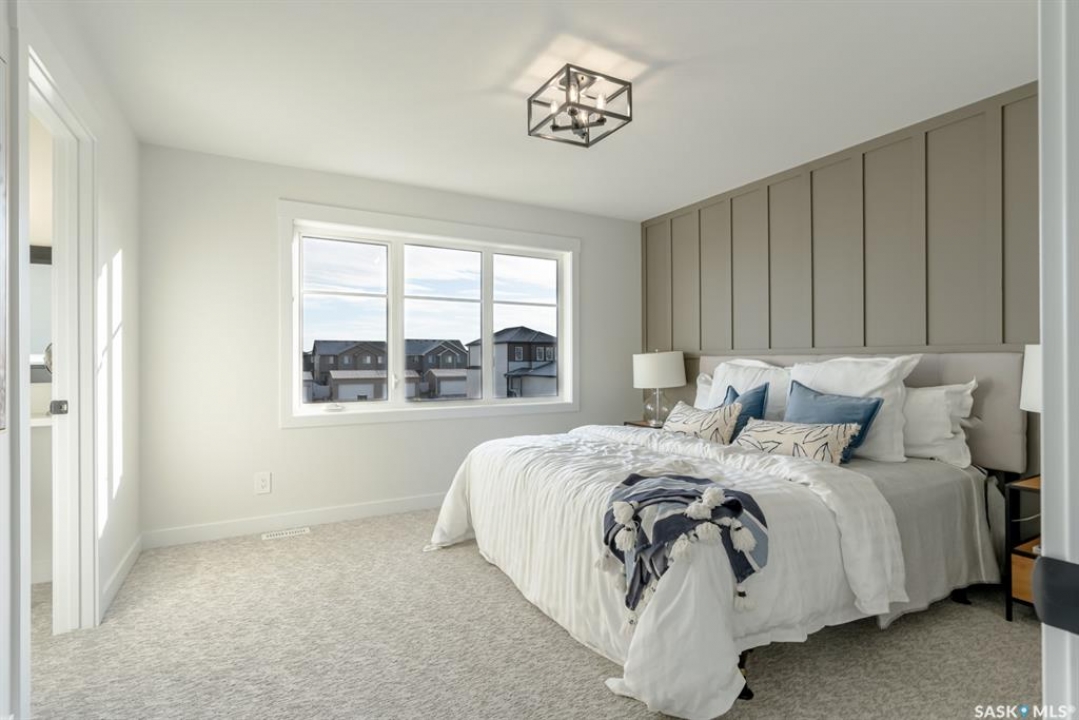 Welcome to the "Bronx” This 1602 sq ft, 2 storey features a spacious front entrance. Entering from the insulated garage, you are greeted with a mudroom with a large locker area that's connected to the walk-through pantry. This home features an open concept main floor layout with a fireplace, plenty of cabinets in the kitchen and 7' island, with quartz countertops and a beautiful tiled backsplash. Oversized patio doors in the dining room and large windows in the living room provides lots of natural light. The 2nd floor features a bright and spacious Primary bedroom with oversized triple-pane windows, a gorgeous 5' tiled shower and a roomy walk-in closet. You will find 2 more generously sized secondary bedrooms, a 4-piece bath, and the laundry area. All Pictures may not be exact representations of the home, to be used for reference purposes only. Errors and omissions excluded. Prices, plans, and specifications are subject to change without notice. All Edgewater homes are covered under the Saskatchewan New Home Warranty program. PST & GST included with rebate to builder..