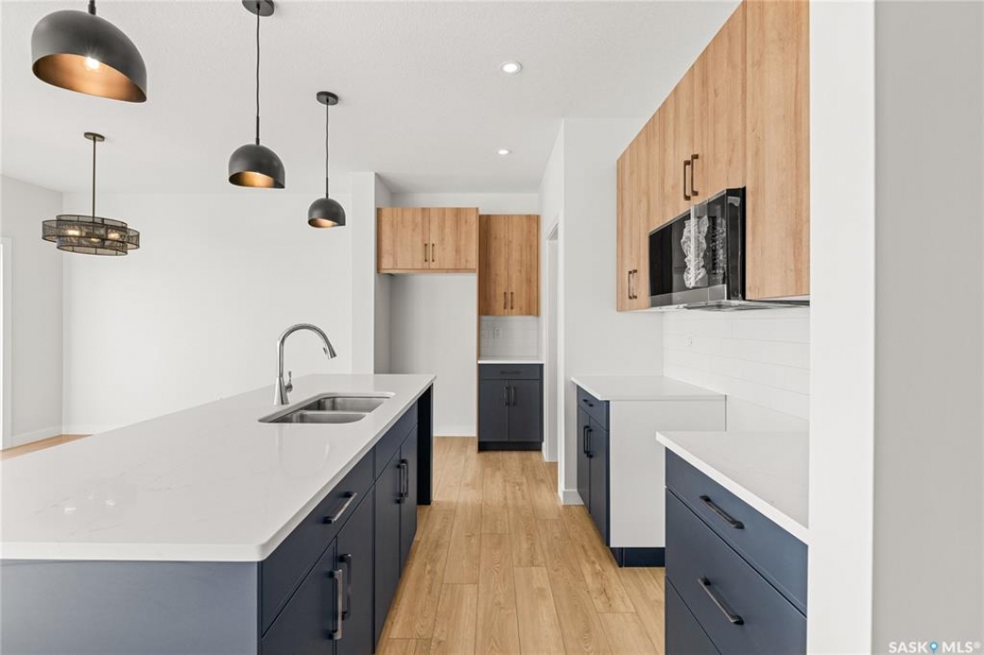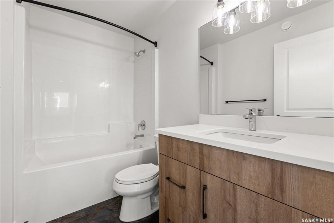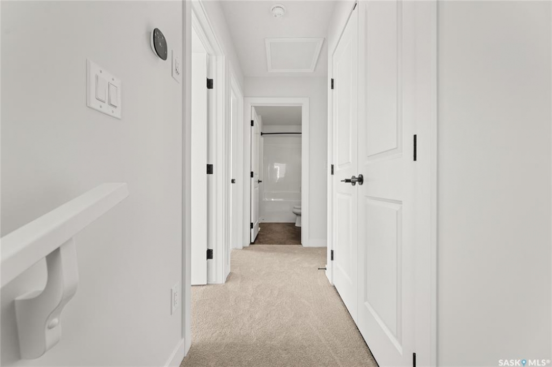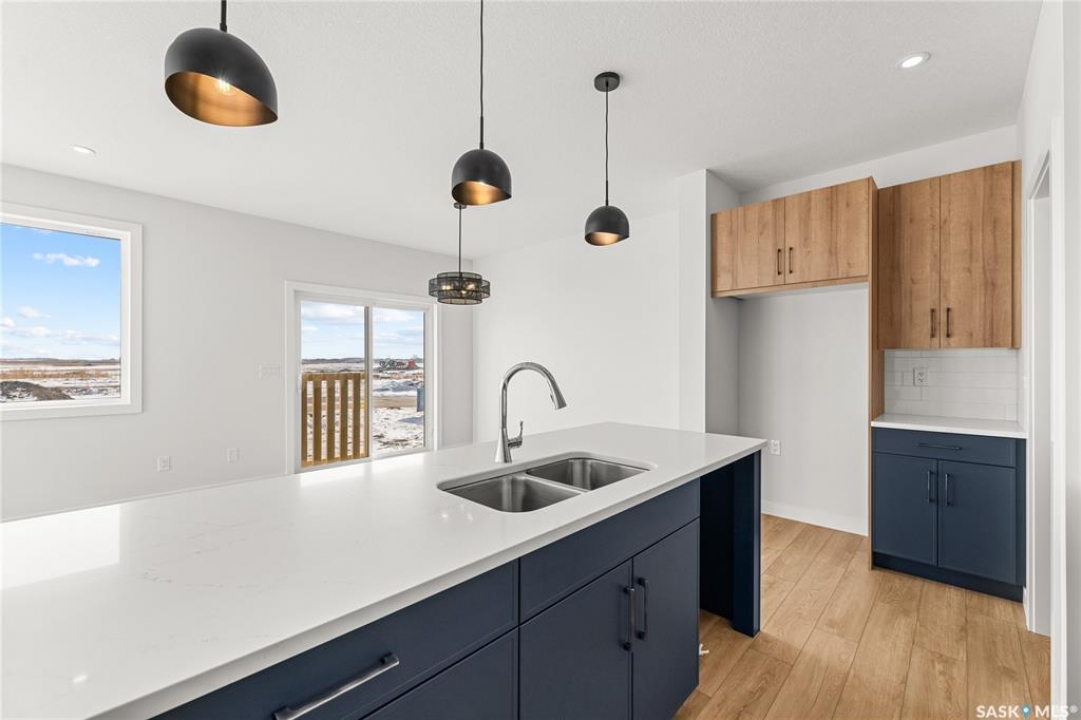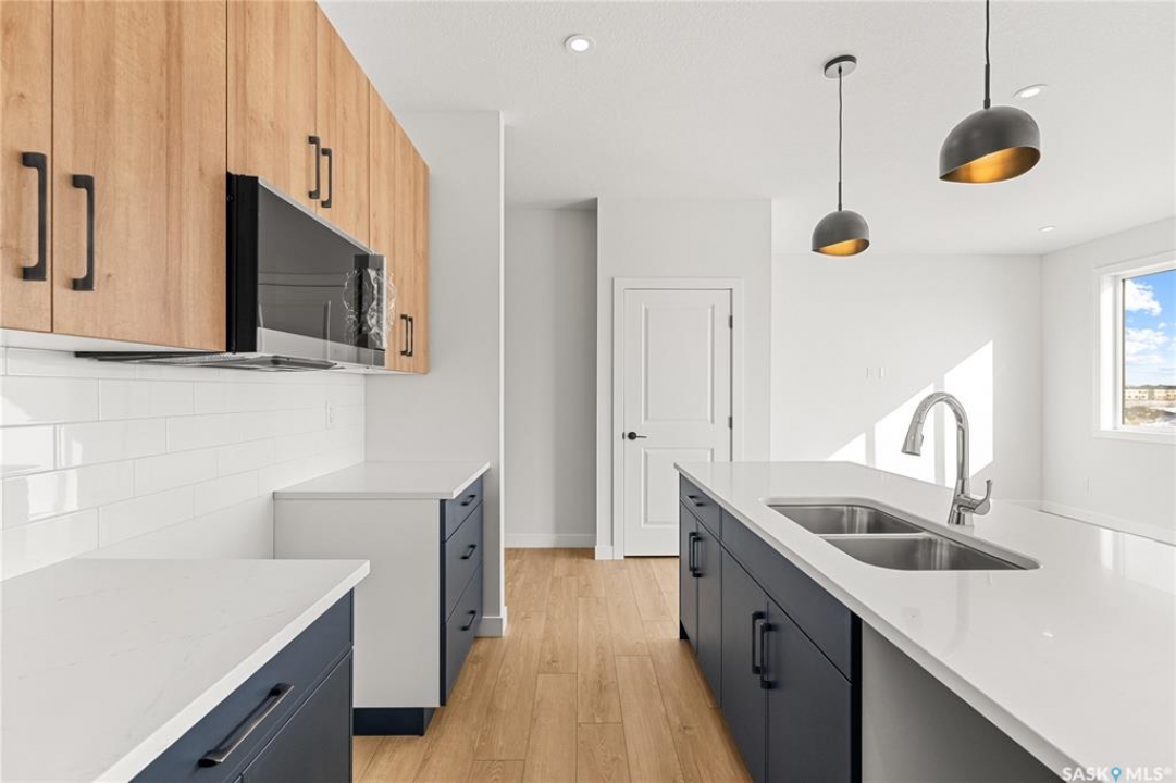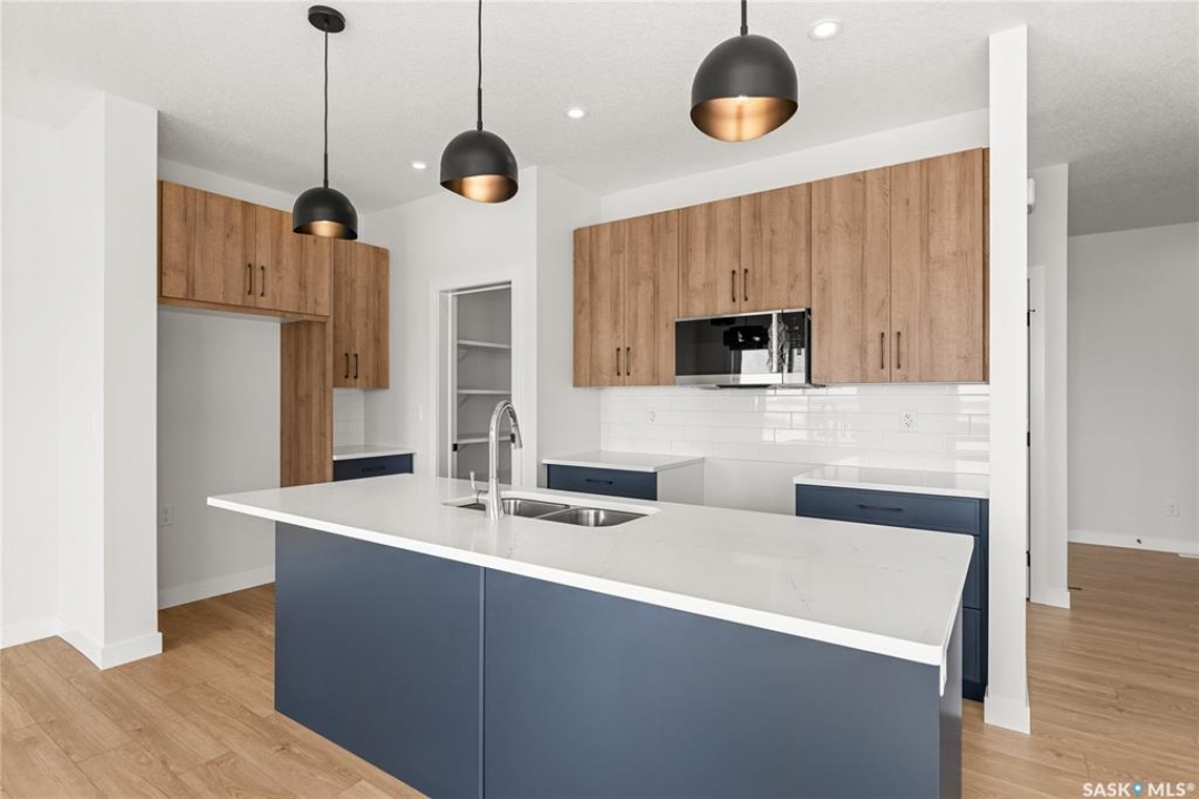 The "Oliver" by North Ridge Development Corporation is a 1501 square foot 2-Storey home located in the growing community of Brighton. A bright main floor layout featuring a large kitchen with walkthru pantry and island, dining area, living room, and 2-pce bath. Durable vinyl plank flooring in kitchen, living and dining rooms is attractive in appearance, high quality shelving in all closets and an upgraded trim package giving a fresh and modern feel along with beautiful cabinetry and quartz counter tops. The 2nd level features 3 bedrooms, a 4-piece main bathroom, and laundry. The master bedroom showcases beautifully with a 3-piece ensuite and walk-in closet. This home also includes a heat recovery ventilation system and high efficient furnace. GST and PST included in purchase price with applicable rebates to builder. Saskatchewan Home Warranty Premium Coverage. This home is move-in ready!
