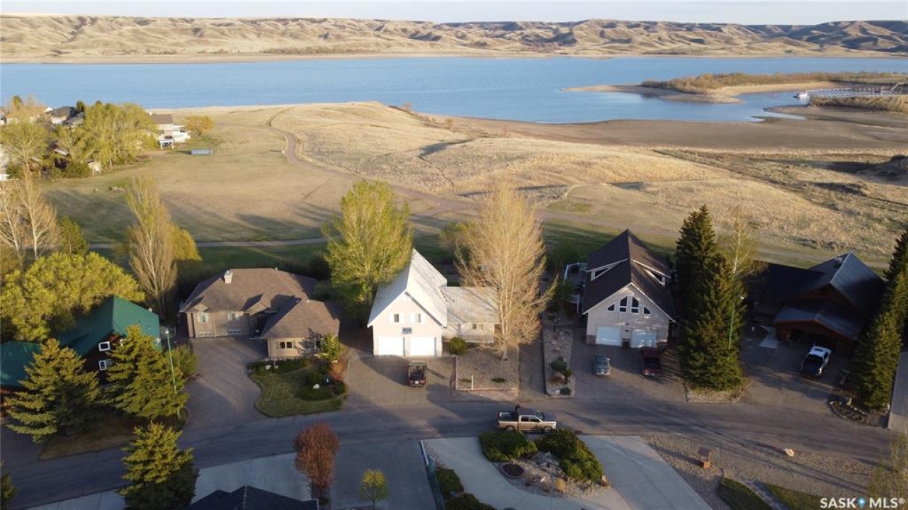 Escape the hustle of city life and embrace the relaxed rhythm of lake living at 130 Marine Drive in Saskatchewan Landing Provincial Park, just 35 minutes north of Swift Current. Enjoy fantastic south-facing views of Lake Diefenbaker from your kitchen window or from one of three decks. This spacious home offers 2,468 sq ft of living space over two levels plus a full basement. The bright open-concept main floor features a modern kitchen with newer appliances, a generous dining area, and an inviting living room designed for gathering. Two bedrooms are located on this level, including the primary suite with a 3-piece ensuite, along with a 4-piece main bath and convenient main floor laundry. Garden doors lead to a fully screened, covered south deck — the perfect place for morning coffee or evening sunsets. Upstairs, the expansive loft is currently used as family and recreation space, with garden doors leading to a private deck and access to a third elevated deck — WOW, the views! This versatile space could easily be developed into additional bedrooms if desired. The full basement offers a large family/rec room kept cozy year-round with in-floor heat and includes a bathroom rough-in for future development. The double attached garage also features in-floor heat for added comfort. Outside, enjoy a fully landscaped yard with underground sprinklers, mature trees and shrubs, perennials, lawn space, and a garden area. The provincial park lease is just $1,220 per year. With today's building costs, achieving this size and quality at this price per square foot would be extremely difficult — making this an exceptional opportunity. Fishing, boating, hiking, and golf are all minutes away. Life truly is better at the lake. Call your REALTOR � today to book your private showing. No GLE.