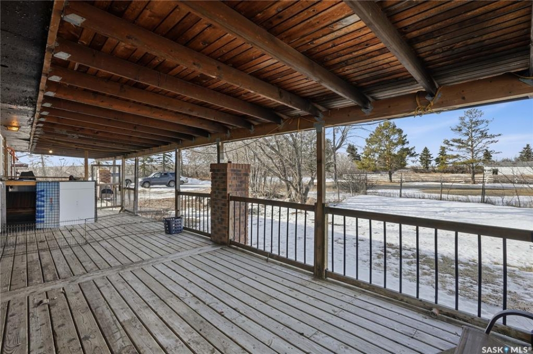 Are you looking for an acreage? This one sits on 7.48 acres right next to the town of Chamberlain where Highways #2 and #11 intersect. The home showcases a large covered deck perfect for your morning coffee. Heading inside we find a spacious kitchen with a dining space and a large living room. Down the hall we have 2 bedrooms and a 4 piece bath, as well as a spacious primary with a 3 piece ensuite. Downstairs is partially developed with a den and laundry space. Outside we find a double detached garage and a barn. Can be purchased with adjacent pasture land. Reach out today to book your showing!