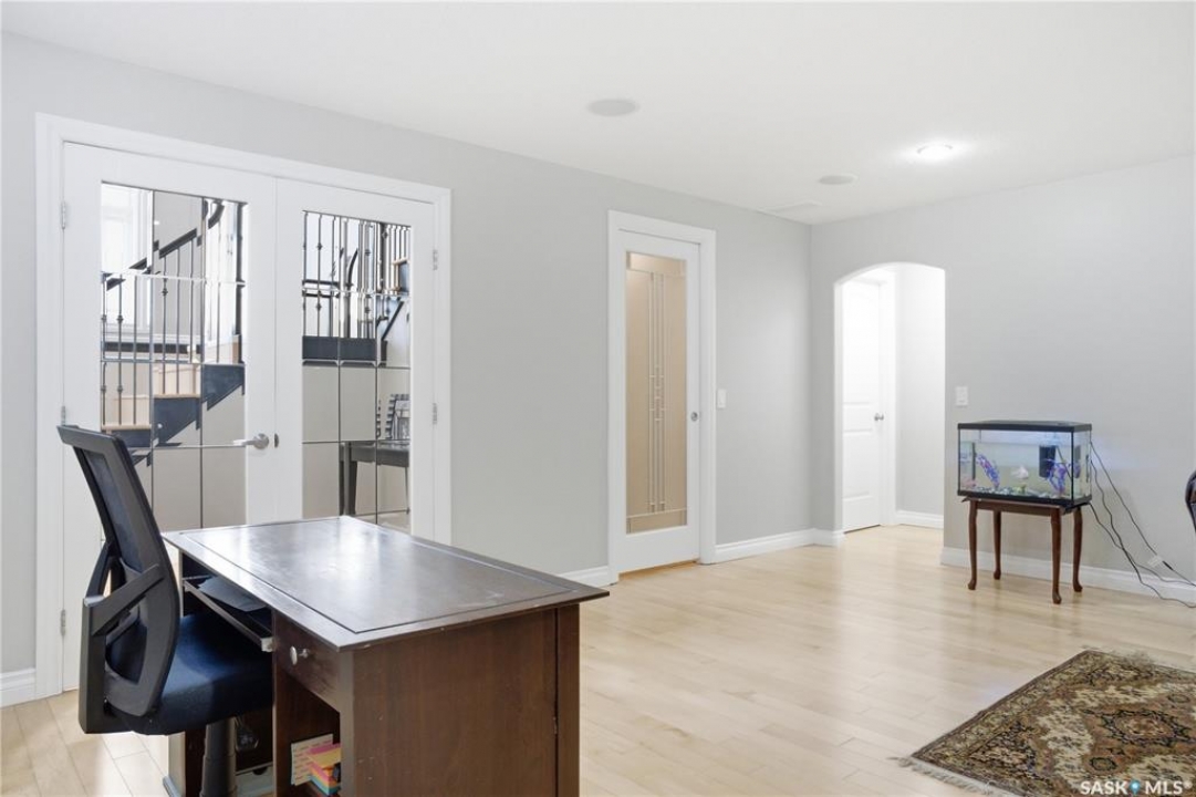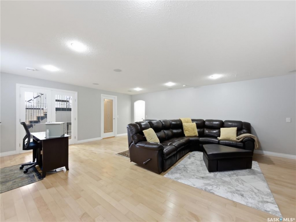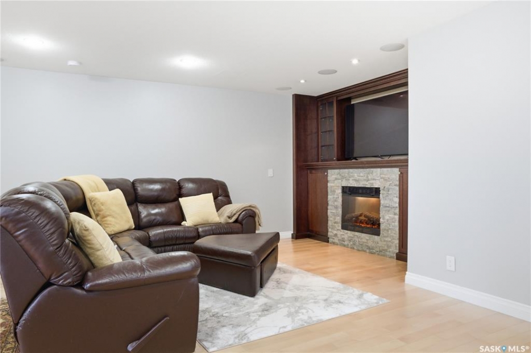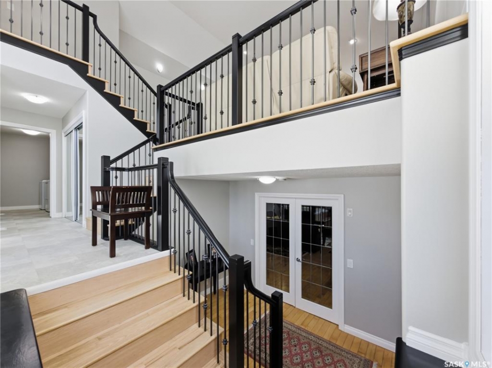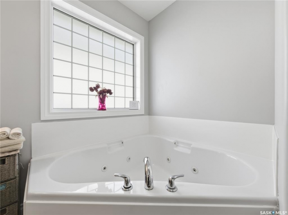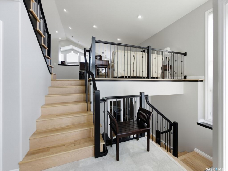 Welcome to this custom built modified bi-level by Gilroy Homes, located in the highly sought-after community of Lakeridge in Regina. Offering 1,627 sq ft of thoughtfully designed living space, this home delivers comfort, style, and an unbeatable north-end location — just steps from shopping, restaurants, parks etc. From the moment you step inside, the spacious foyer sets the tone, opening to soaring vaulted ceilings and expansive windows that flood the main floor with natural light. The open-concept layout seamlessly connects the living and dining areas, creating an inviting atmosphere perfect for both everyday living and entertaining. The kitchen is designed to impress, featuring abundant cabinetry, a functional pantry, and brand new appliances — offering both style and practicality for the home chef. Brand-new hardwood flooring (completed December 2025) and fresh paint throughout give the home a crisp, modern feel. The main level hosts two generously sized bedrooms and a full 4-piece bath, along with conveniently located laundry. The primary bedroom is tucked away on the upper level, complete with a spacious bedroom and a spa-inspired ensuite featuring a standalone shower and a relaxing soaker tub — your own personal escape at the end of the day. The fully developed basement welcomes you through elegant French doors into a large recreation space, highlighted by engineered hardwood flooring and a cozy electric fireplace. A built-in sound system enhances the entertainment experience, while the additional bedroom and 3-piece bathroom with in-floor heating add comfort and flexibility for guests or family members. Outside, enjoy summer evenings on the expansive deck overlooking the landscaped yard and garden area. Garage man-door leads directly to the dog run — perfect for pets. This exceptional home combines quality craftsmanship, modern upgrades, and a prime location. Don't miss your opportunity to call it yours--book your private showing today before it's gone!