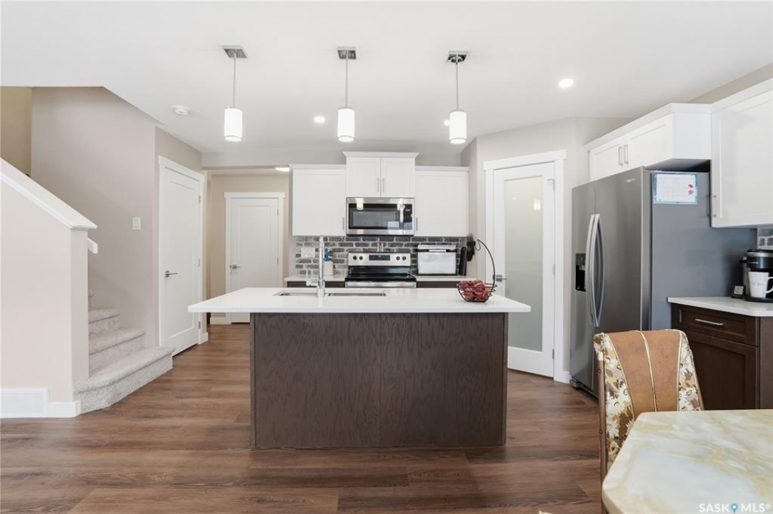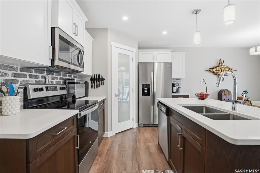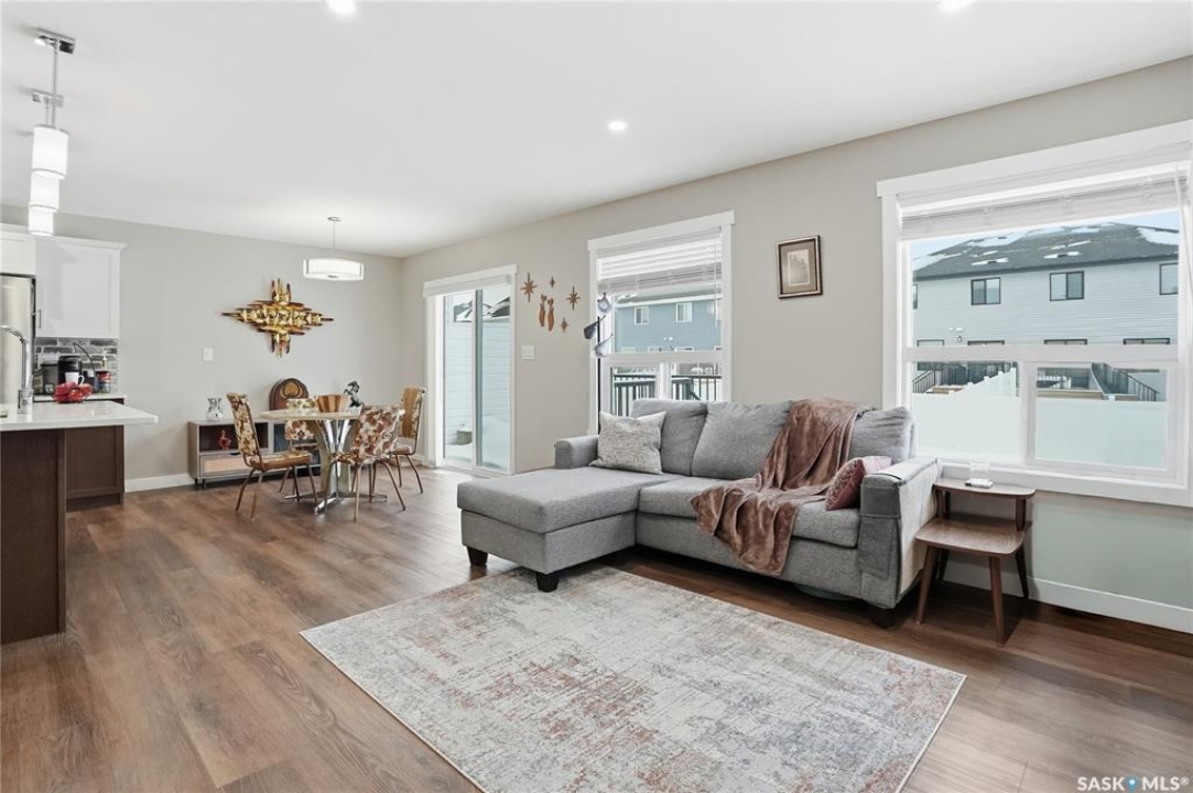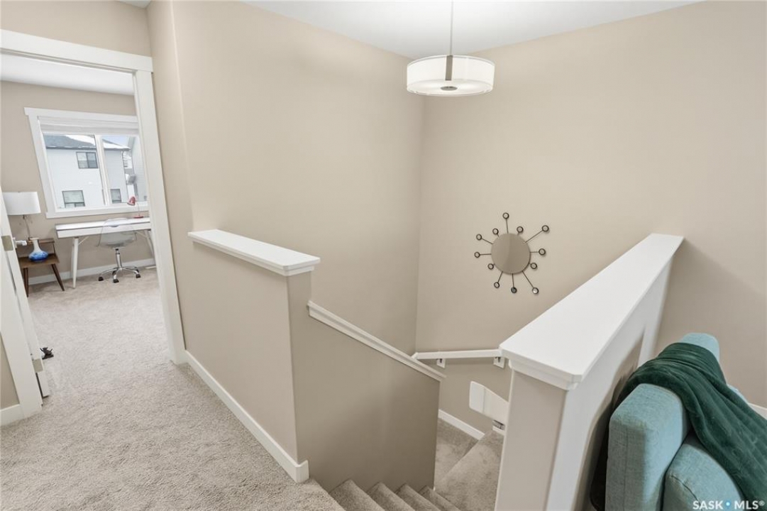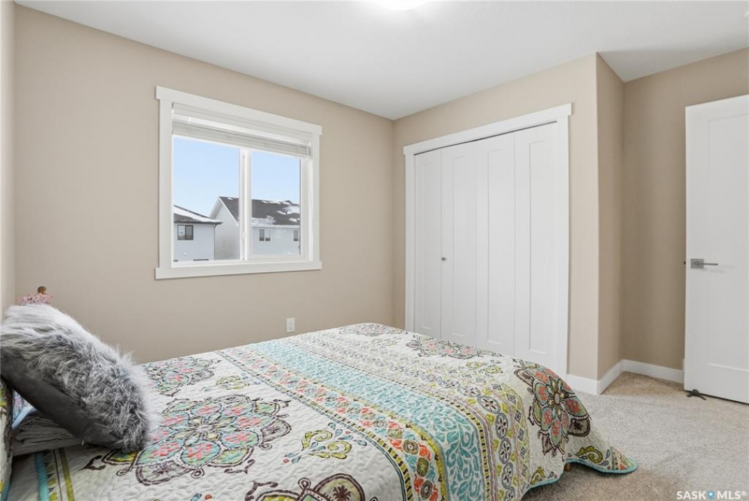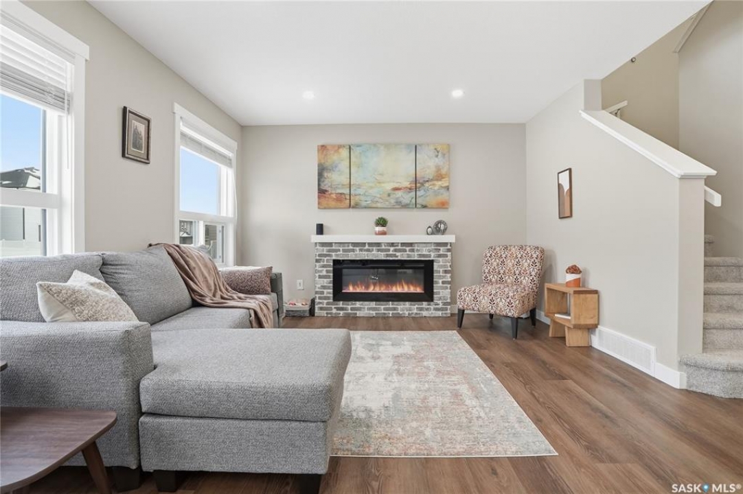 Welcome to this stunning, turn-key 1,489 sq. ft. semi-detached home offering luxury living in the heart of Brighton. Thoughtfully designed with both style and functionality in mind, the main floor features a sleek, practical kitchen complete with quartz countertops, walk-through pantry, and stainless steel appliances. The open-concept living room is perfect for entertaining, highlighted by a beautiful fireplace, along with a convenient 2-piece powder room. Upstairs, you'll find three spacious bedrooms, including a primary suite with a walk-in closet, two full bathrooms, a second-floor laundry room with additional storage, and a versatile bonus/flex room. Oversized windows throughout the home flood the space with an abundance of natural light. Additional features include central air conditioning, washer and dryer, and a front double attached garage, partially insulated. The property is fully landscaped with a fenced backyard, rear deck, and a double concrete driveway. Best of all—no condo fees! This gorgeous home truly has it all: quality craftsmanship, modern style, and a flawless layout. Located in Brighton—Saskatoon's fastest-growing neighbourhood—you'll enjoy close proximity to fantastic amenities including restaurants, convenience stores, Landmark Cinemas, Wilson's Greenhouse, Stoked Kitchen & Bar, Motion Fitness, Save-On-Foods, Shoppers Drug Mart, and more.