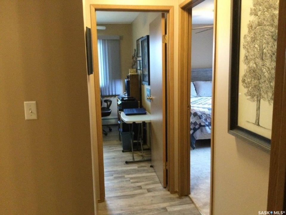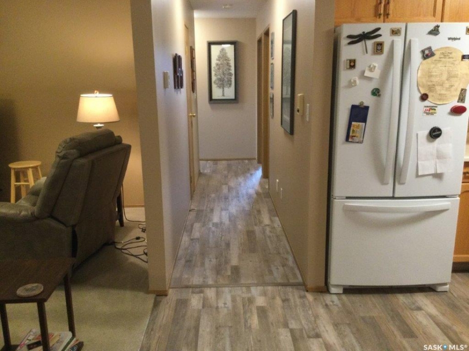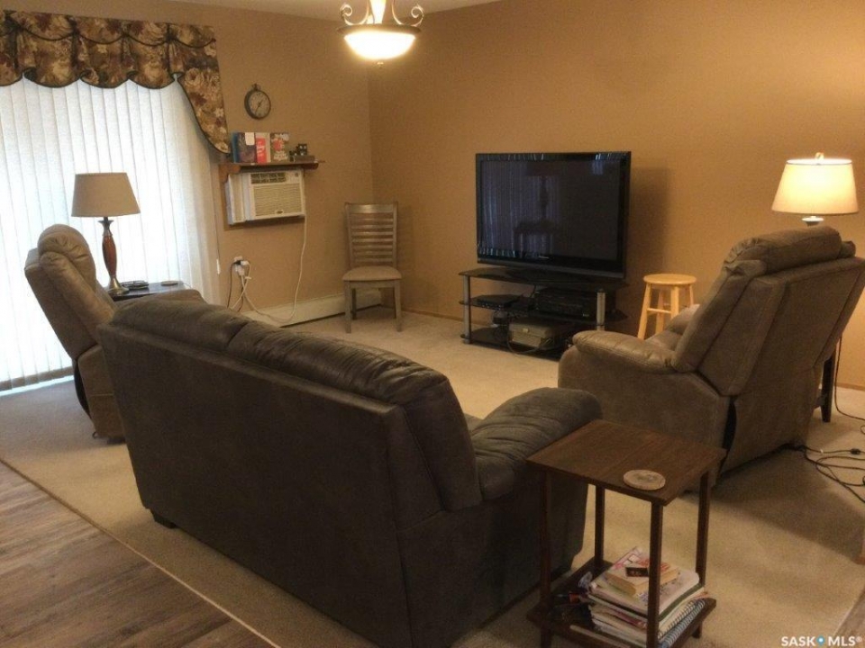 Welcome to this three bedroom condo located in Wheatland Place. The condo is located just a block from Main Street with a grocery store located beside you. Good size entrance with closet that opens to the kitchen and living/dining room with entrance to the closed-in deck that is wheelchair accessible. Good size laundry room off kitchen. 3 bedrooms are down the hall and a 4-piece bathroom. The primary bedroom has a 3-piece with walk in shower and extra storage cabinets. Features: 3 bedrooms, 2 bath condo located 1 block from Main Street. There is a closed in 3 season sunroom for enjoying the outdoors. There is a good size utility room with in unit laundry. Wheelchair accessible condo. Improvements: fridge, dishwasher, washer & dryer. Taps and faucets throughout. Vinyl plank flooring, some lighting updated, primary bath toilet updated and water shut offs replaced as well. Window treatments included. There is 1 heated underground parking stall. There is a shared room that can be booked out for larger gatherings. Call today to book your tour of this condo.