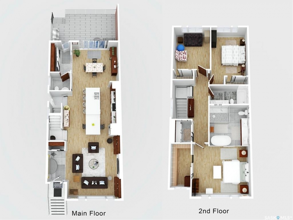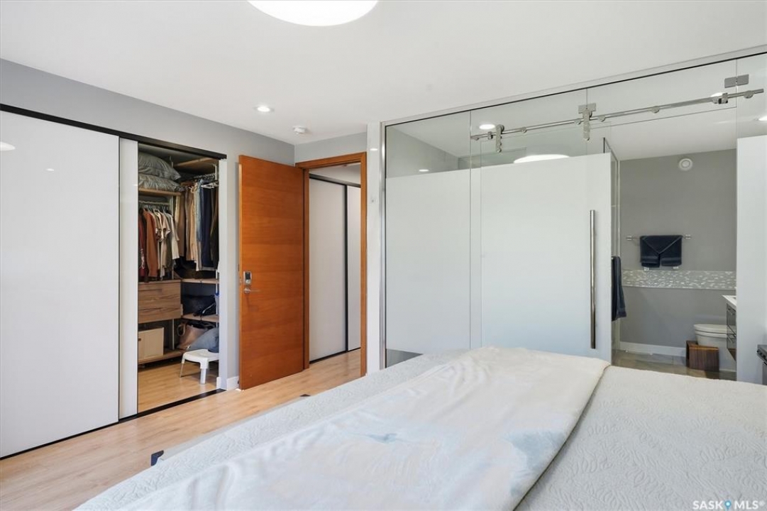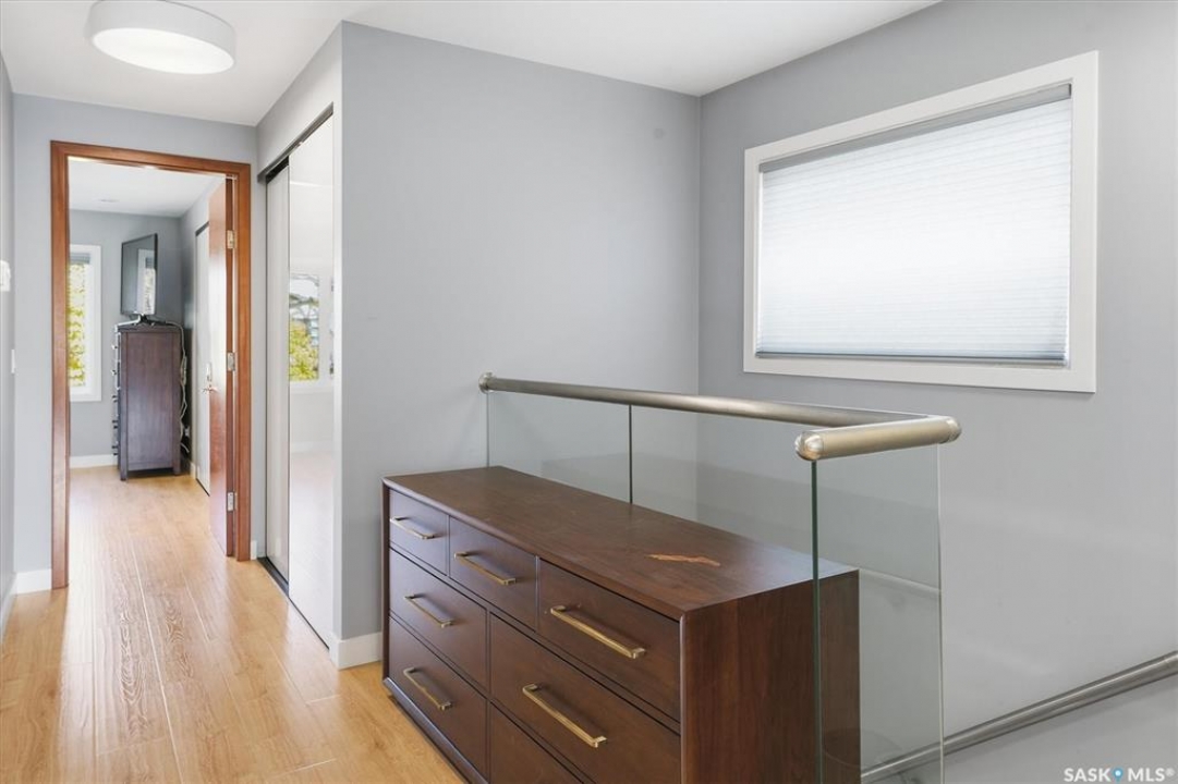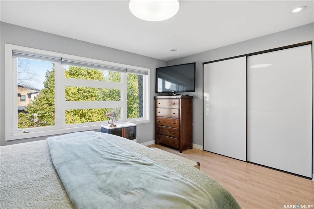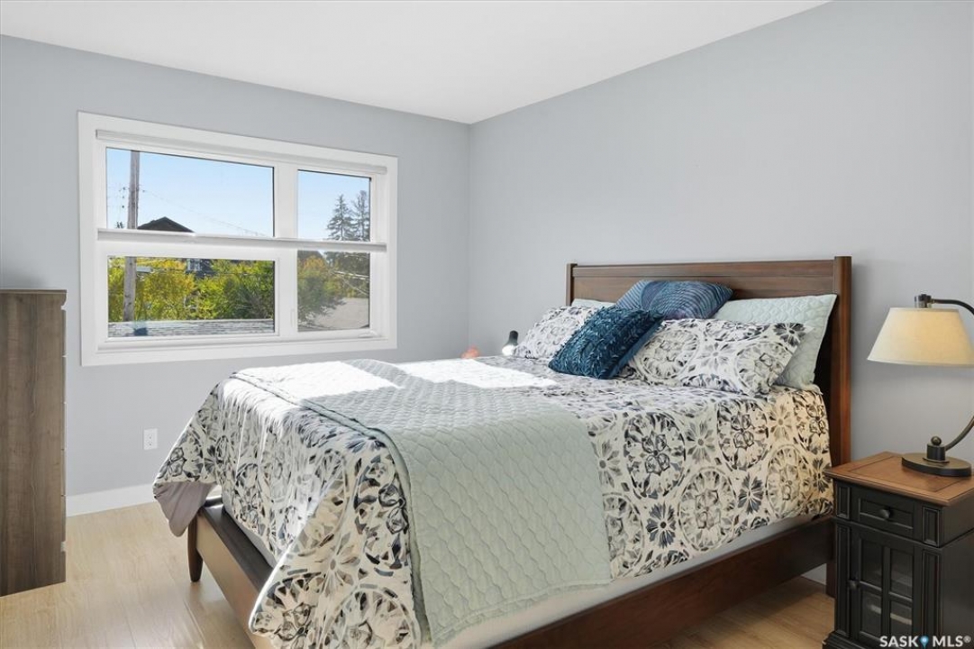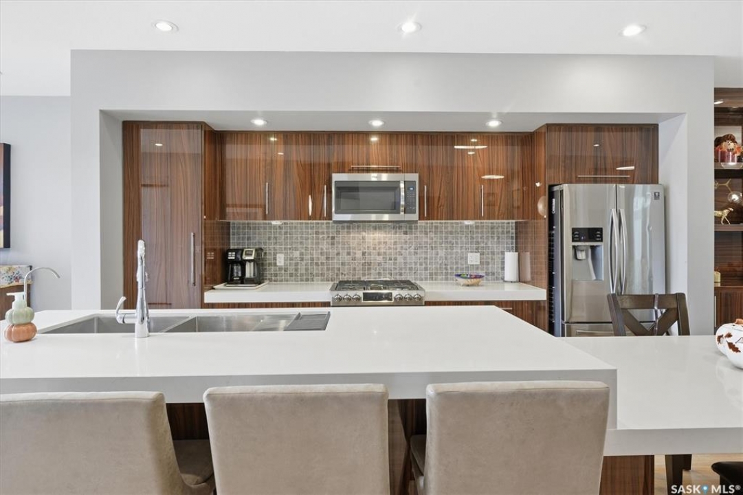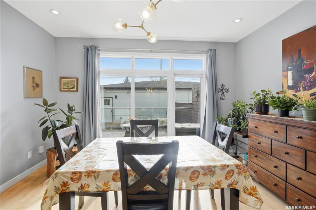 OPEN HOUSE SUNDAY MAR 8th 1-3PM. Welcome to 1106 7th St E. This stunning 1,897 sq. ft. semi-detached two-storey offers modern style and exceptional craftsmanship in the established Haultain neighbourhood. The bright, open concept main floor features 9-ft ceilings, large windows, and a stylish electric fireplace with built-in shelving. The chef's kitchen boasts high gloss cabinets, a massive quartz island, tile backsplash, and stainless steel appliances including a gas range. French doors off the dining area lead to a south-facing, maintenance-free deck and an insulated double detached garage. Upstairs, the primary suite impresses with a walk-in closet and spa-like 5-pc ensuite featuring a soaker tub, glass shower, and double sinks. Two more spacious bedrooms, a 5-pc main bath, and 2nd floor laundry complete this floor. Additional features include no carpet, custom closet organizers, open-tread staircase, pot lighting, and a side entry to the basement with 9-ft ceilings ready for development and a zeroscape yard featuring artificial turf in the front and a custom paving stone patio in the back. Call for your private showing today!!