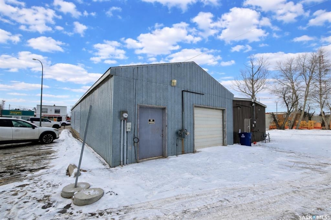 Fantastic opportunity for an entrepreneur looking for a space! This building was once known as Janna Electric and is situated in a prime location for someone looking for foot traffic in Wilkie. The spacious 1300 square foot building (per floor) is best suited to a retail space, but also has a 26' x 30' garage attached at the rear making for great storage space or workshop. The garage was added on in 1969 and has insulated walls and a gas heater roughed in (never connected or used yet). Another major asset here is the ability to split the space into 2 units. There are 2 front entry doors that could easily be divided to rent one space out for added revenue with a 4' stairway making moving product and furniture in and out a breeze. Shingles were replaced in 2016, furnace replaced in 2011, hot water heater replaced in 2025 (electric), Central air is approximately 15 years old (and works great according to the seller). Gravel drive at rear fits 2 vehicles outside and one inside the shop. Includes a 70 amp panel, new electrical in the main showroom, sump pump, and a 2-piece washroom downstairs. Stop waiting to start your dream business and get your feet wet with a fair priced building in an excellent location!!