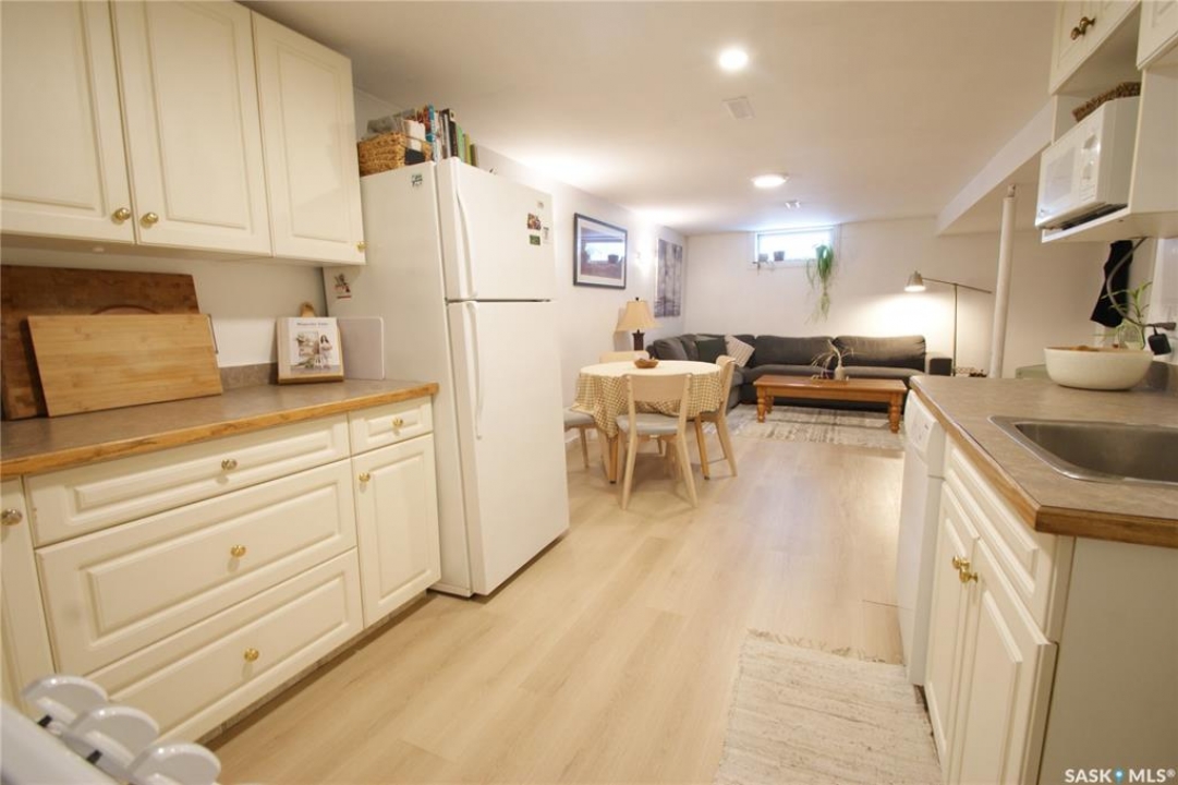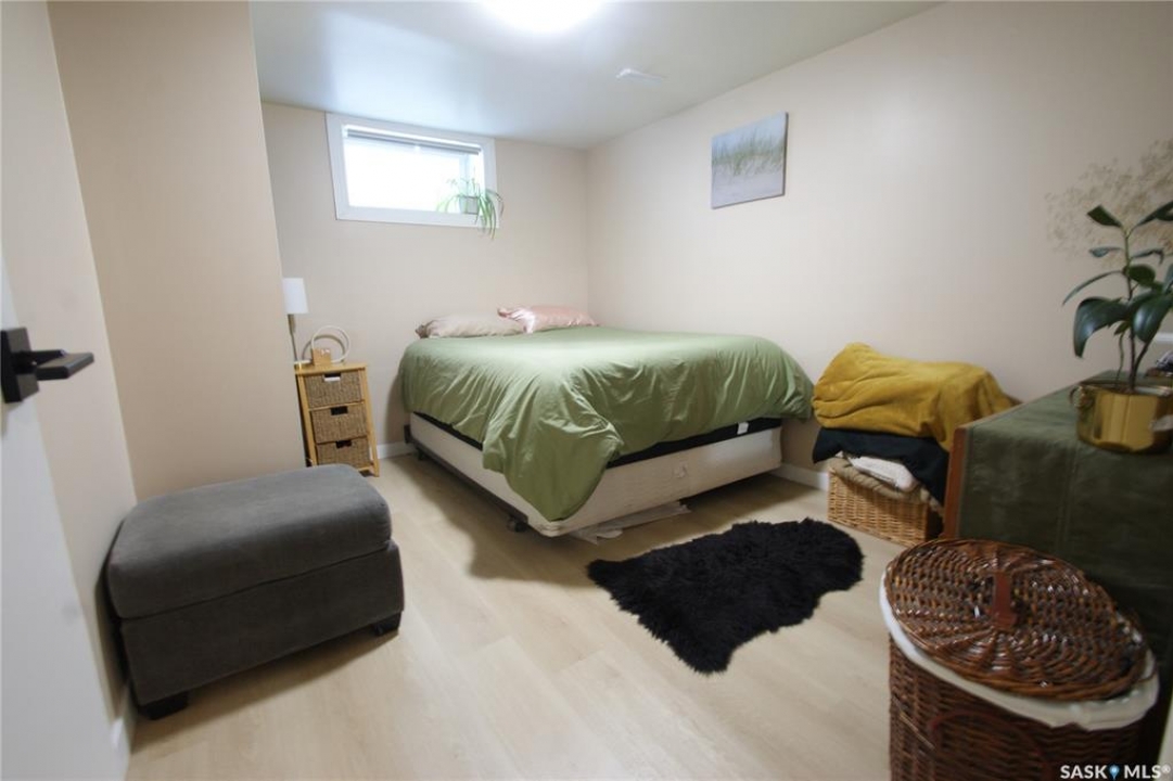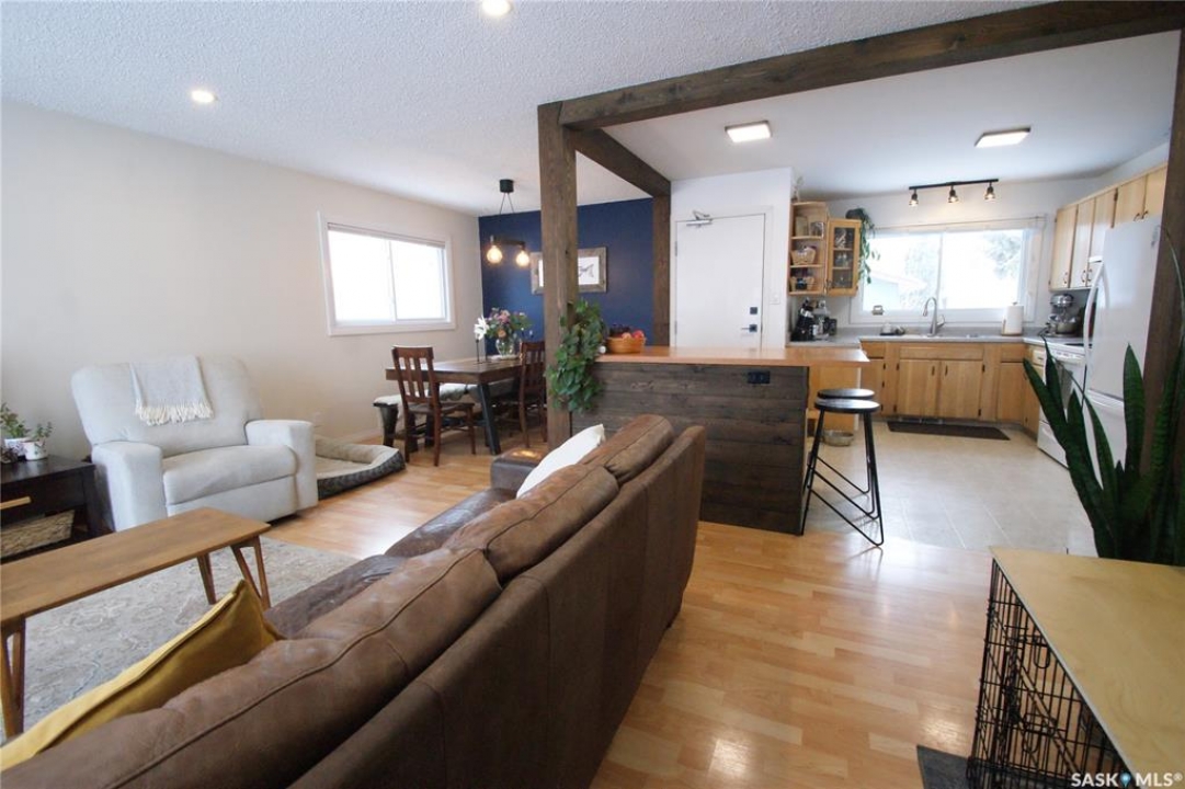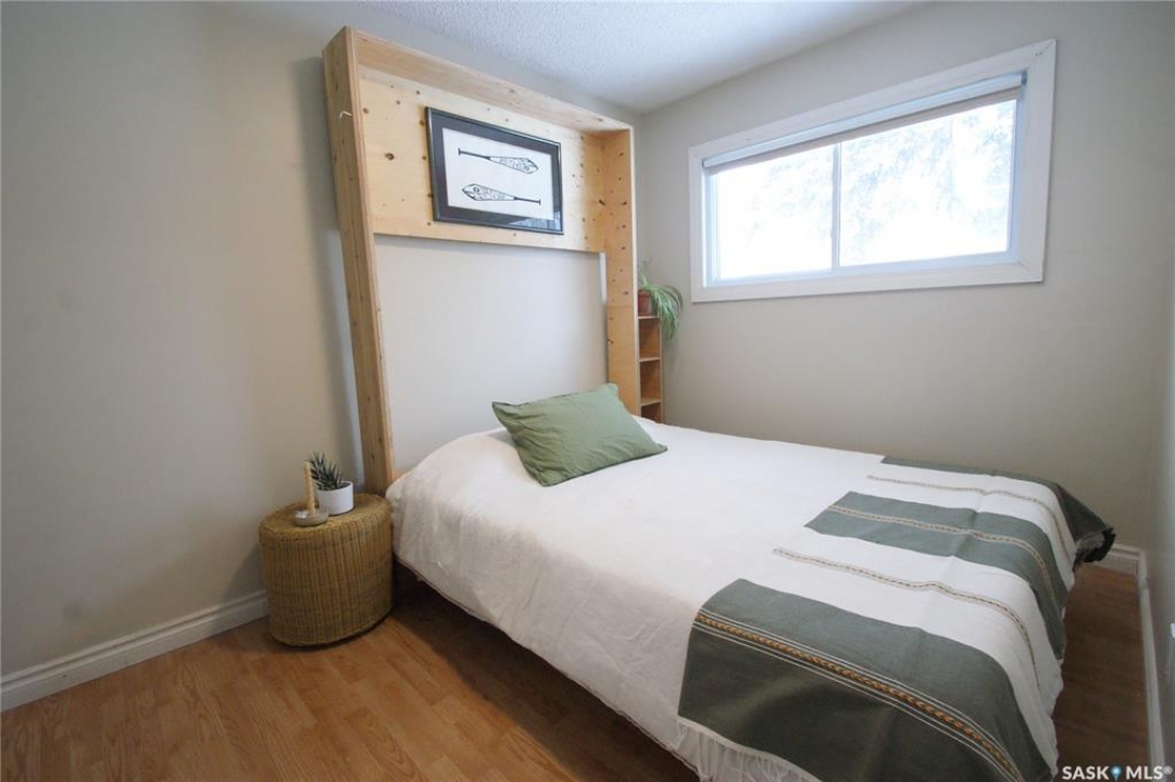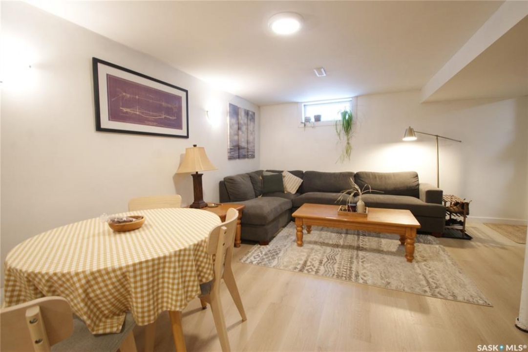 Time to call this updated bungalow in the heart of the desirable Holliston neighborhood your first home or investment property with 3+ 2 bedrooms, 2 bathrooms and a 24x26 detached garage. An open concept upstairs boasts a bright and welcoming feel. Perfect for hosting with plenty of room to gather around the island. A comfortable and cozy LEGAL 2 bedroom 1 bathroom basement suite is accessed via a back door entrance which leads down to the suite and a shared laundry with 2 washing machines. Walk to 8th street or Market Mall. One block to bus. Parks are nearby as well as Primary and High schools. Fencing, landscaping improvements, flooring, central air, humidification, roof, hot water tank and furnace are just some of the more recent updates you'll find.