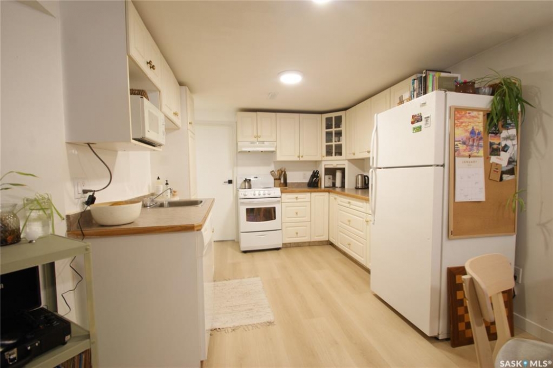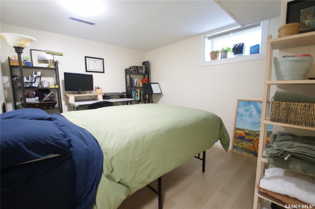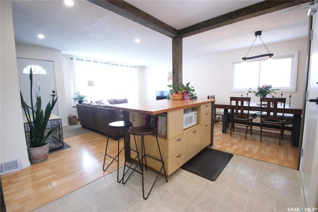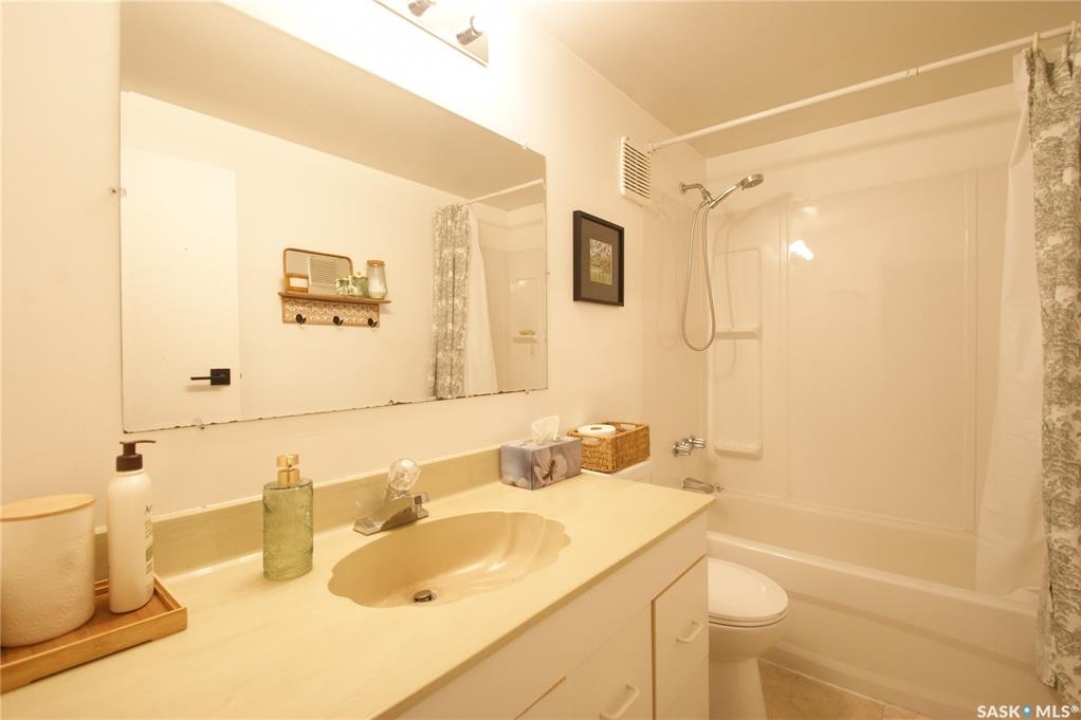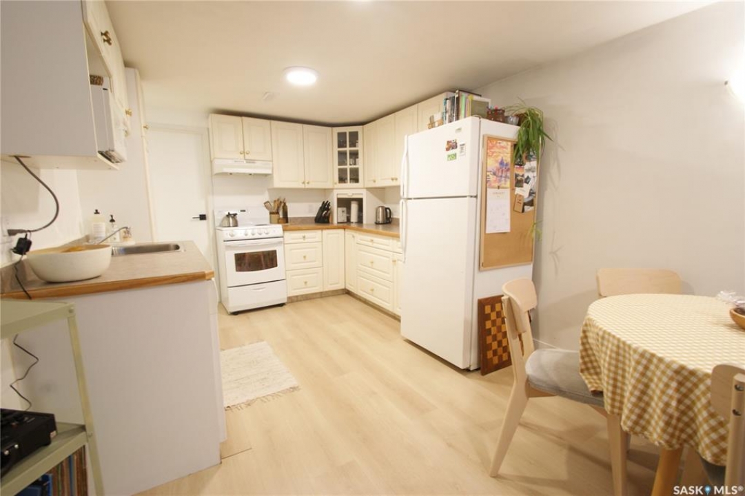 Time to call this updated bungalow in the heart of the desirable Holliston neighborhood your first home or investment property with 3+ 2 bedrooms, 2 bathrooms and a 24x26 detached garage. An open concept upstairs boasts a bright and welcoming feel. Perfect for hosting with plenty of room to gather around the island. A comfortable and cozy LEGAL 2 bedroom 1 bathroom basement suite is accessed via a back door entrance which leads down to the suite and a shared laundry with 2 washing machines. Walk to 8th street or Market Mall. One block to bus. Parks are nearby as well as Primary and High schools. Fencing, landscaping improvements, flooring, central air, humidification, roof, hot water tank and furnace are just some of the more recent updates you'll find.