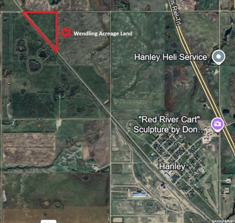 Nearly 30 acres of Saskatchewan sky, silence, and space — and it's all yours. This stunning 29.59-acre parcel sits just 2 minutes northwest of Hanley, striking the perfect balance between wide-open rural living and everyday convenience. With 2,286 feet of frontage along a beautifully shaped triangular lot, the sheer presence of this land has to be experienced in person. Fully serviced with city water, and just 2.2 km off Highway 11, you're 40 minutes from Saskatoon, 5 or so minutes from Blackstrap Lake, and always connected — without ever feeling like it.
