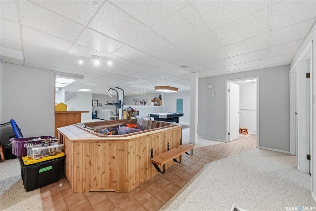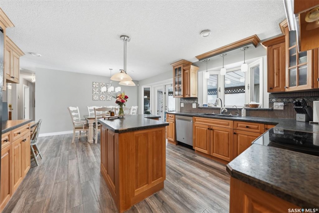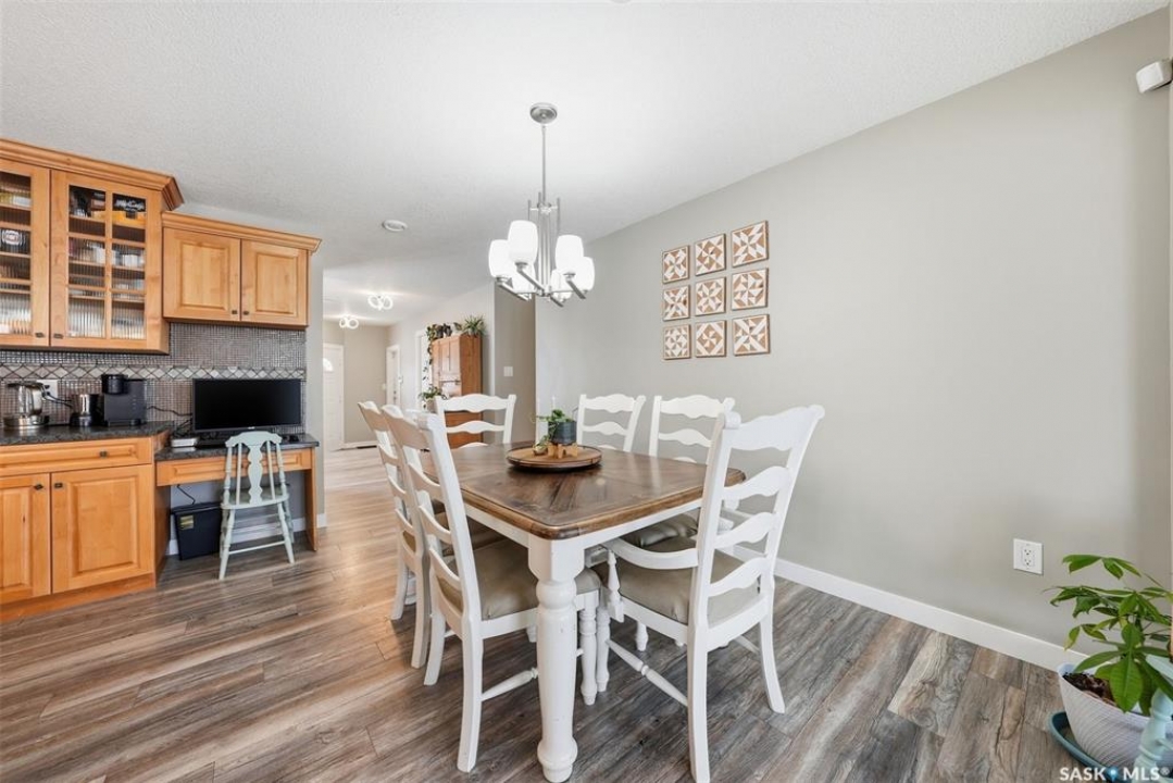 This sprawling bungalow ideally located in the busy town of Watrous has tons of updates! As you step in the front door, you'll notice the huge living room to the right, or the dining area with garden doors to the covered deck straight ahead. Huge north facing living room window offers tons of natural light with street view. Dining area flows into the kitchen, overlooking the back yard. Custom maple cabinetry offers tons of work space and storage, ideal for everyday family meals or entertaining. Down the hall you'll find the updated main bathroom with tile floor, the primary suite with 3 pc bath, walk in closet and bonus closet, and 2 more bedrooms. Vinyl plank flooring throughout the main floor along with updated doors, trims, and lighting make this a clean, bright space. Completing the main floor is the laundry/mud room. Basement is completely finished with family room area, games area, wet bar, hot tub (not in use), 3 pc bath, another bedroom and utility/storage. Front entry also accesses the full double garage with storage area and in floor heat. The covered/screened deck overlooks the fenced back yard, and is perfect for outdoor enjoyment - rain or shine! Mature yard has a firepit, garden area, fruit trees and a shed. Pathway access to 12th Ave (and sportsgrounds/swimming pool beyond) is adjacent to the house.Watrous is just a few minutes from the resort villag eof Manitou Beach, 1 hour to Saskatoon, and under 2 hours to Regina. It is also within 30 minutes of 3 potash mines, and 45 min to BHP Jansen. This town has full services, including a schools, rec facilities, health care, shopping, churches, restaurants/bars, and more. Call today to book your private viewing!