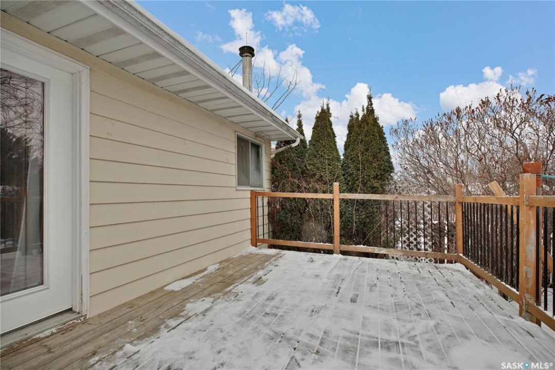 Welcome to this charming 864 sq ft bungalow featuring 3 bedrooms and 2 bathrooms, perfect for families or first-time buyers. The home offers convenient direct access to a spacious deck and nicely landscaped yard, ideal for relaxing or entertaining during the summer months. Enjoy modern comfort with a high-efficiency furnace and water heater, central air conditioning, and a cozy electric fireplace. The property also includes a single concrete driveway for easy parking. Step outside to a fully fenced, well-developed yard with a large deck—perfect for kids, pets, and outdoor gatherings. Located in a family-friendly area, the home offers beautiful park views from the front windows, and you can watch the kids walk to school right across the park. This move-in ready home combines comfort, convenience, and a great location. Don't miss out—this one won't last long!
