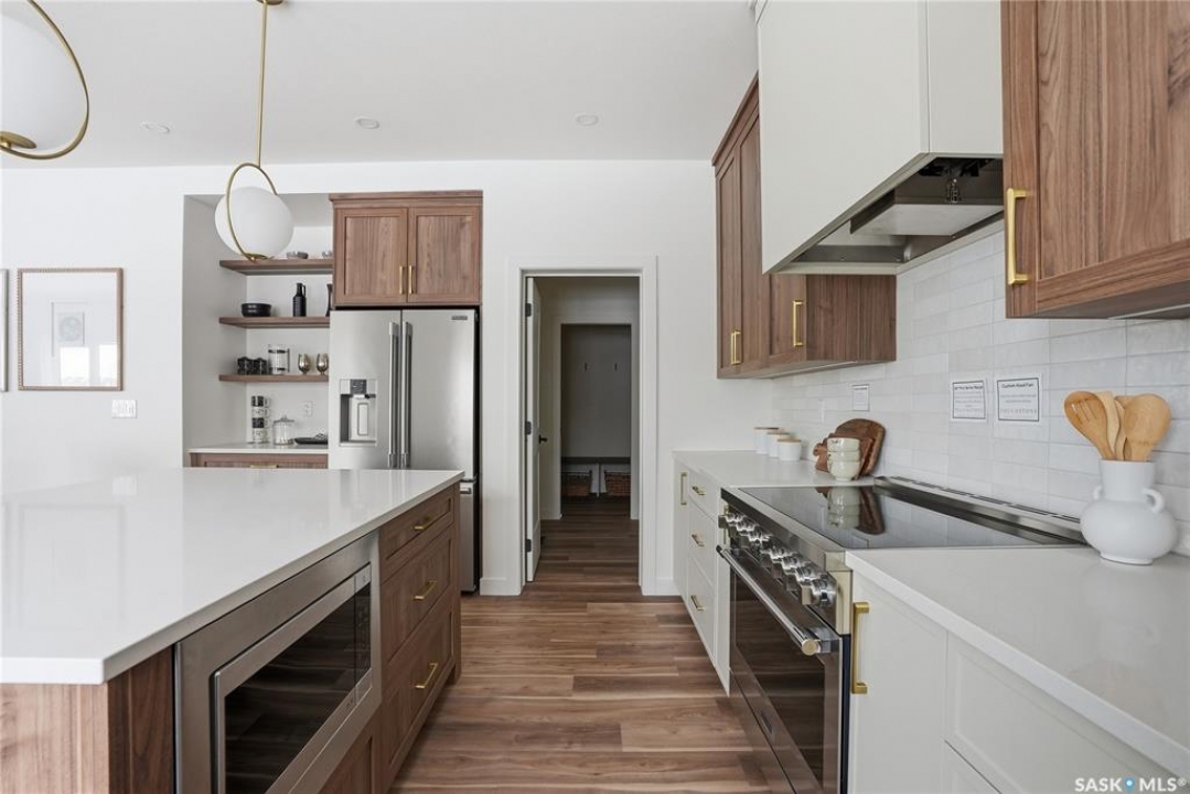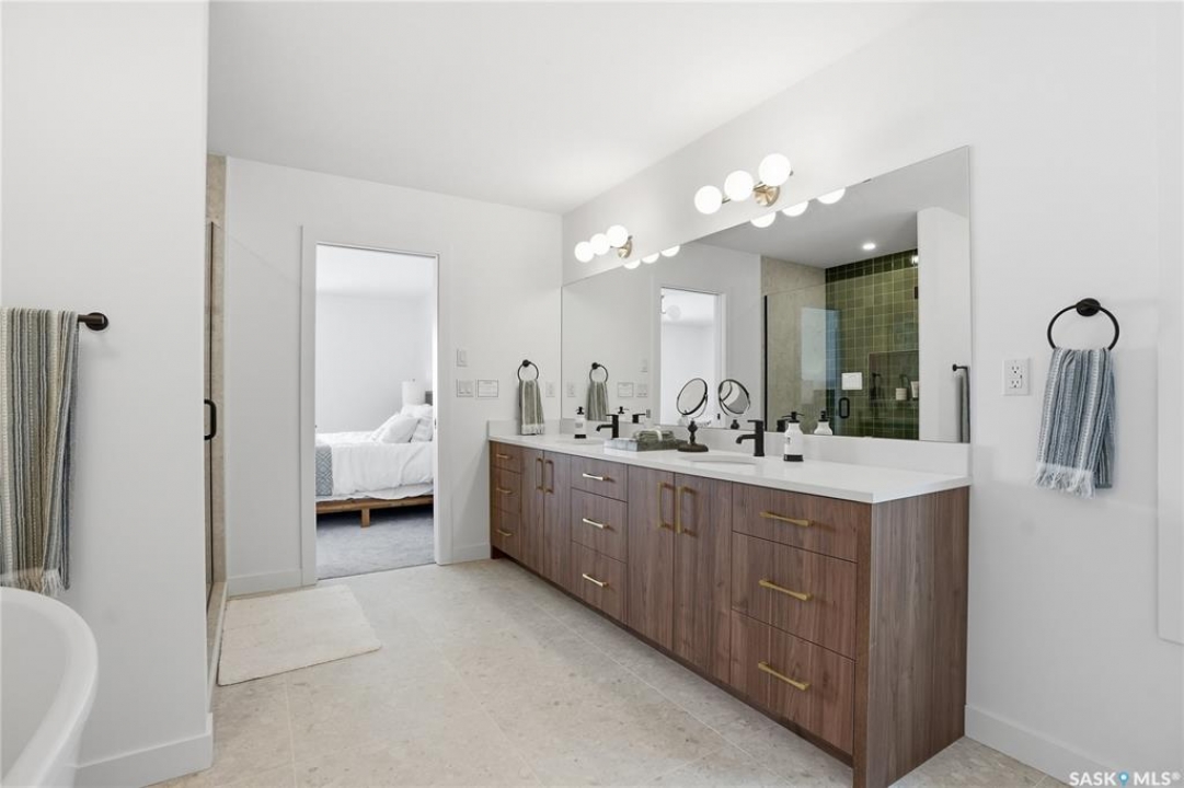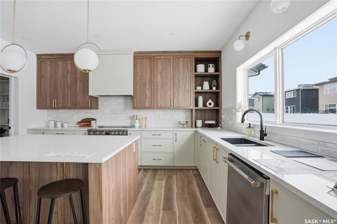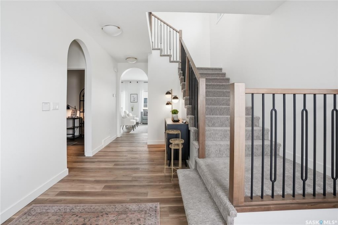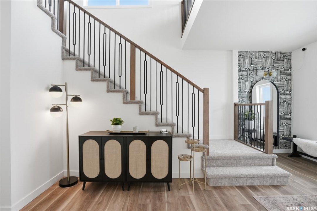 Built by Touchstone Homes, known for exceptional craftsmanship and a strong commitment to quality construction and customer service, this luxury show home in Brighton is perfectly positioned facing south onto the community's stunning water feature and just steps from parks and the neighborhood's extensive walking paths. This home is situated on one of the most prestigious streets in the community. The main floor layout is ideal for busy families, offering a spacious front entry and a highly functional mudroom and utility corridor that allows the home to flow efficiently for everyday living. The rooms on the main level are all generously sized and thoughtfully designed. Upstairs, the sun-filled bonus room provides the perfect gathering space for families or a comfortable retreat for kids. The second floor continues the theme of spacious design, with well-proportioned bedrooms and a beautifully designed laundry room that is both stylish and highly functional. The primary bedroom enjoys beautiful south-facing views over Brighton's lake, and the luxurious ensuite includes all the features expected at this price point. The secondary bedrooms are also generously sized and ideal for family living. Basement development can also be completed by the builder if desired. The front yard is fully developed with a double attached garage, sidewalk to the front entrance, and completed front landscaping with underground sprinklers.