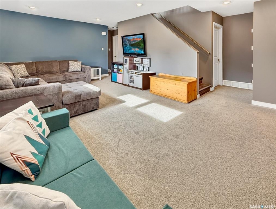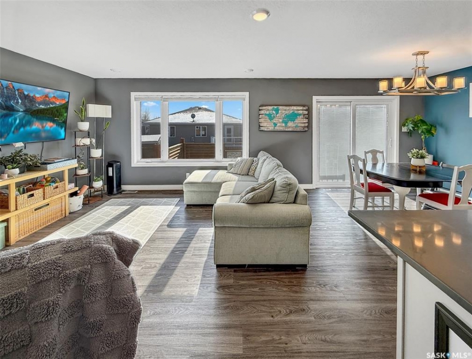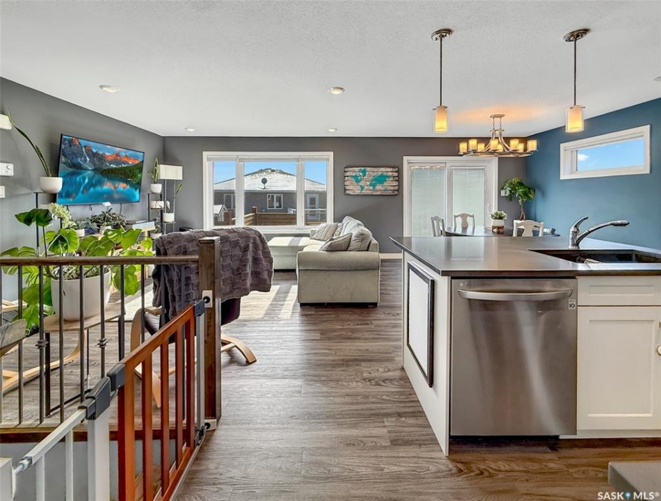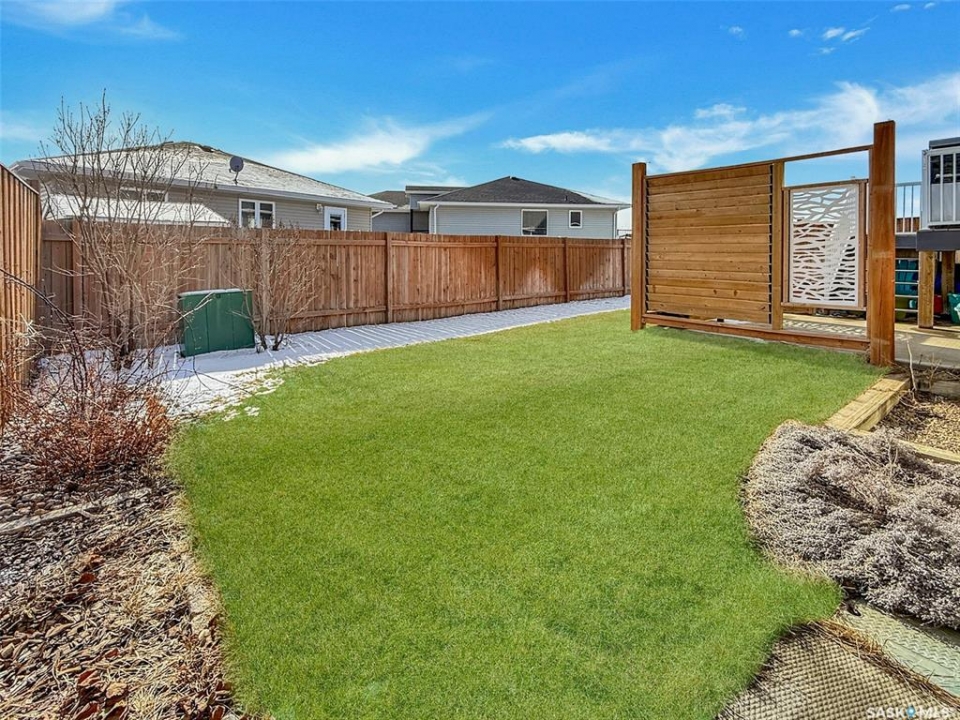 Welcome to 820 Battleford Trail — a 2016-built bungalow that blends country tranquility with convenient city amenities. Situated on the edge of highland, the home offers reduced traffic and expansive prairie views while remaining within the Centennial, École, and All Saints school bus catchments and close to city amenities. Constructed by a reputable local builder, the residence features a contemporary color palette and numerous high-end finishes. The private front entry provides easy access to an insulated double garage, plumbed for gas heat, and equipped with versatile storage solutions including ceiling-mounted racks that lower. At the front of the home you will find a bedroom or home office, a four-piece bathroom, and main-floor laundry for added convenience. The rear of the home presents an open-concept great room flooded with natural light from windows that span the back wall. The space is organized into a generous living area, a dining zone with patio doors to the deck, and a modern kitchen with white cabinetry, stone countertops, SS appliances, a walk-in pantry, and a large island ideal for entertaining. The oversized primary suite includes a substantial walk-in closet and a three-piece ensuite with a glass-tiled walk-in shower. The finished lower level offers an expansive family room with large windows, two additional bedrooms (one with a walk-in closet), a third full bathroom, a versatile den suitable for an office or playroom, and a modern utility room. Built with durable and efficient systems, the home includes an ICF block foundation, energy-efficient furnace, air exchange system, an on-demand hot water heater(3 years old). The fully fenced yard features a concrete patio with an adjustable privacy screen (new), under-deck storage, and established perennials and fruit bushes. If you are seeking modern construction in a desirable location that is move-in ready, this property warrants consideration. For more information please contact today.