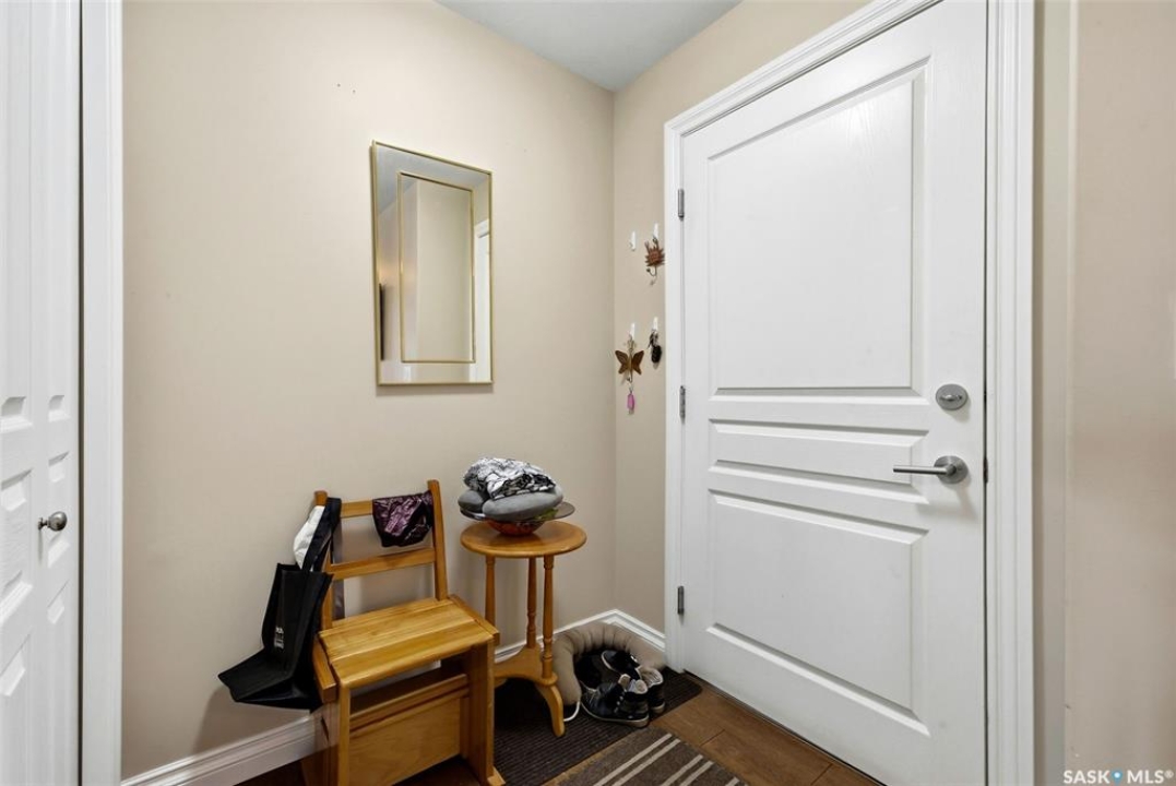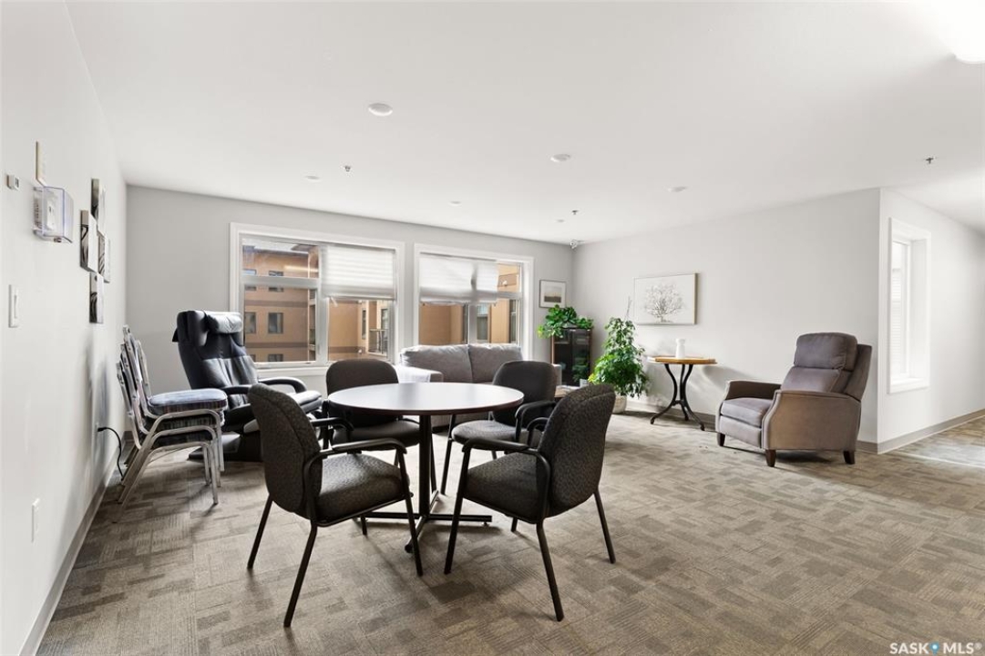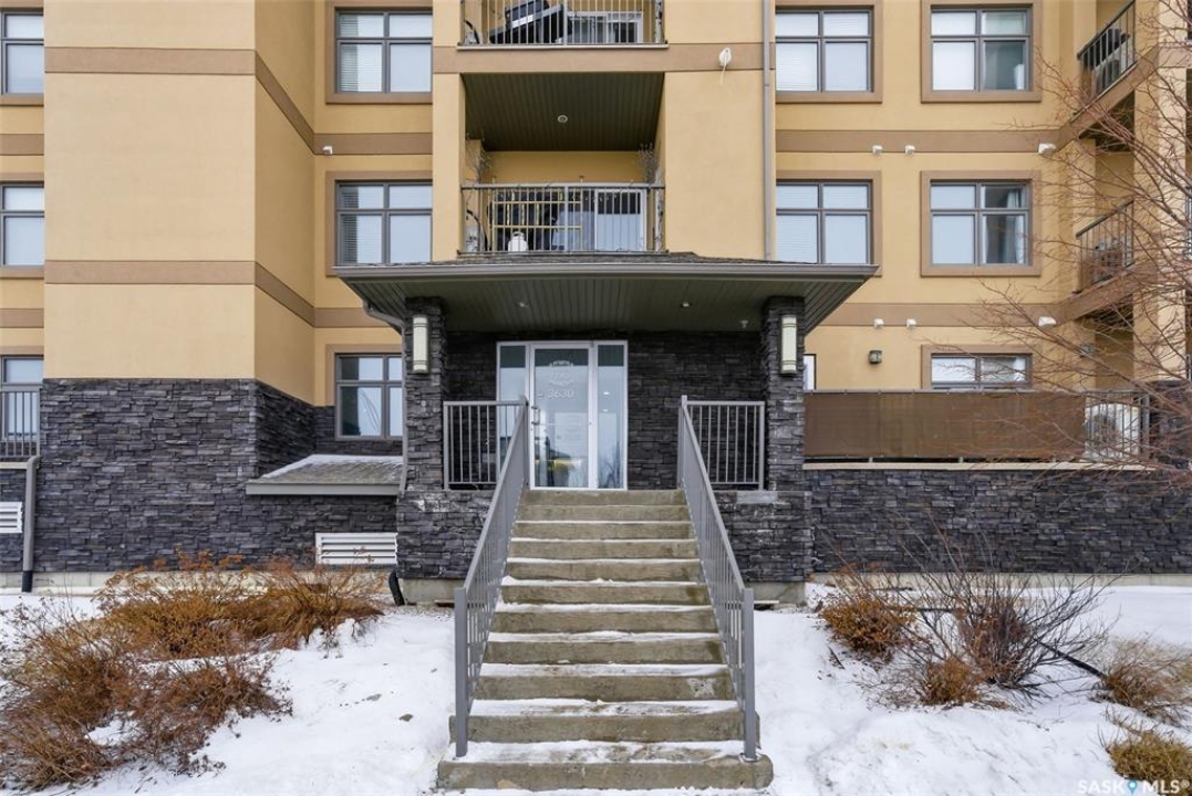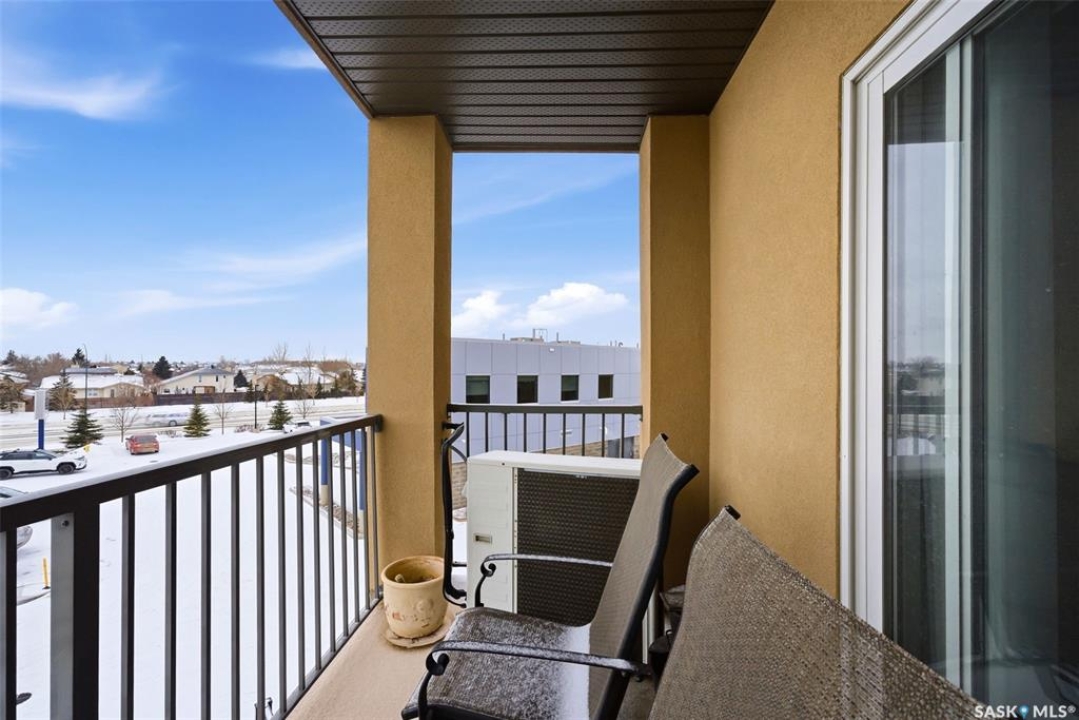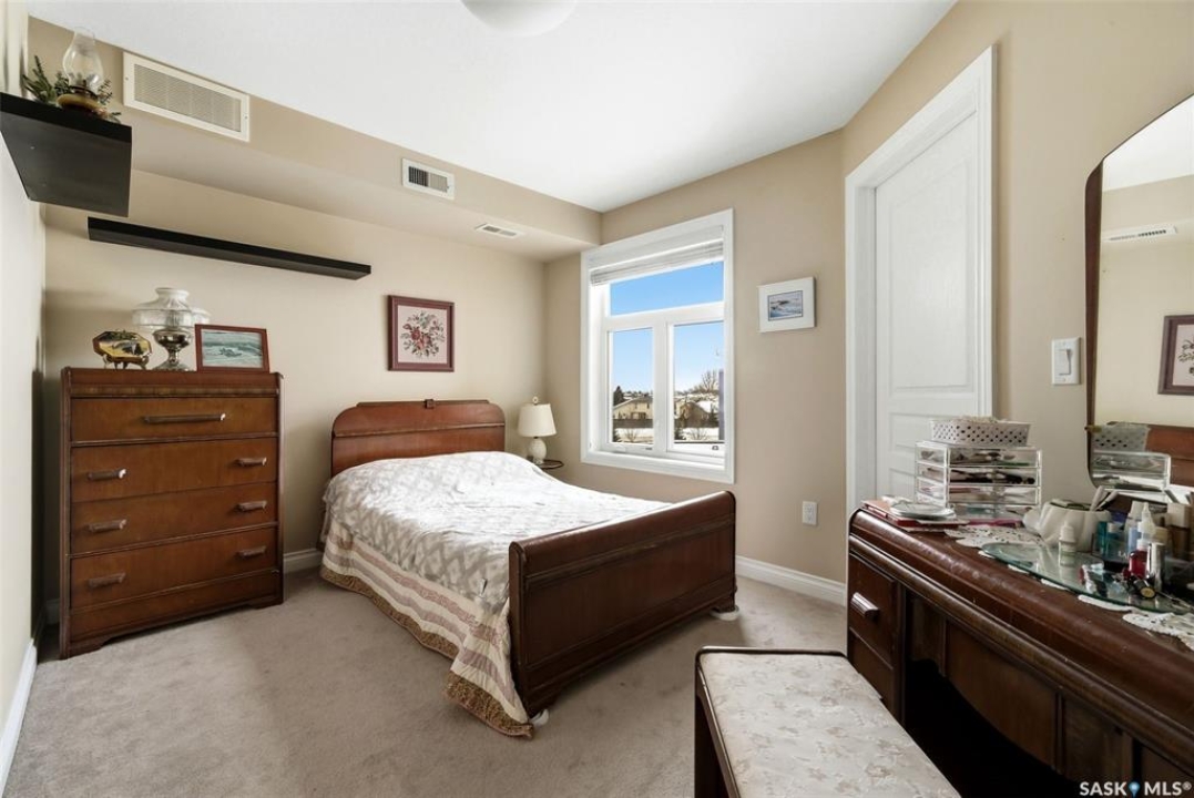 A very bright and spacious 2nd floor corner unit in the Haughton Villas. A very unique building that includes a shared courtyard and great common spaces. Well located in Regina's East End close to parks, Prince of Wales Drive and plenty of restaurants and shopping. This two bedroom, two bathroom unit welcomes you with a spacious foyer and a well-laid out floor plan. The 2nd bedroom (with walk-in closet) and full bathroom are located away from the rest of the unit, perfect for guests. The main living room, kitchen and dining space have a great natural light. Easy access to the corner balcony and storage room. The large master suite has a massive walk-in closet and full ensuite with shower. In suite laundry room. One heated underground parking stall and an oversized storage space are included with this unit. Condos fees of $547.75 include water (building has central, shared water heater). Unit has it's own furnace and central air conditioning.