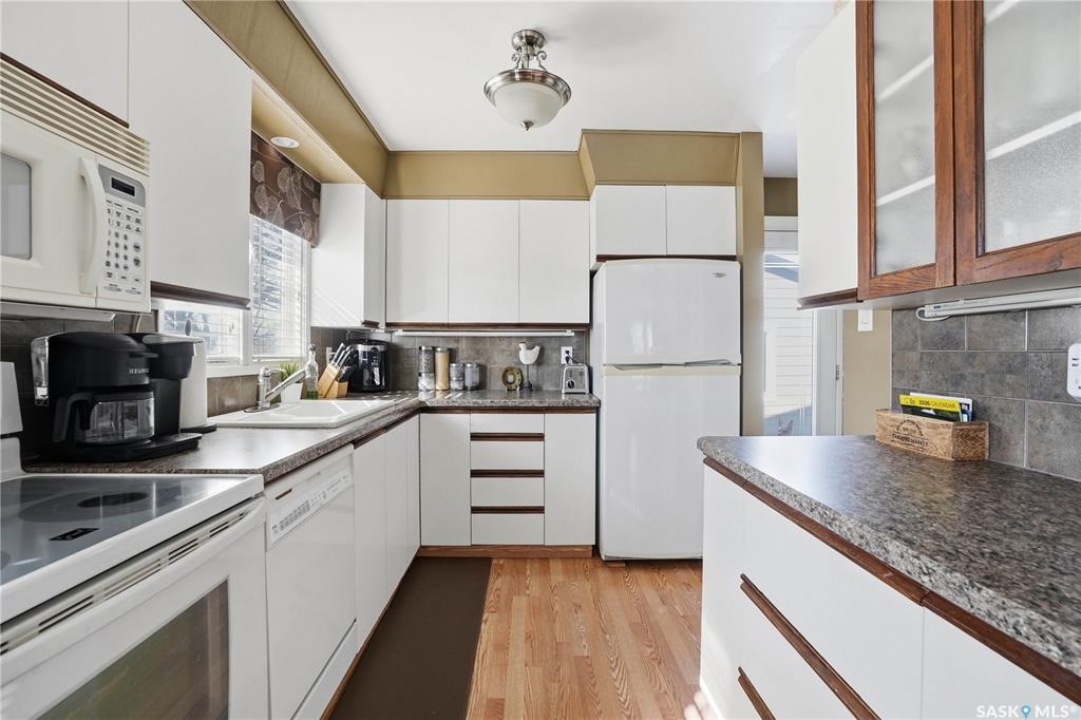 Exceptional bungalow in Glencairn is located on a quiet crescent and is move in ready. Long time owner and pride of ownership is very evident. Spacious carpeted living room features bright south facing window, crown mouldings. The practical and functional kitchen features a pantry, fridge, stove, built-in dishwasher and microwave hood fan. 3 bedrooms on the main floor, upgraded main bathroom with granite topped vanity and jetted tub. Upgraded interior doors, closet doors, trim and baseboards, Decora light switches. Basement is tastefully finished with cozy rec-room, office/den area and 4th bedroom (window may not meet egrees). Carpet was replaced in 2012. Second bathroom includes toilet, shower and sink/vanity. Tons of storage in the utility room with additional storage area. Outside you'll find a 21 x 24 detached garage which was built in 2012. Its insulated and heated and features 9' ceiling height. Hardee board siding on the house and composite siding (cement board) on the garage for long lasting durability. Private and mature yard with shrubs and trees. Underground sprinklers in front yard.. Lawn and patio area in the backyard. Upgraded fence. Shingles were replaced 2012. Water heater and water softener are rented. Mid efficient furnace. Closet to east end amenities and walking distance to schools, parks and shopping. Bus routes nearby.