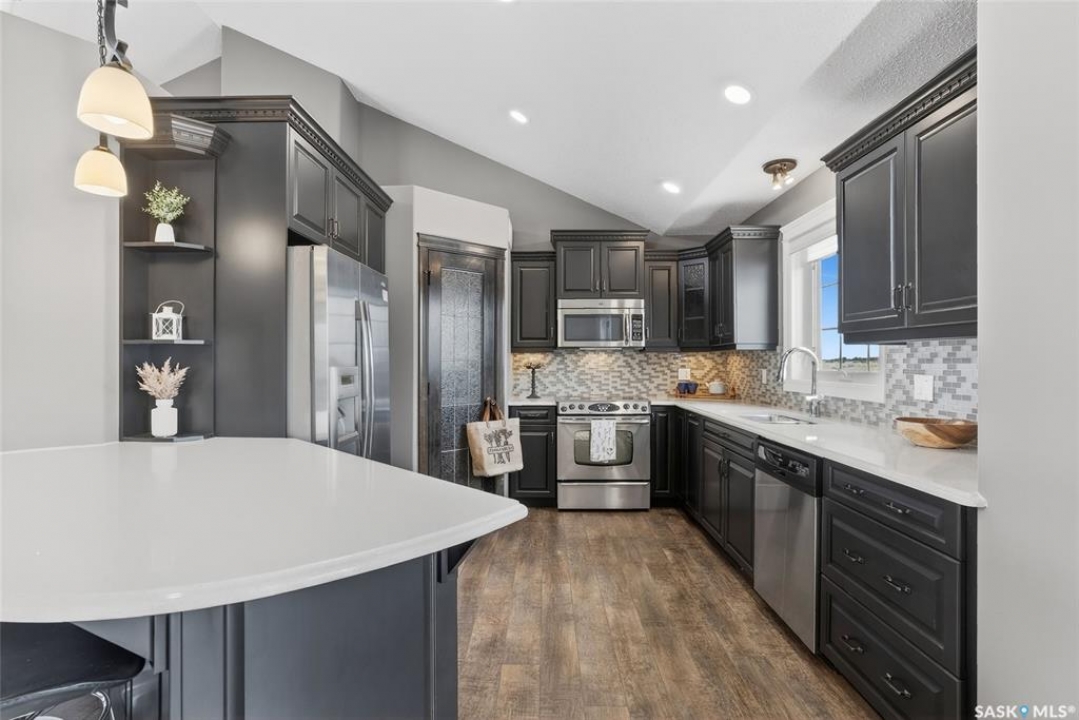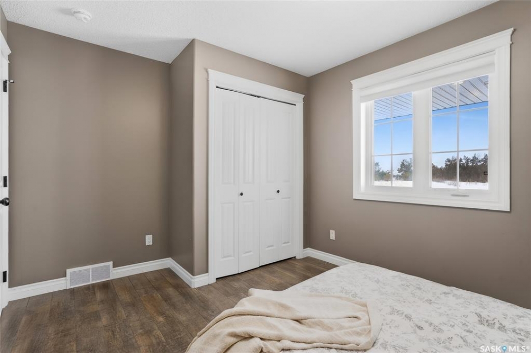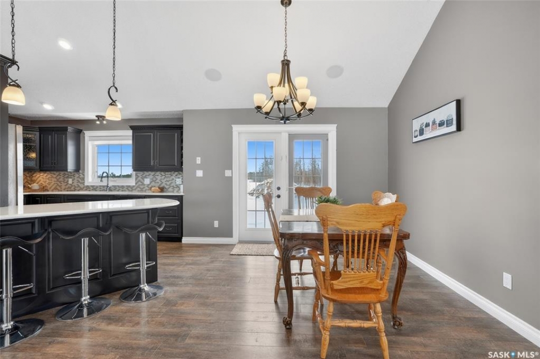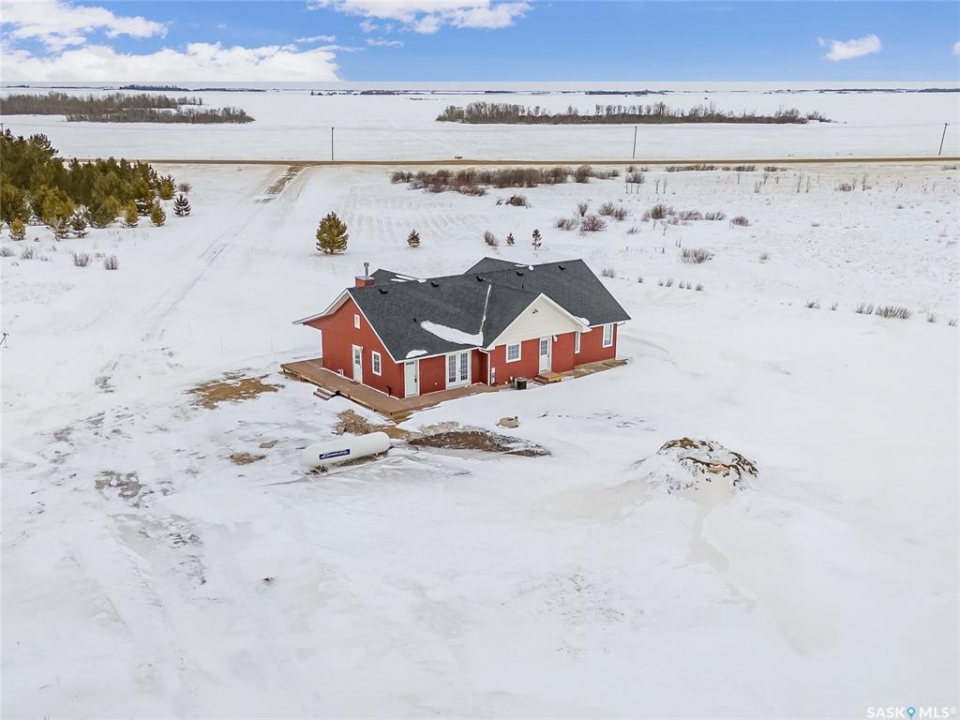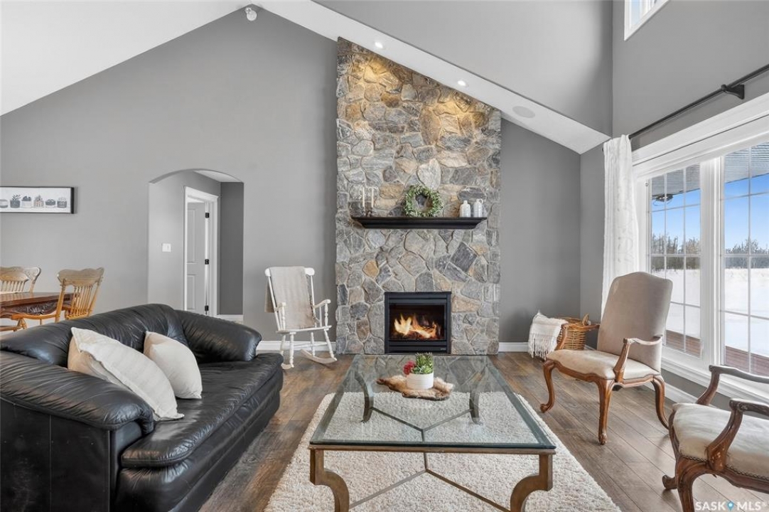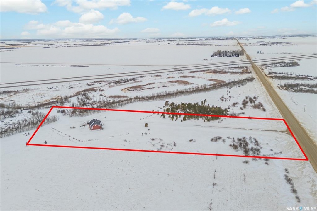 Welcome to this beautiful 2014 Cape Cod style bungalow situated on 10 scenic acres just minutes from Saskatoon, Dalmeny, and Martensville, offering the perfect balance of peaceful acreage living and convenient access to the city with nearly all pavement via Highway 16. This former Pinnacle Homes show home features 1,618 sq ft of thoughtfully designed living space with soaring vaulted ceilings, large dormer windows, and a stunning floor to ceiling stone fireplace that anchors the bright, open living area. The spacious kitchen is ideal for entertaining with a peninsula island, quartz countertops, tile backsplash, stainless steel appliances, and a corner pantry with excellent storage, while durable laminate and tile flooring run throughout the home with no carpet anywhere. The layout includes three bedrooms and a large mudroom that could easily be reconfigured by relocating laundry to the adjacent 3-piece bathroom. A 4-foot crawl space basement provides abundant usable storage, and outside you'll find a wraparound deck overlooking the property, with railing included should the new owner wish to install it, though the deck sits less than two feet from the ground. The 10-acre parcel offers a great mix of mature trees and open pasture with subdivision currently in process, a well with outdoor hydrant and tap, and the home currently supplied by a large cistern with the option to switch to the well if desired. The home is heated by propane with very low annual heating costs, and buyers also have the option to incorporate a dream garage into their mortgage through a purchase-plus-improvements program, making this a rare opportunity to own a flexible, beautifully designed acreage property with endless possibilities just minutes from the city! Welcome to your dream prairie acreage!