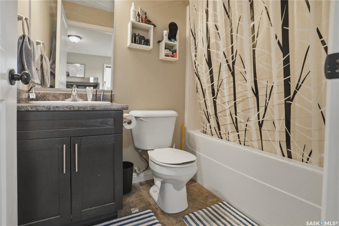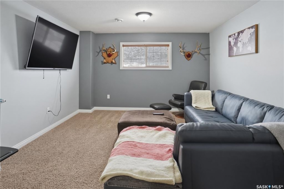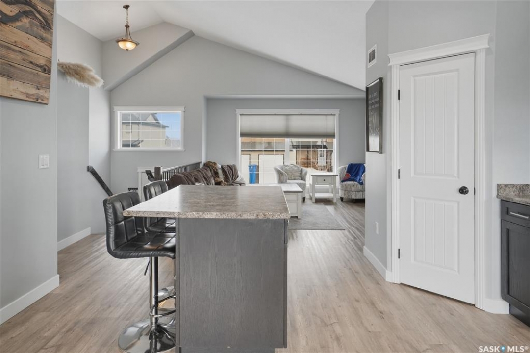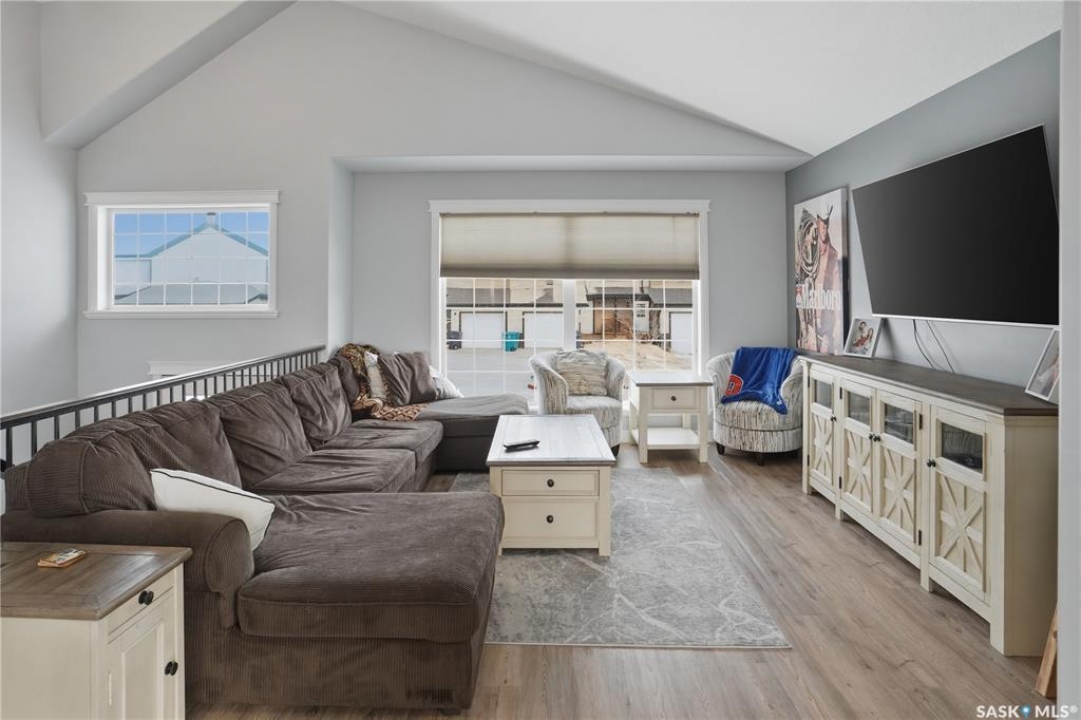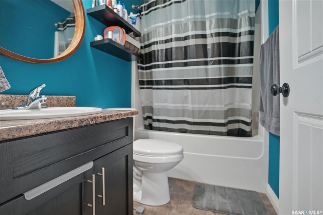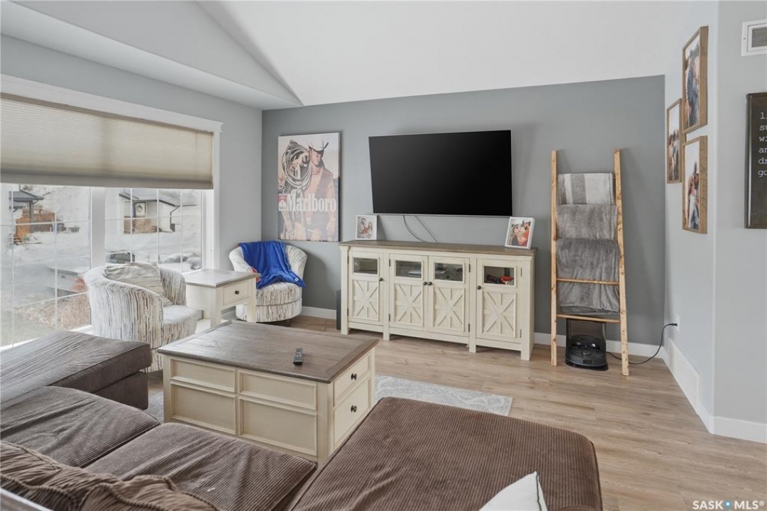 This beautiful bilevel is located in the heart of Battleford, backing onto green space and just steps from a nearby park and walking trail. Built in 2012, this quality home offers a functional and spacious layout with two bedrooms up and two down, providing generous room sizes and excellent living space throughout. The main level has been recently transformed by removing the wall between the living room and kitchen, creating a bright, fully open-concept layout. Large windows, vaulted ceilings, and brand new vinyl plank flooring enhance the modern feel. The kitchen features high-end cabinetry, a corner pantry, island, ample counter space, stainless steel appliances, and direct access to the spacious deck. The main floor also offers the convenience of two full four-piece bathrooms, including a massive primary bedroom and an additional bedroom. The fully developed basement includes two more large bedrooms, another 4 piece bathroom, and an impressive recreation room, perfect for entertaining or relaxing with family. The large backyard is fully fenced, with firepit area and tons of closed in storage under the deck. Additional highlights include underground sprinklers front and back, central air conditioning, and plenty of parking. If you're looking for a move-in ready home in a fantastic location, this one checks all the boxes. Call today to book your showing!
