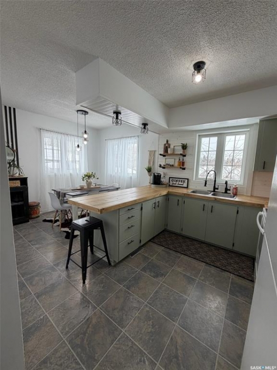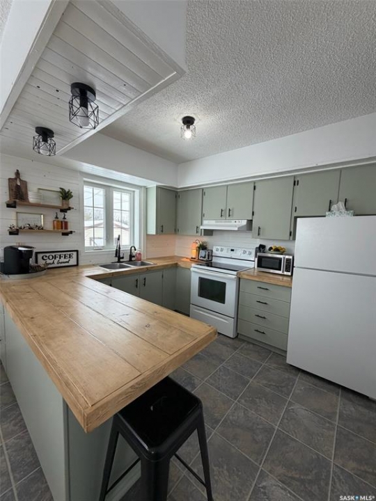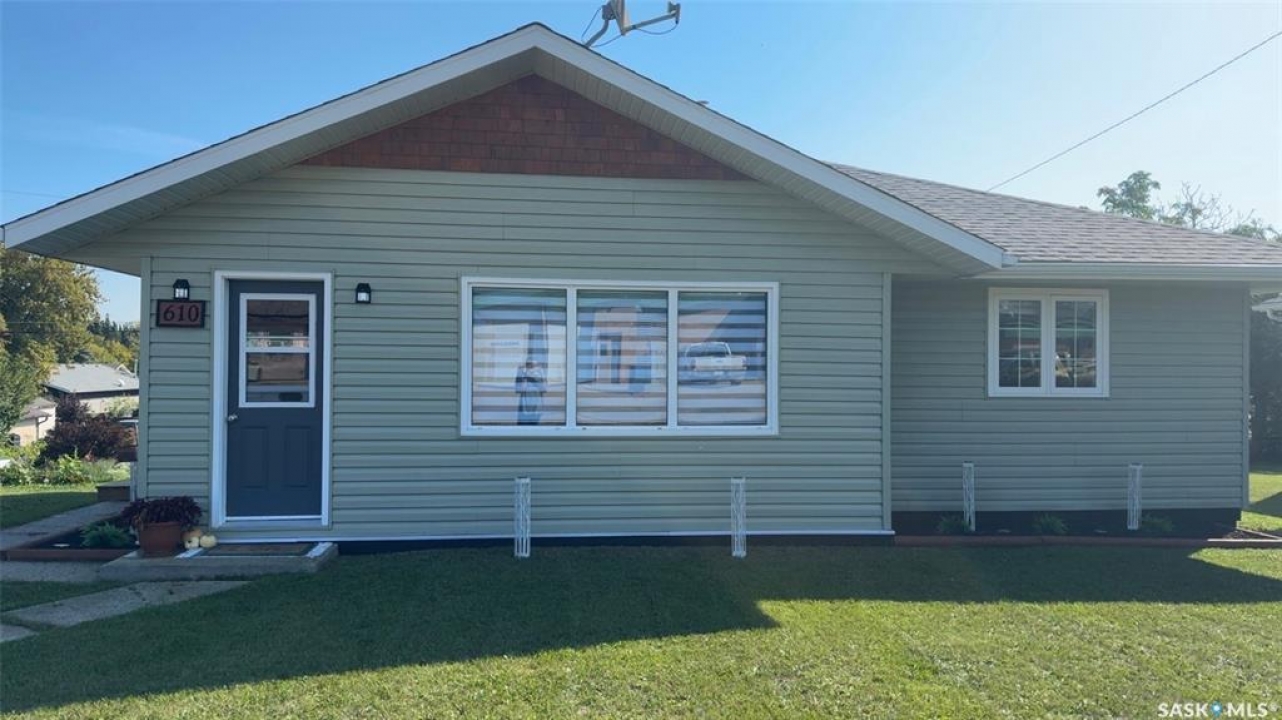 Quick possession and Move-in ready home at 710 Albert St! This well-maintained property features numerous upgrades including new windows, shingles, siding, and fresh paint. The bright main floor offers two spacious bedrooms, a large living room with built-in stand and west-facing window, and a functional kitchen with butcher block countertops plus new stove, fridge, and microwave included. A separate dining area connects nicely to the living space.The basement includes a third bedroom, recreation area, and open laundry(new washer plus older dryer include) with potential to create a closed utility room, another bedroom or additional living space. Located directly across from the hospital and medical clinic, this property offers excellent convenience. Situated on two lots, the yard provides plenty of room for gardening, recreation, or future expansion. The backyard also features a 14' x 16' wired shed/workshop and a new deck with retractable privacy blinds, perfect for enjoying the outdoors. Call today to set up your viewing you will be amazed at all the updates!