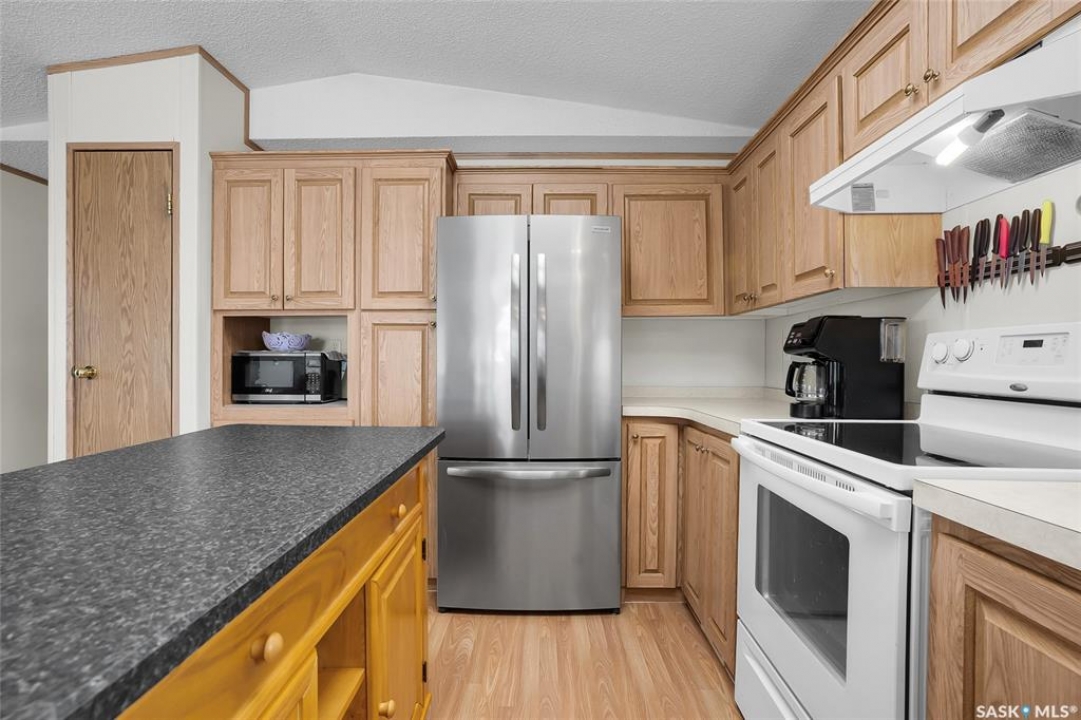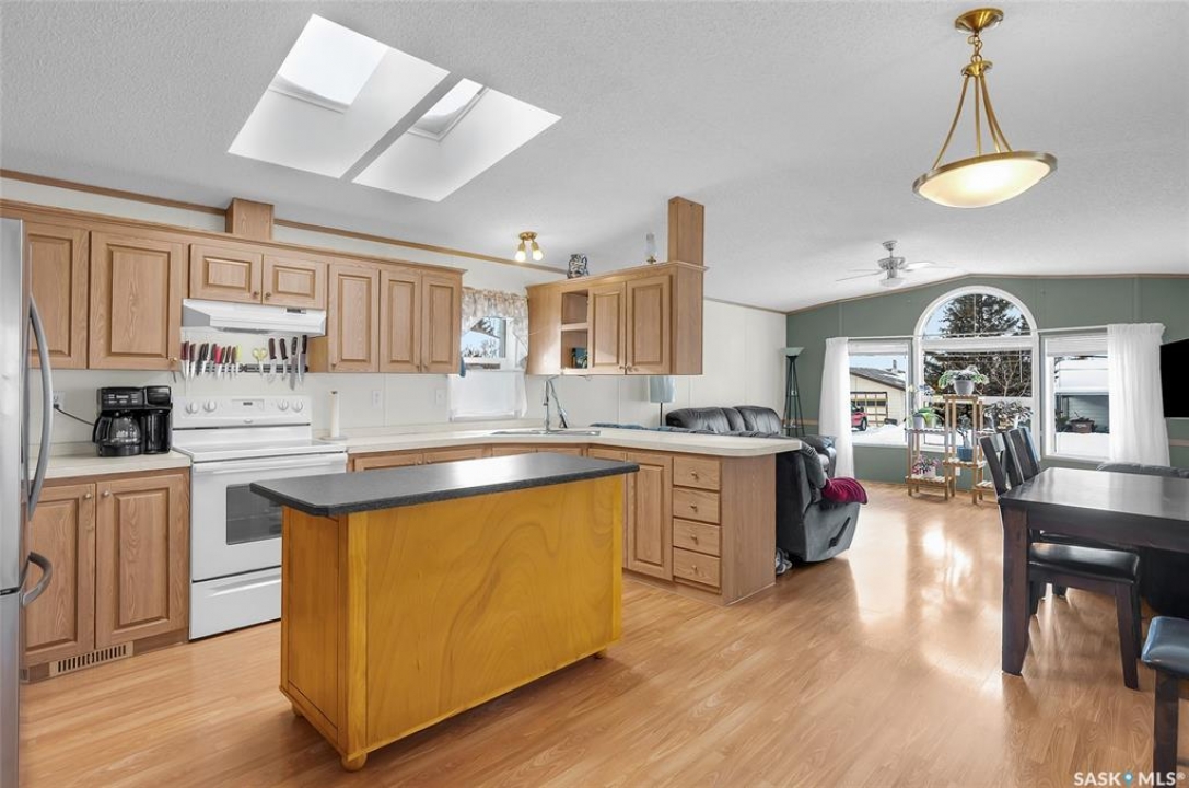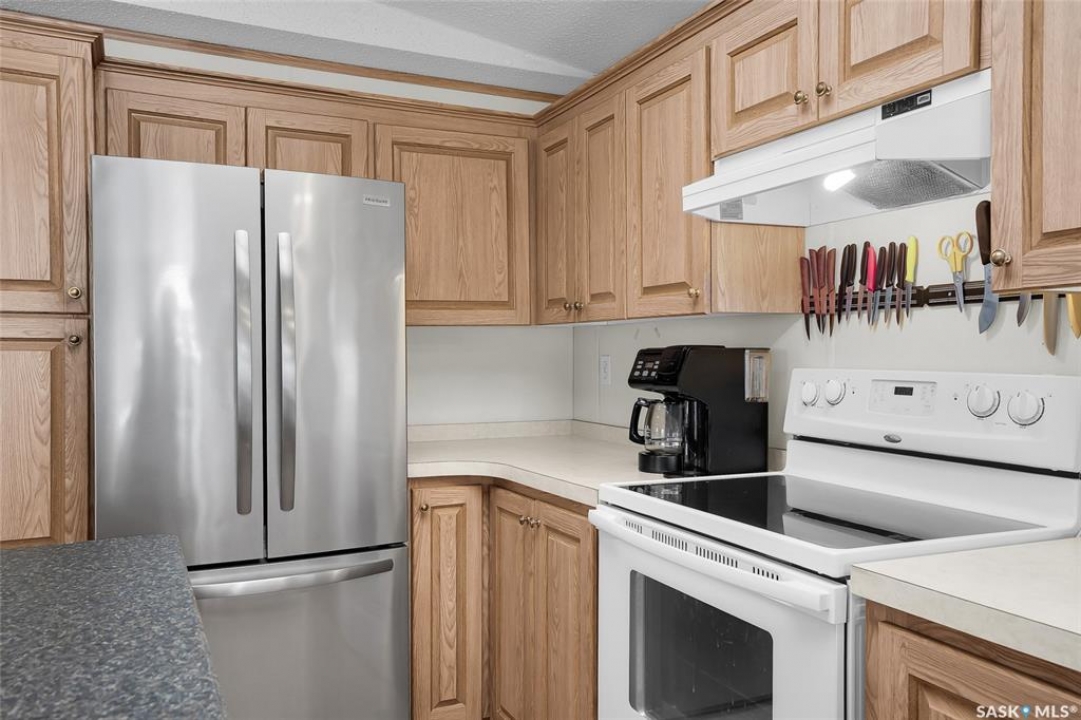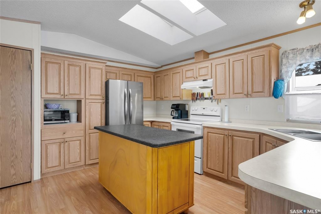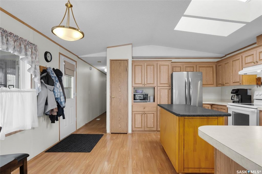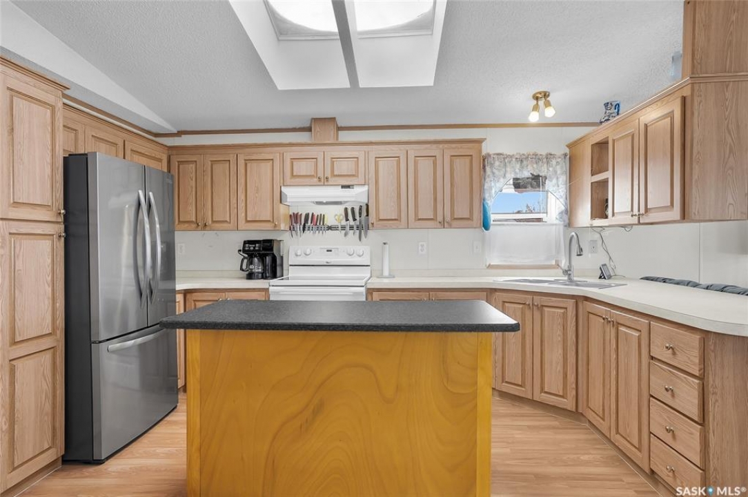 If you've been dreaming of a quieter pace of life without giving up easy access to the city, this charming home in Alvena might be exactly what you've been waiting for. Offering 1091 sq. ft. with 3 bedrooms, the home features a bright and spacious open kitchen, dining, and living area designed for everyday comfort. Large windows and two skylights fill the space with natural light, creating a warm and welcoming feel throughout the home. The kitchen provides oak finished cabinetry, generous counter space, and plenty of storage, and comes complete with fridge and stove. You'll also appreciate the abundance of cabinets and closets throughout the home, a large primary bedroom, a 4-piece bathroom with an oval tub, and a convenient laundry area with washer and dryer included. Outside, the property offers plenty of space to enjoy. The newly fenced backyard, numerous garden boxes, 20' x 12' covered deck, 11' x 8' patio, firepit area, and two storage sheds make it easy to relax, garden, or entertain. A gravel driveway provides convenient parking. Located just 40 minutes from Saskatoon and only 20 minutes from Wakaw, this is a great affordable opportunity to own your own home in a peaceful small-town setting. Be sure to check out the virtual tour!