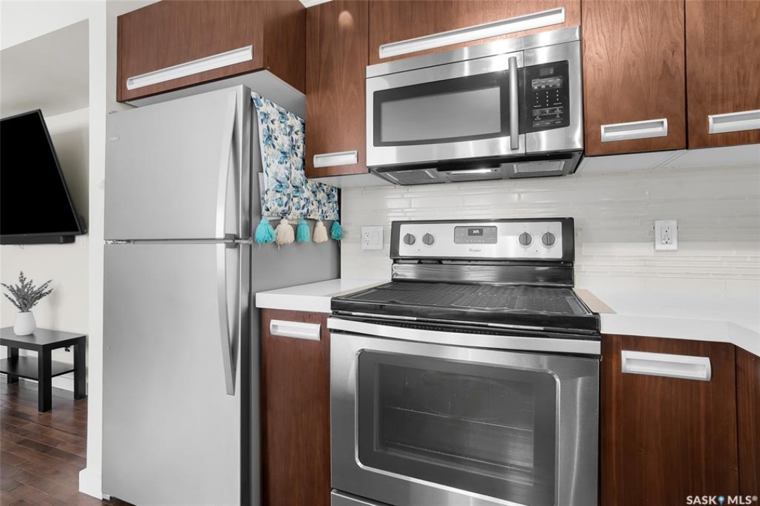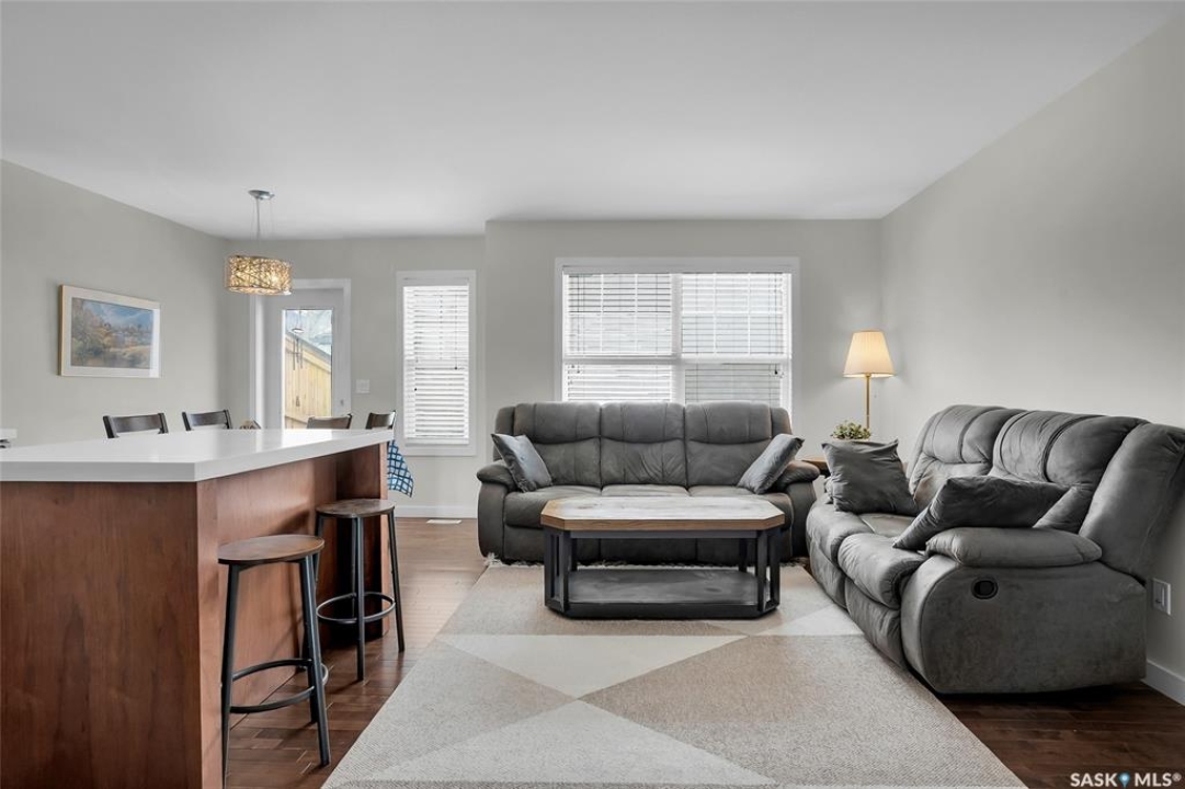 Welcome to 1303 Paton Crescent #313, located in the highly desirable Willowgrove neighborhood. This beautifully maintained 1,245 sq. ft. townhouse offers 3 bedrooms, 3 bathrooms, and the convenience of an attached garage. This gorgeous east-facing unit is located at the quiet back end of the complex, overlooking beautiful green space and open fields, offering peaceful views and added privacy. The open-concept main floor features maple hardwood flooring throughout the living area and large windows that fill the space with natural light. The modern kitchen is equipped with stainless steel appliances, quartz countertops, walnut doors and trim, and a convenient eat-up island, making it perfect for entertaining. The dining area opens through patio doors to your private concrete patio, ideal for relaxing or enjoying summer evenings. Upstairs, you'll find three spacious bedrooms, including a large primary bedroom with a walk-in closet. A full family bathroom serves all three bedrooms. The fully finished basement adds even more living space with a generous family room, full bathroom, and a dedicated laundry area. Additional recent upgrades include a humidifier and water softener, providing extra comfort and convenience for everyday living. Property is minutes away from Willowgrove School, Holy Family Catholic School, and the convenient shopping and services at University Heights Square, with easy access to parks, amenities, and everyday essentials. Don't miss this opportunity to own a fantastic townhouse in a thriving community!