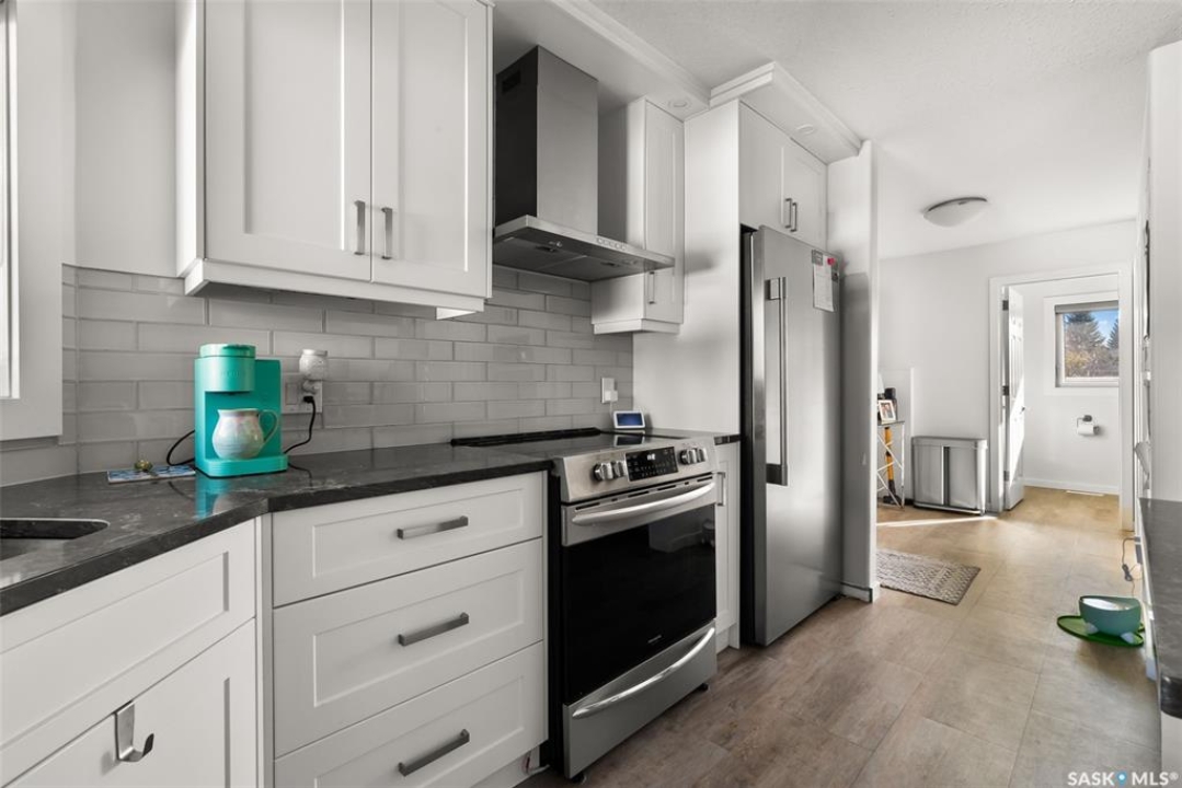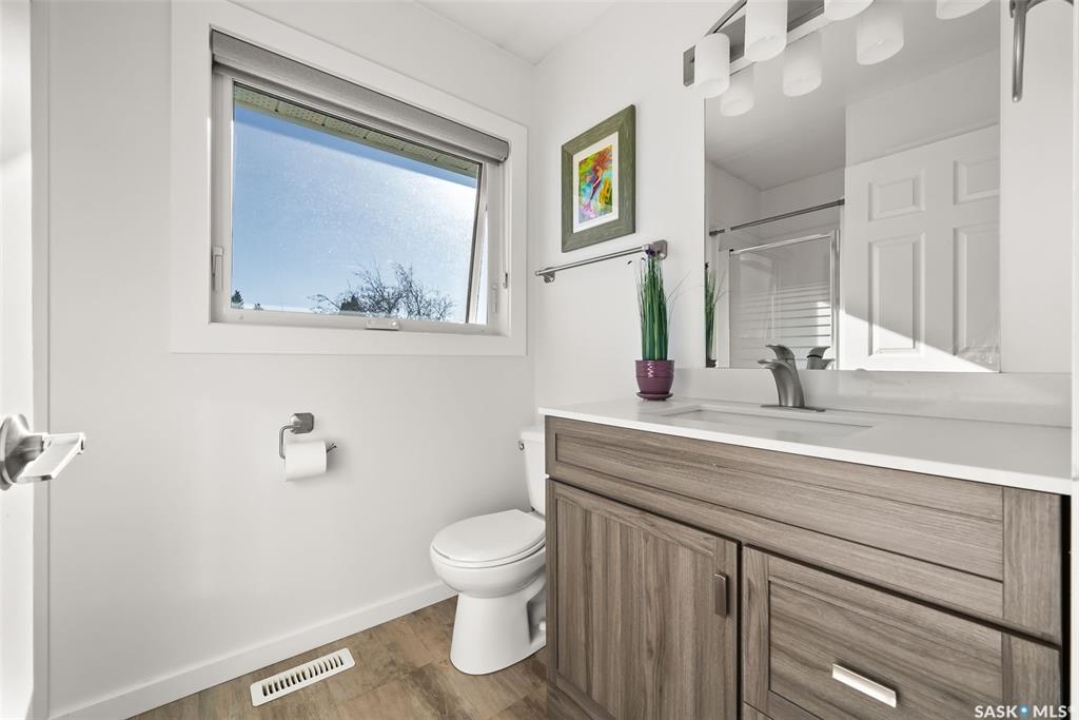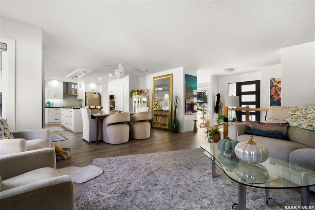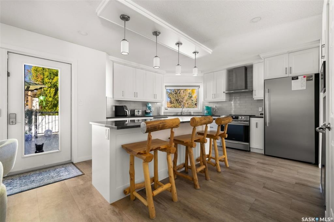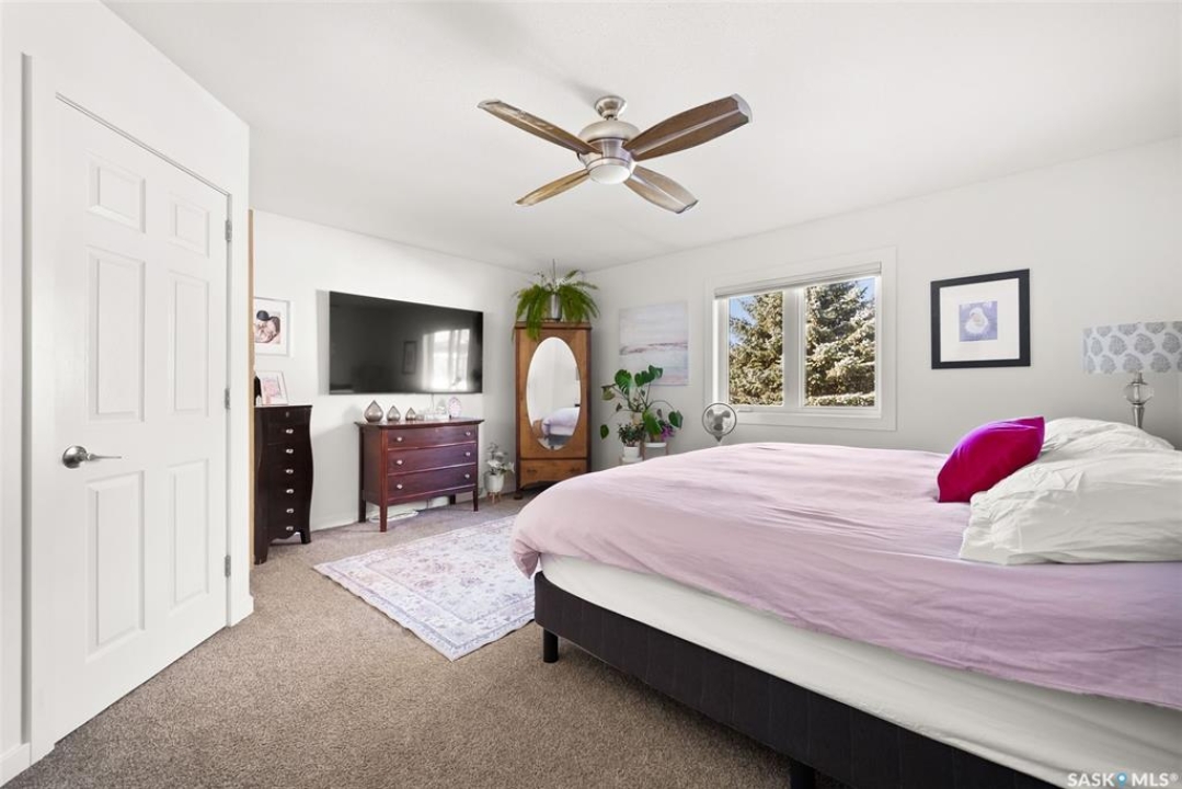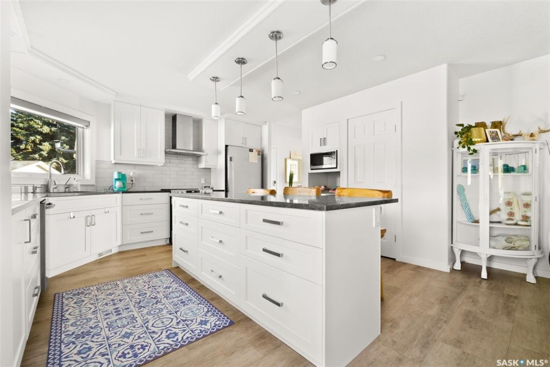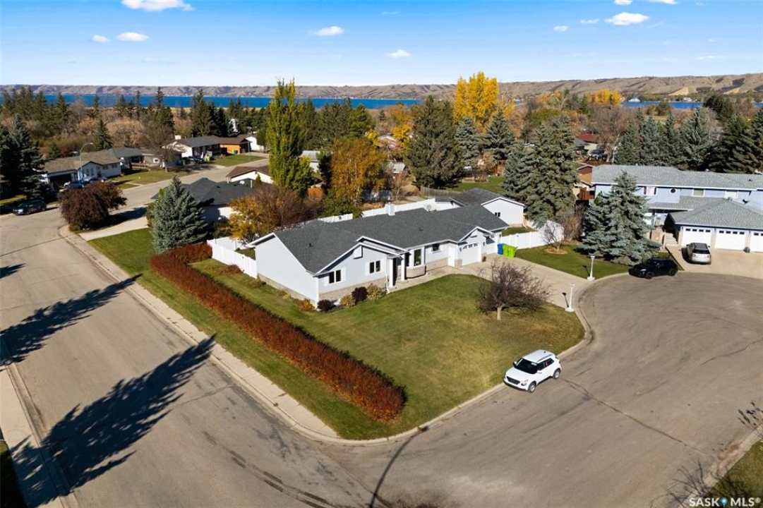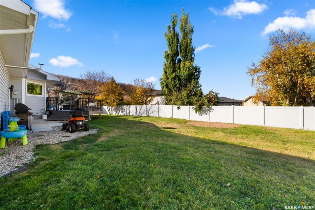 Rare quiet bay location with beautiful valley hill views! Nestled on a huge fully fenced lot, this extensively updated bungalow offers over 1,700 sq. ft. on the main level plus a fully developed basement, delivering exceptional space, comfort, and modern style in one of the valley's most desirable settings. The bright open-concept main floor features a stunning renovated kitchen with custom white cabinetry, dark quartz countertops, a large island, and new stainless-steel appliances. The inviting living room is centered around a cozy gas fireplace and flows seamlessly to a large composite deck with hot tub, the perfect place to relax or entertain while taking in the peaceful valley surroundings. A spacious family room provides even more room to gather and unwind. The main floor offers a large primary bedroom with walk-in closet, two additional bedrooms, and both a four-piece and three-piece bathroom. Downstairs, the fully finished basement expands your living space with two more bedrooms, a large family room, office area, bathroom, laundry, and abundant storage, making it ideal for families, guests, or work-from-home flexibility. A roomy mudroom connects to the heated double attached garage with oversized bays (13x28 and 13x24), while an additional double detached garage provides exceptional space for vehicles, toys, a workshop, or extra storage. Outside, enjoy the beautifully landscaped yard featuring PVC fencing, underground sprinklers, and plenty of room to play or entertain. Recent updates include windows, doors, quartz countertops, flooring, paint, lighting, appliances, water heater, water softener, fencing, and composite decking, making this home truly move-in ready. Homes with this much space, parking, and a premium quiet bay location with valley views rarely come available. Book your private showing today!