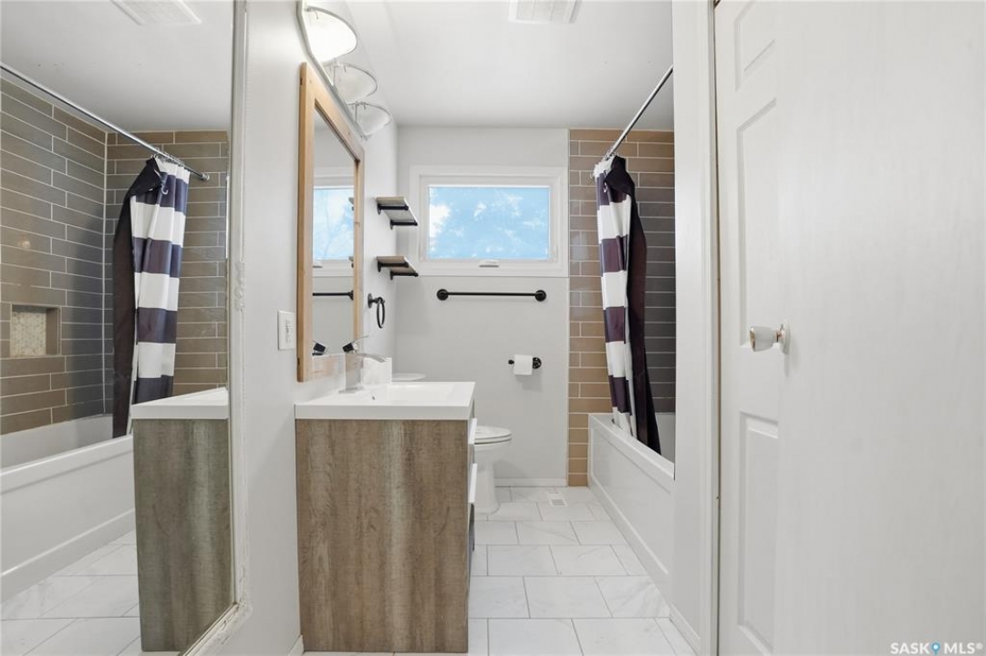 Welcome to 3530 Parkdale Road — a perfect starter home located in a mature and centrally situated east-side neighbourhood. The main floor of this 4-level split features a bright and inviting living room that flows seamlessly into the kitchen and dining space looking over the backyard. Upstairs, you'll find two large bedrooms and a renovated 4-piece bathroom. Stepping down from the main floor you will find a cozy family room highlighted by a charming wood-burning fireplace. The lower level offers additional functional space including a den, 3-piece bathroom, and a spacious laundry room with plenty of storage. One of the standout features of this home is the sunny south-facing backyard—perfect for entertaining, enjoying warm Saskatchewan summer evenings, or relaxing with a coffee on the deck. The yard is filled with mature trees and features both a deck and patio, allowing you to enjoy sunshine throughout the day. Conveniently located close to parks, schools, transit, The Centre Mall, and the Lakewood Civic Centre. This home won't last long—contact your favourite REALTOR � today to schedule a showing!