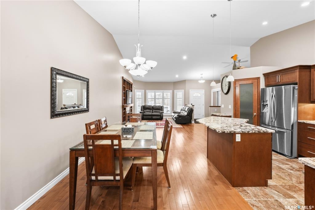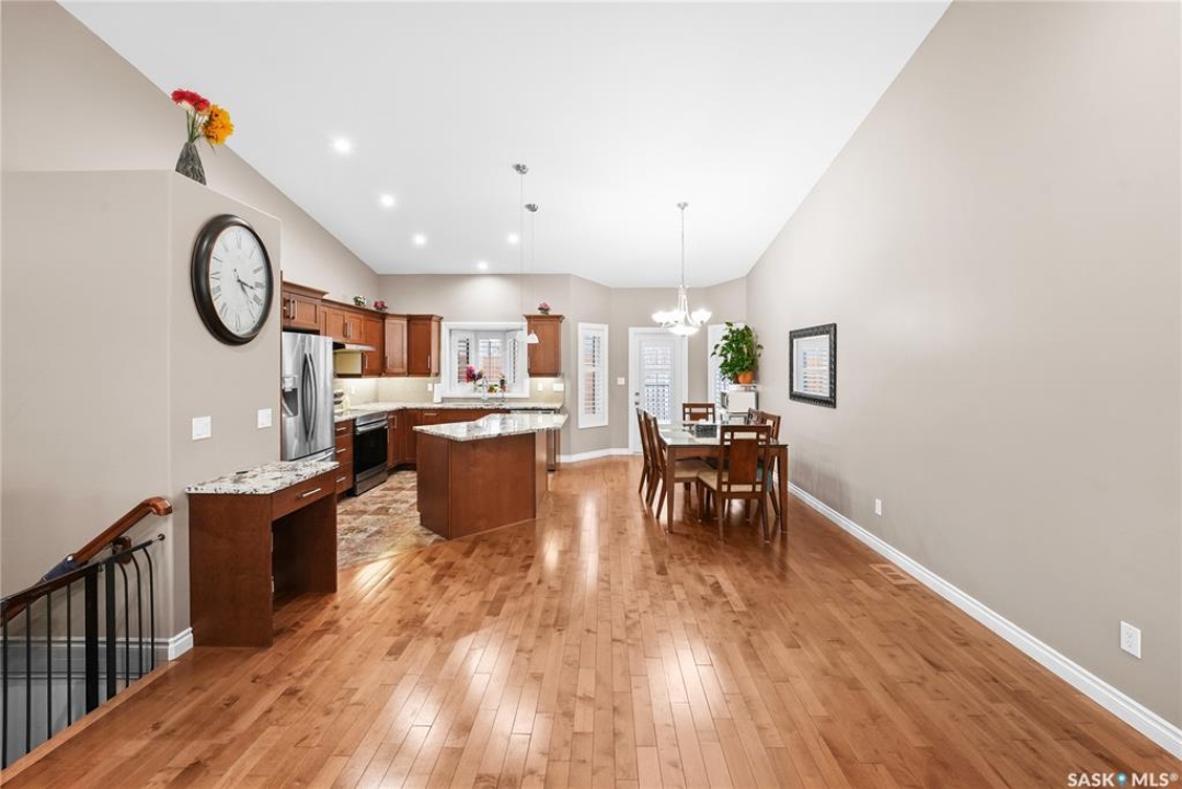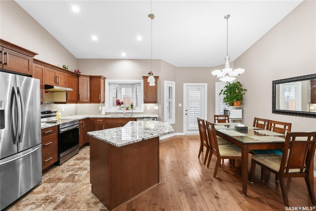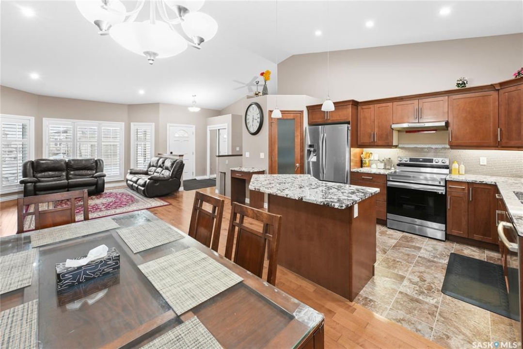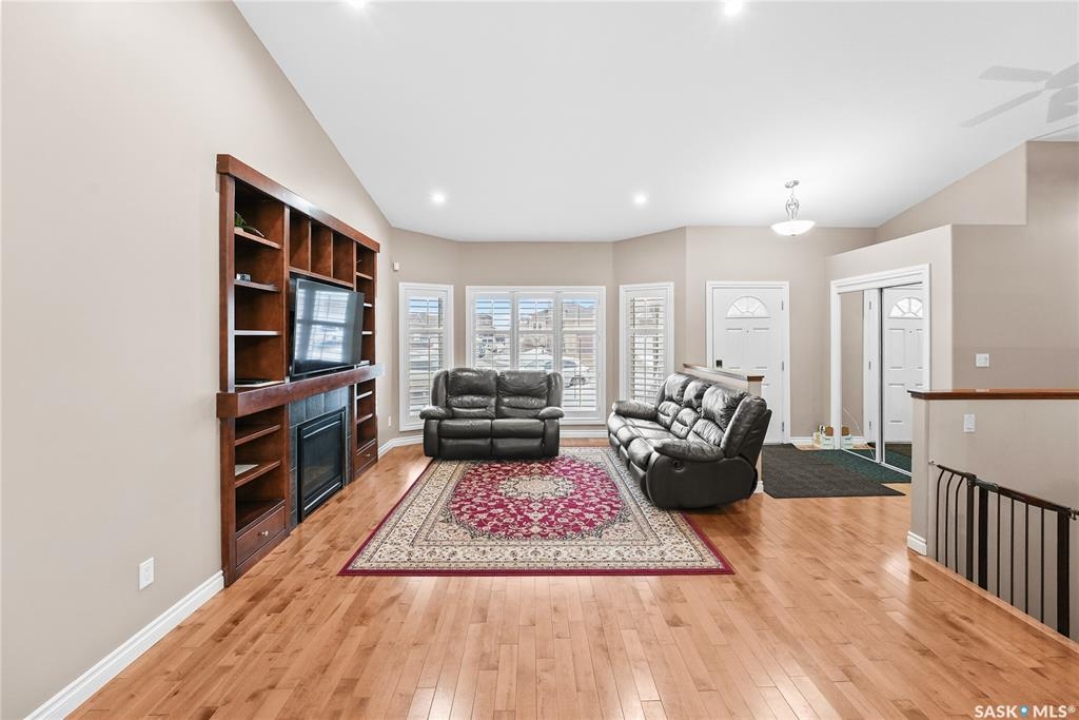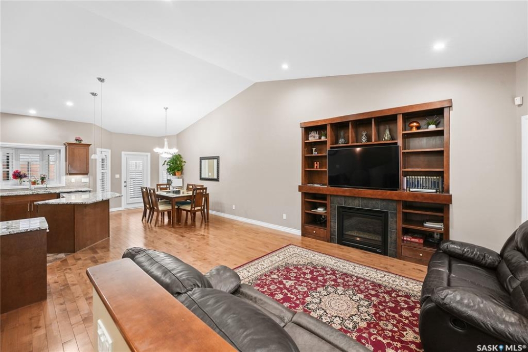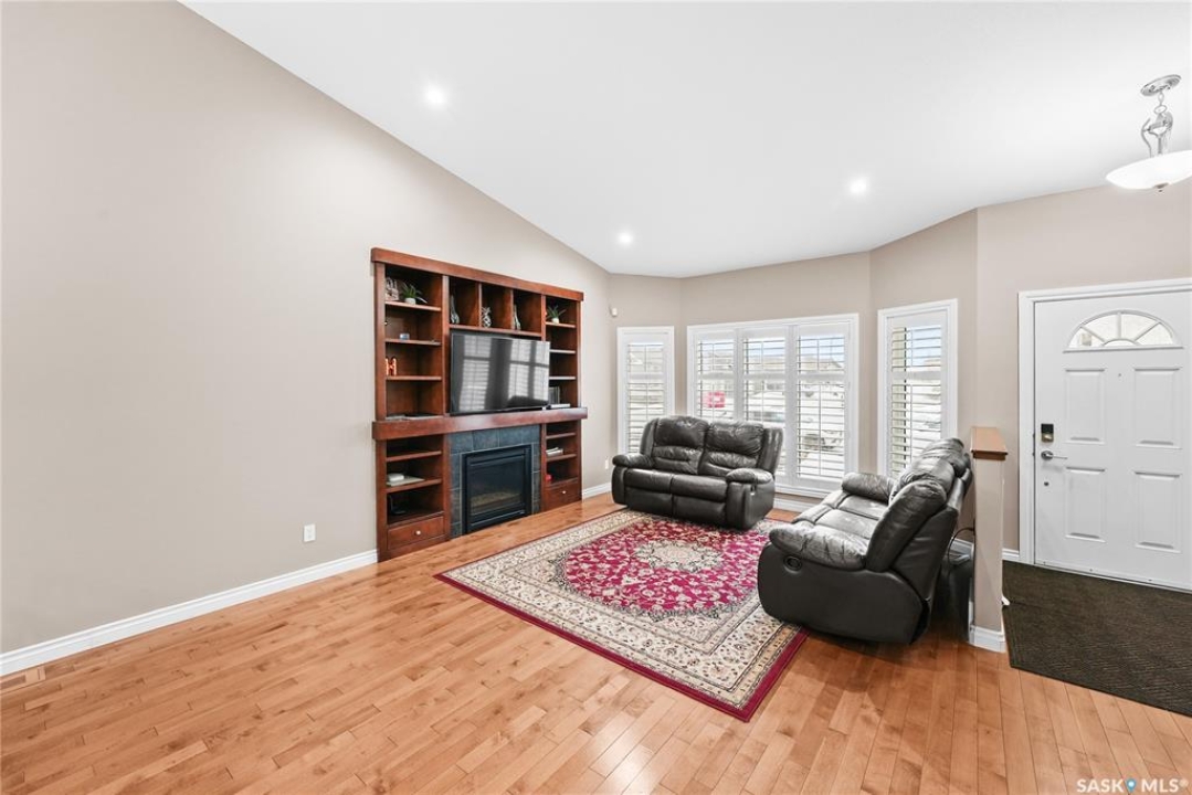 Welcome to 2439 Jameson Crescent, a beautifully maintained bungalow located in the desirable community of Windsor Park in east Regina. Built in 2009, this spacious home offers 1,459 sq. ft. on the main floor with a thoughtfully designed layout and a fully finished basement, providing exceptional living space for families or those who love to entertain. The main floor features warm hardwood flooring throughout the living room, kitchen and dining area, creating an inviting and cohesive space. The kitchen is both stylish and functional with rich maple cabinetry, granite countertops, stainless steel appliances, a large centre island, and ample storage, making it perfect for everyday living or hosting guests. The bright living room showcases a beautiful built-in entertainment unit with a gas fireplace, adding warmth and character to the space. The main level offers three bedrooms, including a spacious primary bedroom, along with a 5-piece main bathroom featuring dual sinks and a relaxing corner soaker tub plus a separate shower. Convenient main floor laundry adds to the home's practicality. The fully finished basement expands your living area with a massive recreation room, two additional bedrooms, and another 4-piece bathroom, providing plenty of room for family, guests, or a home gym and entertainment space. Step outside to enjoy the private fenced backyard complete with a deck, ideal for summer BBQs and outdoor relaxation. The property also features a double attached garage and double concrete driveway, offering ample parking. Additional value includes shingles replaced in May 2021, providing peace of mind for the next owner. Located close to parks, schools, shopping, and east-end amenities, this home combines space, comfort, and an excellent location in one of Regina's most sought-after neighbourhoods.