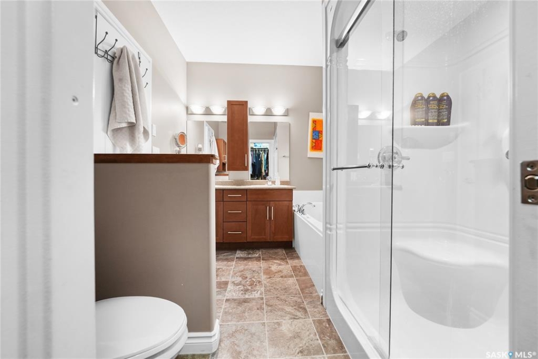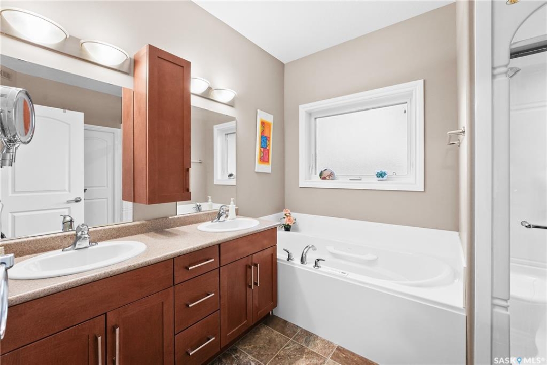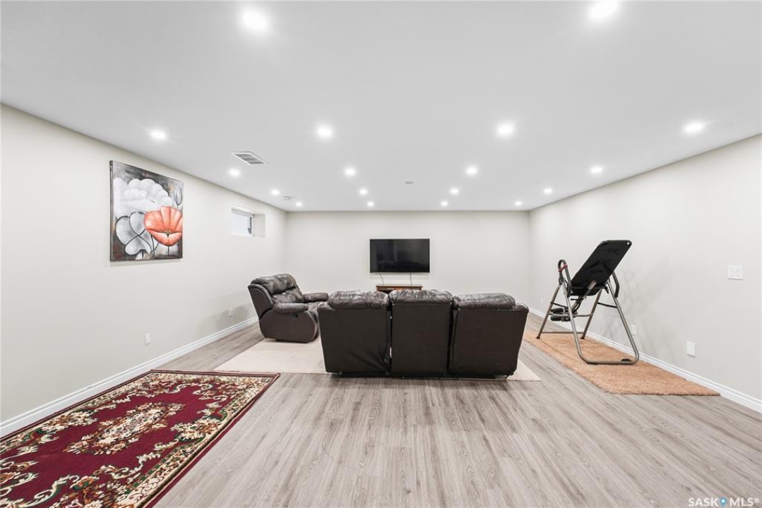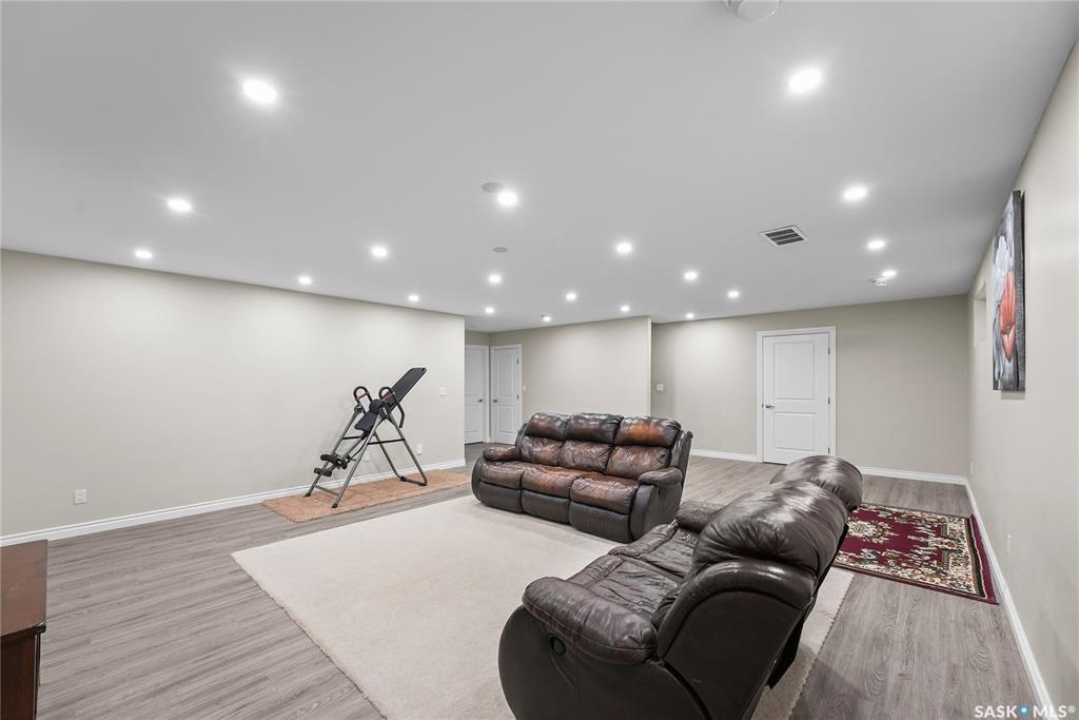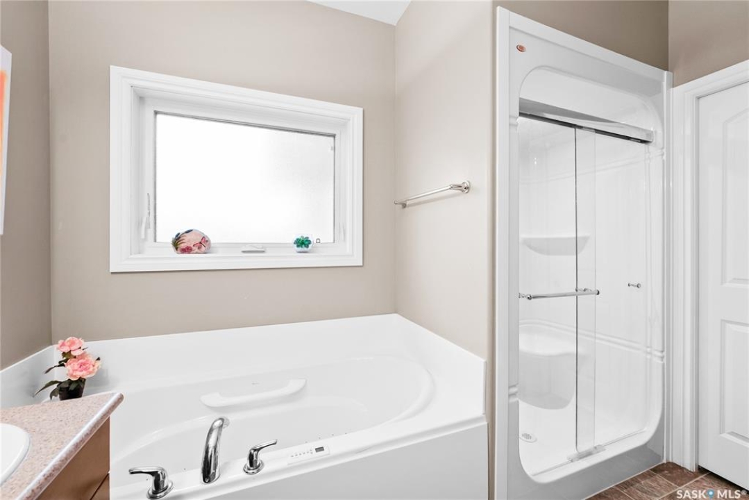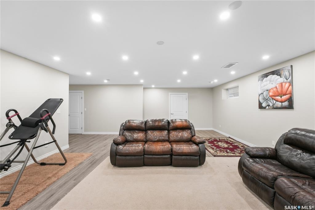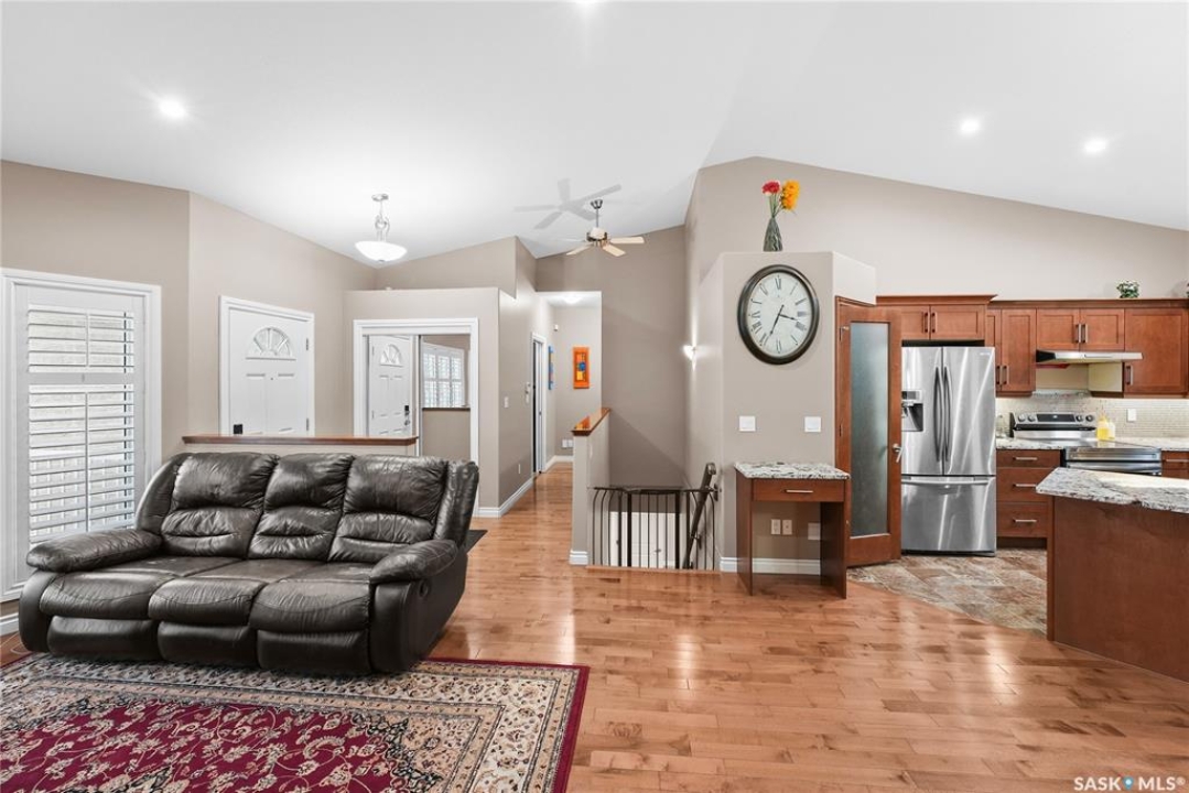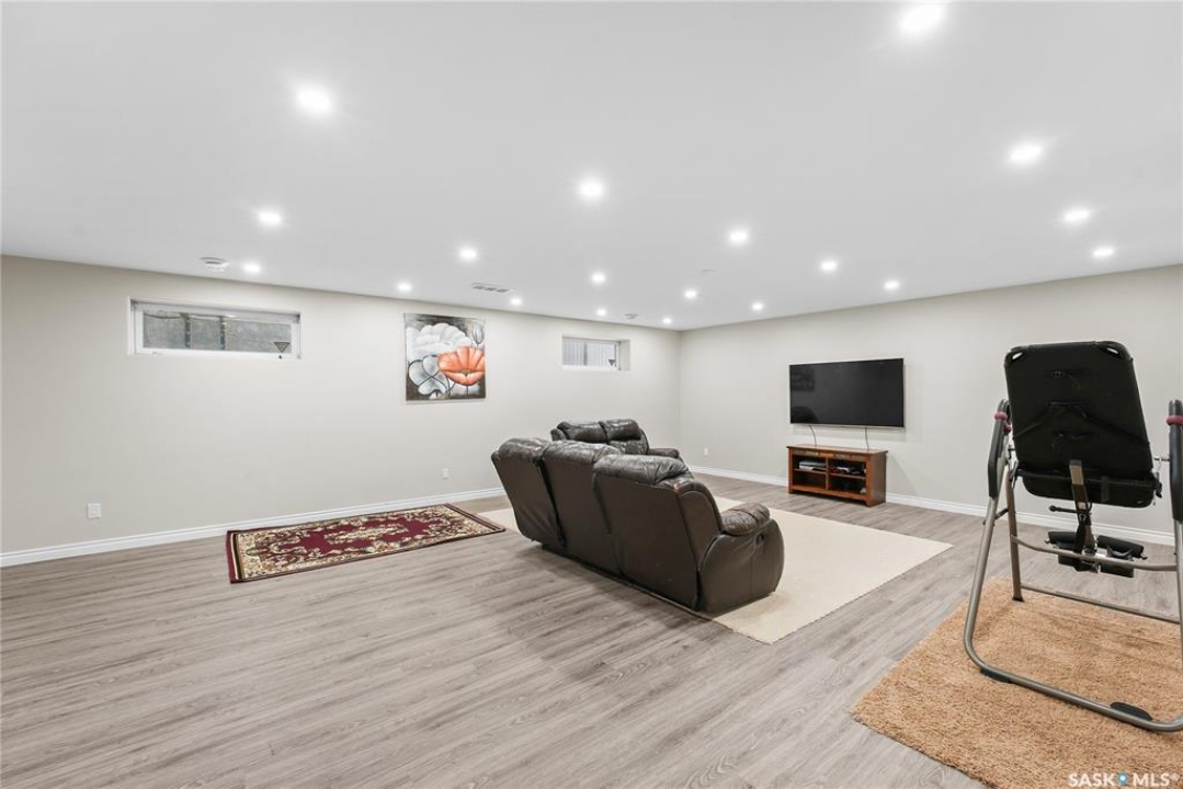 Welcome to 2439 Jameson Crescent, a beautifully maintained bungalow located in the desirable community of Windsor Park in east Regina. Built in 2009, this spacious home offers 1,459 sq. ft. on the main floor with a thoughtfully designed layout and a fully finished basement, providing exceptional living space for families or those who love to entertain. The main floor features warm hardwood flooring throughout the living room, kitchen and dining area, creating an inviting and cohesive space. The kitchen is both stylish and functional with rich maple cabinetry, granite countertops, stainless steel appliances, a large centre island, and ample storage, making it perfect for everyday living or hosting guests. The bright living room showcases a beautiful built-in entertainment unit with a gas fireplace, adding warmth and character to the space. The main level offers three bedrooms, including a spacious primary bedroom, along with a 5-piece main bathroom featuring dual sinks and a relaxing corner soaker tub plus a separate shower. Convenient main floor laundry adds to the home's practicality. The fully finished basement expands your living area with a massive recreation room, two additional bedrooms, and another 4-piece bathroom, providing plenty of room for family, guests, or a home gym and entertainment space. Step outside to enjoy the private fenced backyard complete with a deck, ideal for summer BBQs and outdoor relaxation. The property also features a double attached garage and double concrete driveway, offering ample parking. Additional value includes shingles replaced in May 2021, providing peace of mind for the next owner. Located close to parks, schools, shopping, and east-end amenities, this home combines space, comfort, and an excellent location in one of Regina's most sought-after neighbourhoods.