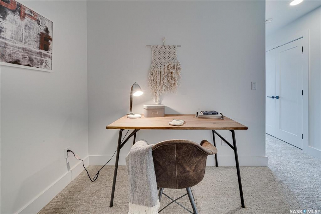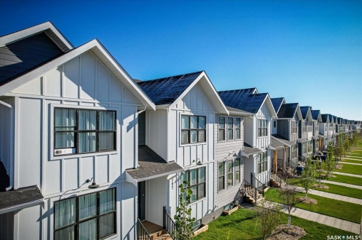 Welcome to Hudson Row 3, Saskatoon's newest townhome project located in The Meadows at Rosewood. This Scandinavian inspired streetscape will create an unmatched timeless curb appeal that is sure to catch people's eye. The 1461 SF open concept interior includes all the premium designer finishes people have come to expect with Arbutus Properties. The main floor includes an efficient layout with large front and back windows that flood the space with natural light and is covered by premium flooring. The centrally located chef's kitchen includes trendy flat panel cabinetry highlighted with matt black hardware, quartz counters, stylish backsplash and a full stainless appliance package. The upper floor includes 3 generously sized bedrooms, 4pc bathroom, a convenient flex space that was designed to cater to a variety of uses and an easy to access laundry closet. Also on the upper floor is the master bedroom that includes a walk-in closet and a private ensuite. The exterior of the home is covered in durable James Hardie composite siding and comes inclusive with private fenced landscaped yards, a rear deck & a double detached garage at the rear. Located near multiple parks, commercial amenities, Costco and within a block from 2 new community schools makes this a must see! "Disclaimer, all cabinets in these units will be flat white , floor tiles will be grey, backsplash is white, AI generated kitchen showing example with Island, but cabinets will be flat panel, picture in listing showing colour patterns! Contact Agent for more information. Garages can not be done until June when frost is all out. Pictures are from our last showhome.