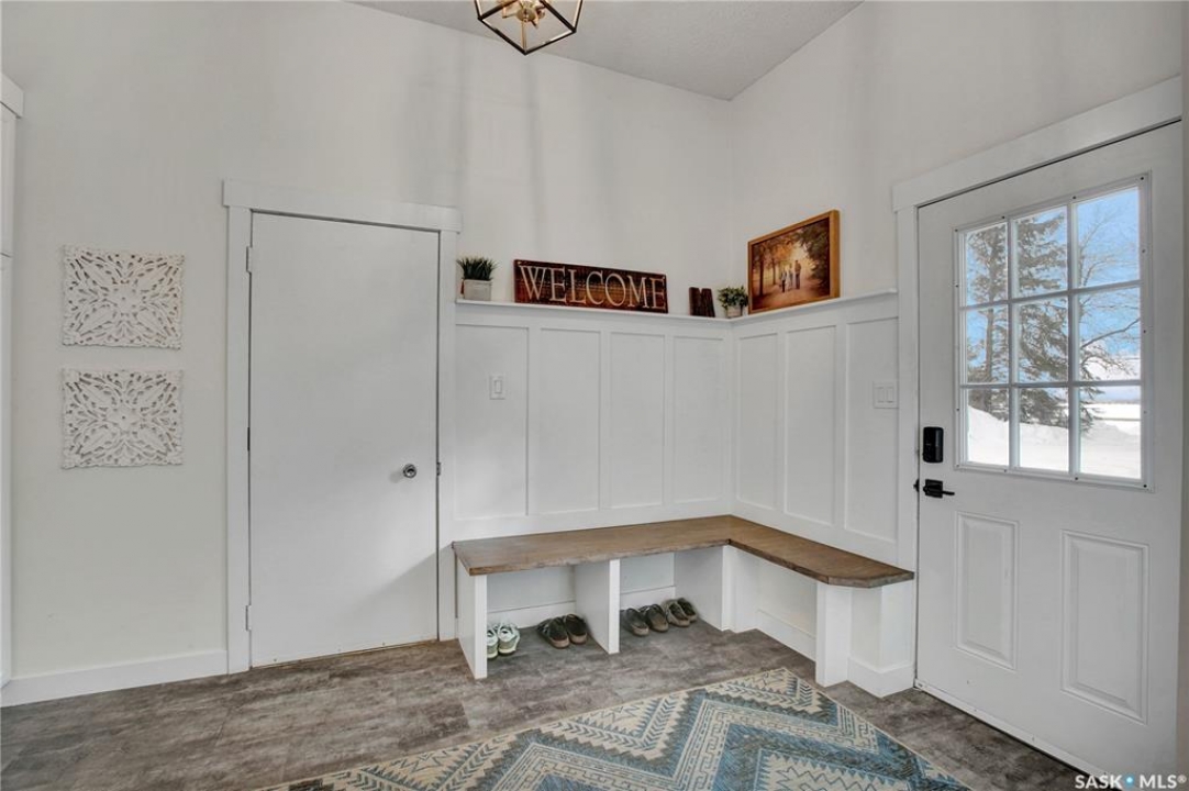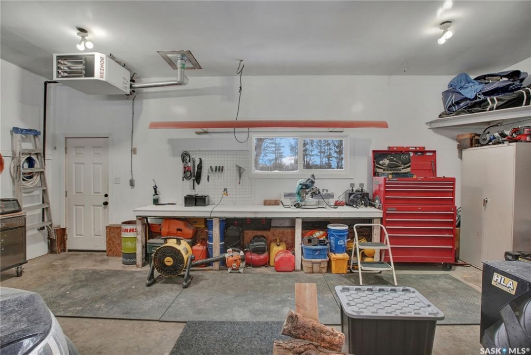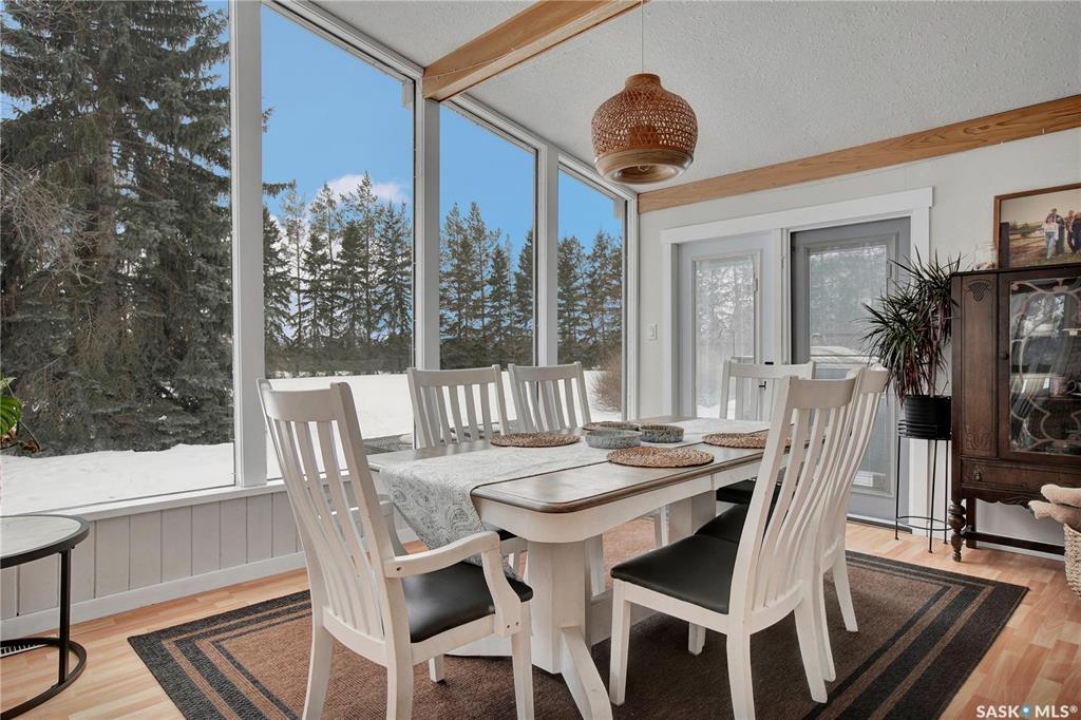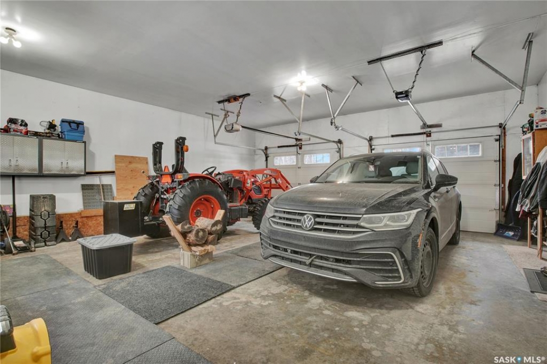 It's not often you find an acreage with all 4 of the must have “wants”: an excellent location, a completely renovated home, and services like natural gas, city water and good internet service. But this property checks all four boxes. Located just 1.5 km east of Osler toward the river, this 26.95-acre property offers a peaceful escape from the hustle and bustle. As you arrive, a scenic, tree-lined driveway welcomes you in, while the mature shelterbelt surrounding the home provides both privacy and protection from prairie winds. Inside, you're greeted by a spacious mudroom with built-in cabinetry and direct access to the oversized 25 x 27 heated garage, perfect for keeping everyday life organized. In 2021, the main floor was completely renovated, featuring a brand-new custom kitchen with stone countertops, plenty of storage, and generous island seating, making it an ideal space for gathering with family and friends. One of the true highlights of the home is the front sunroom, where you can soak in the warmth of the southern exposure all winter long. In the evening, step outside to the hot tub and enjoy the northern lights overhead. With three bedrooms on the main floor and a fourth in the basement, there's plenty of space for a growing family or visiting guests. There is vast pasture land surrounding the property great for horses, leaving the yard site private, manageable, and beautifully contained. Recent updates include the furnace, water heater, tin roof, windows, flooring, and carpets, making this home truly move-in ready.
