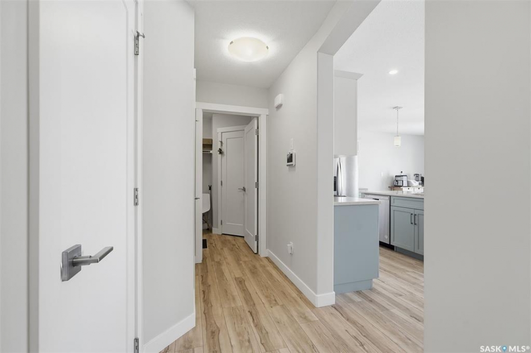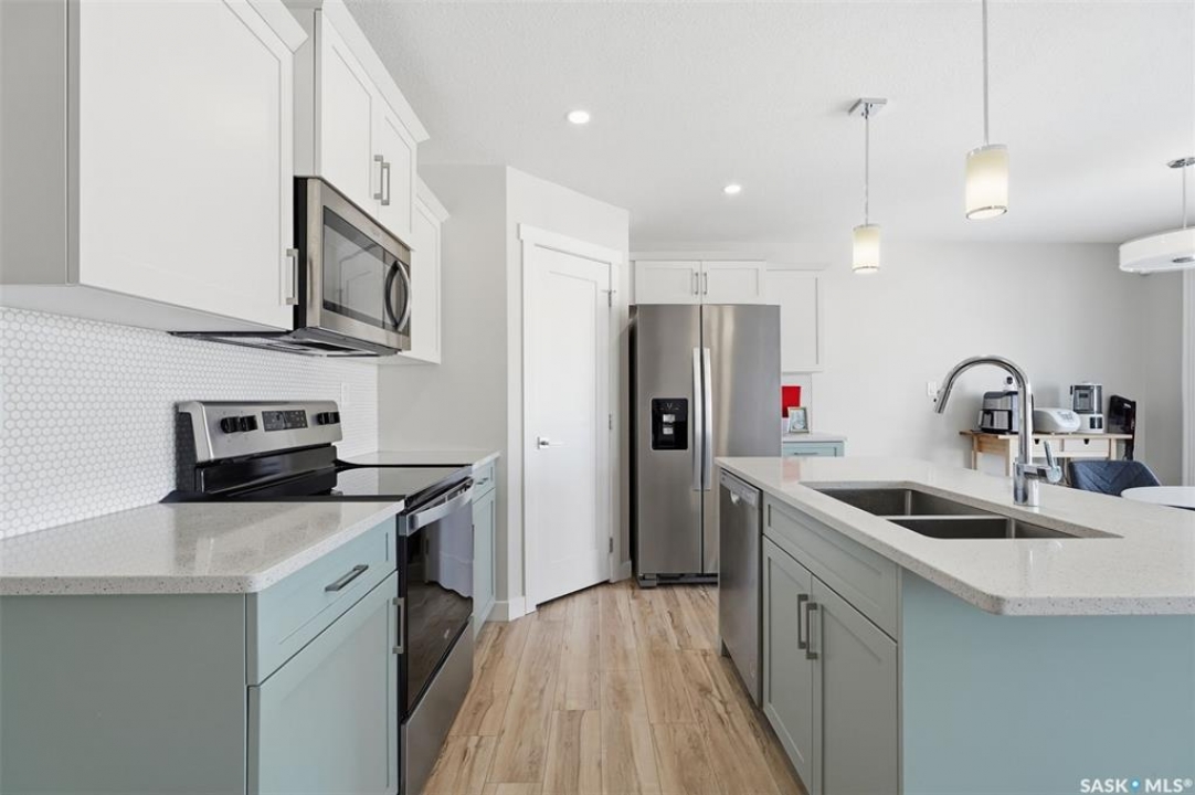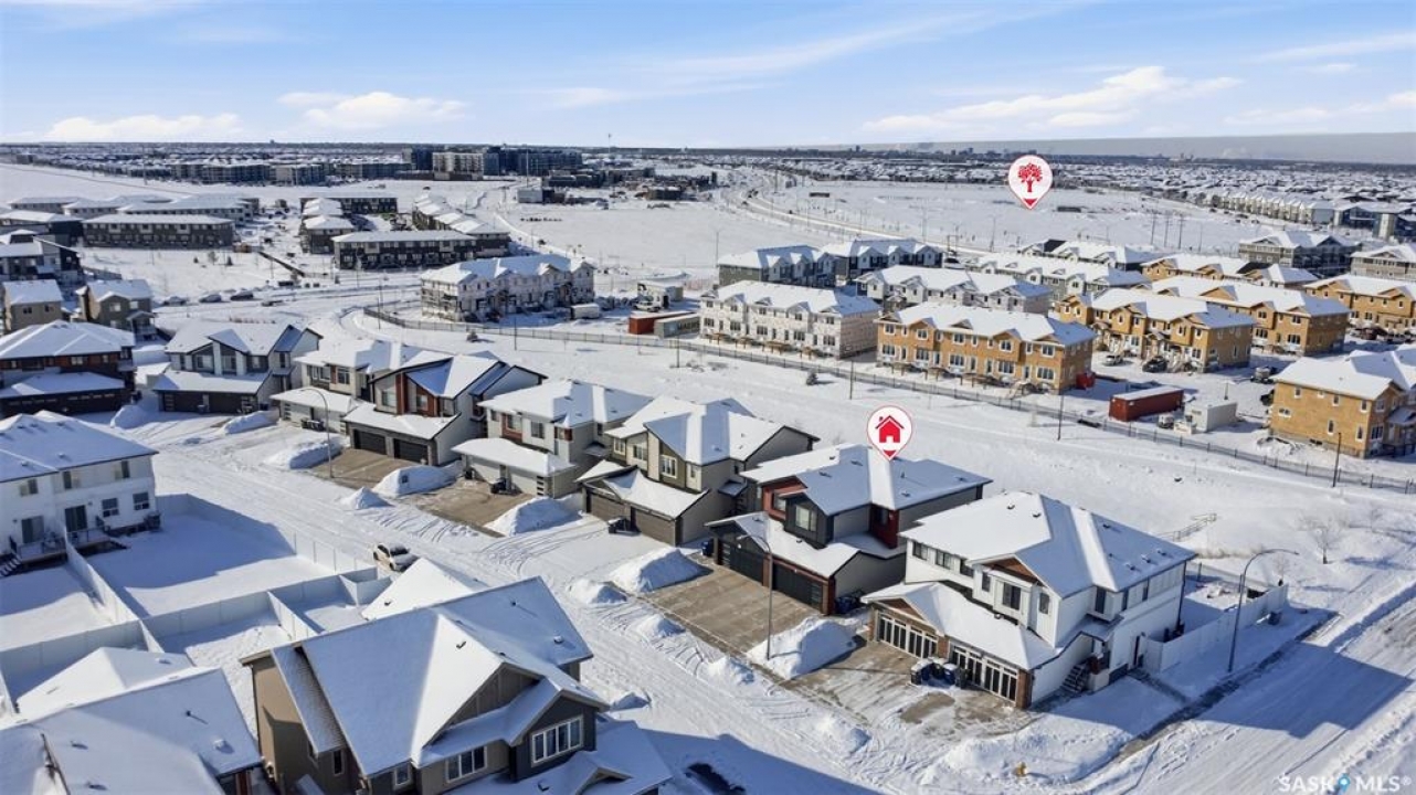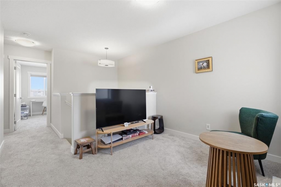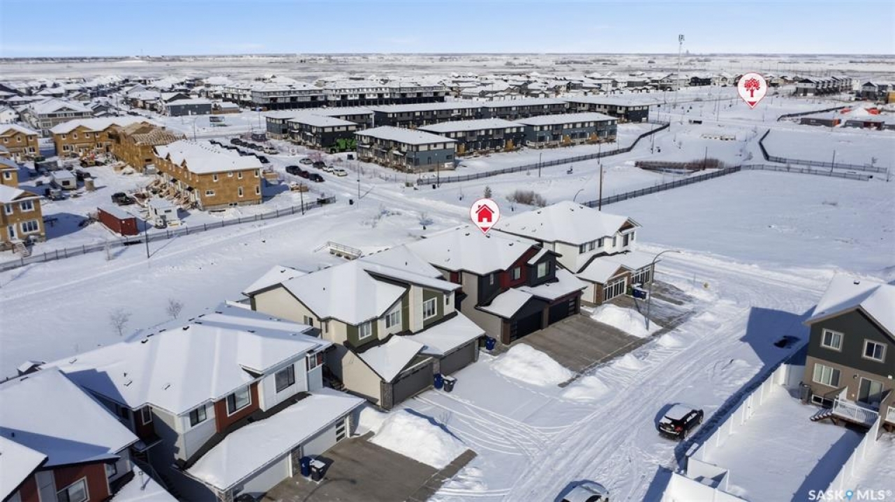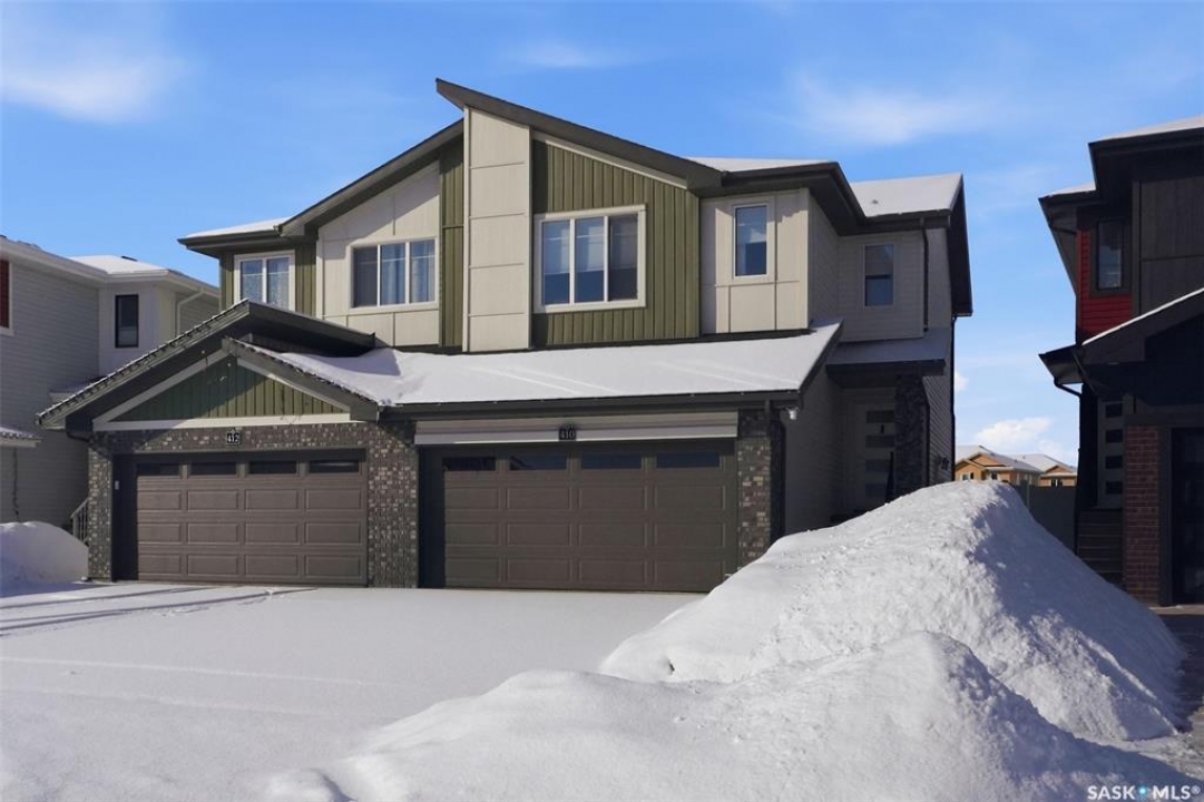 Welcome to 410 Myles Heidt Manor, a stunning semi-detached home in the sought-after Aspen Ridge community, beautifully backing onto the peaceful green space and walking paths of Kisiskaciwan Park. This impressive LAWRENCE model offers 1,484 sq. ft. of thoughtfully designed living space and shows in like-new condition, making it a true functional masterpiece in this price range. The bright and inviting main floor features oversized southwest-facing windows overlooking the yard, filling the home with natural light, along with a spacious living room ideal for entertaining, a well-planned kitchen with quartz countertops, stainless steel appliances with an exterior-vented range hood, and a convenient walk-through pantry. A 2-piece powder room completes the main level. Upstairs you will find three spacious bedrooms, including a large primary suite with a walk-in closet and private ensuite, two full bathrooms, a cozy bonus/flex room, and a second-floor laundry room with extra storage. The home also features a separate entrance with suite potential, adding excellent future flexibility. Outside, enjoy a fully landscaped front, back, and side yard, a 10×10 rear deck, double concrete driveway, and a front double attached garage, all with no condo fees. The location is exceptional, offering quick access to the north industrial area via the Chief Mistawasis Bridge and close proximity to many amenities including restaurants, grocery and convenience stores, fitness facilities, the SaskTel Soccer Centre, schools, the Meewasin North-East Swale, the Forestry Farm & Zoo, scenic river bike trails, the Sutherland Dog Park, and the University of Saskatchewan. With its outstanding design, premium features, and unbeatable setting, this home truly stands out