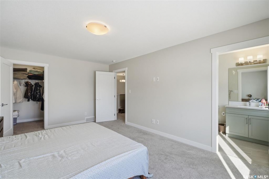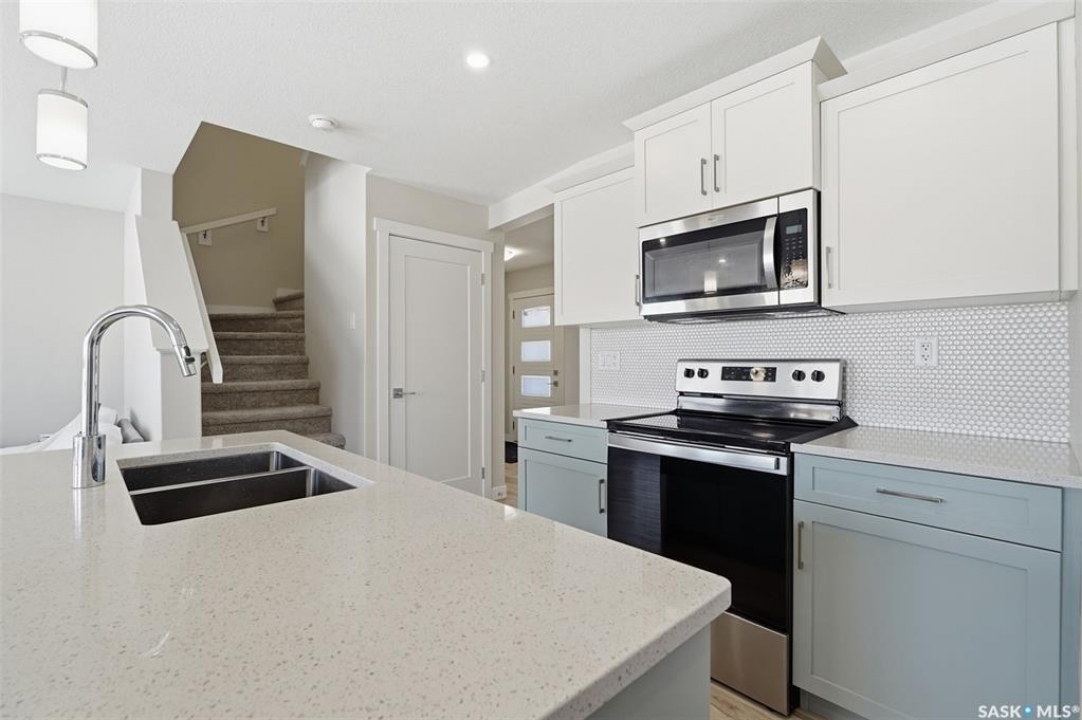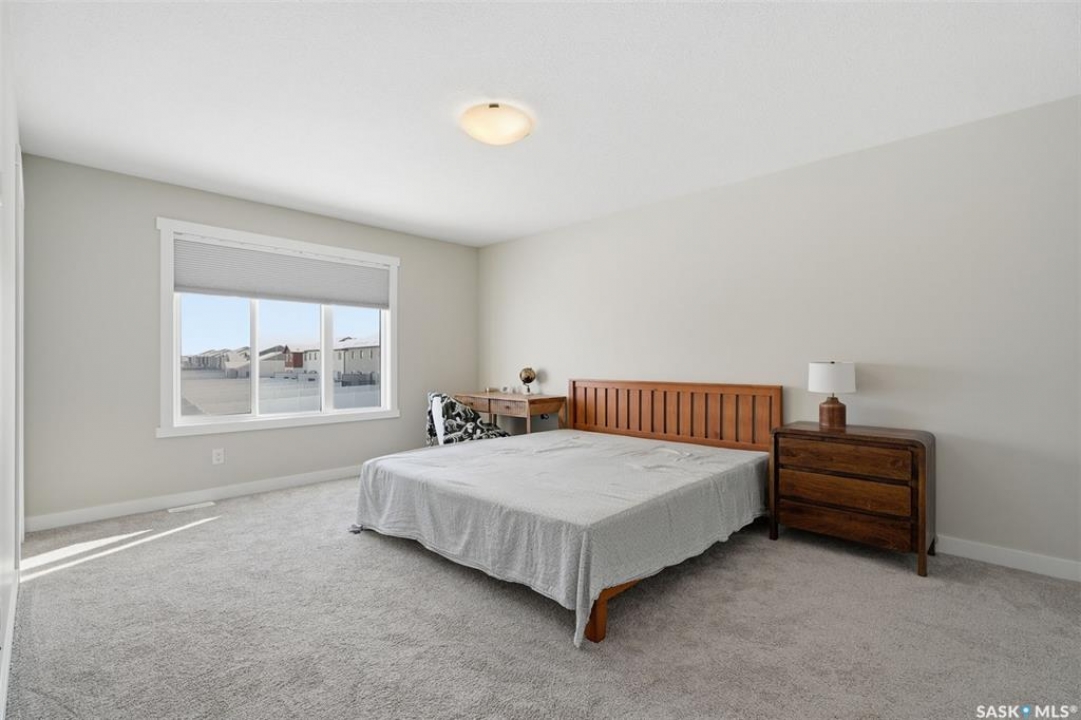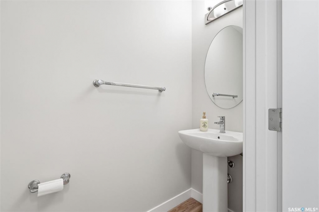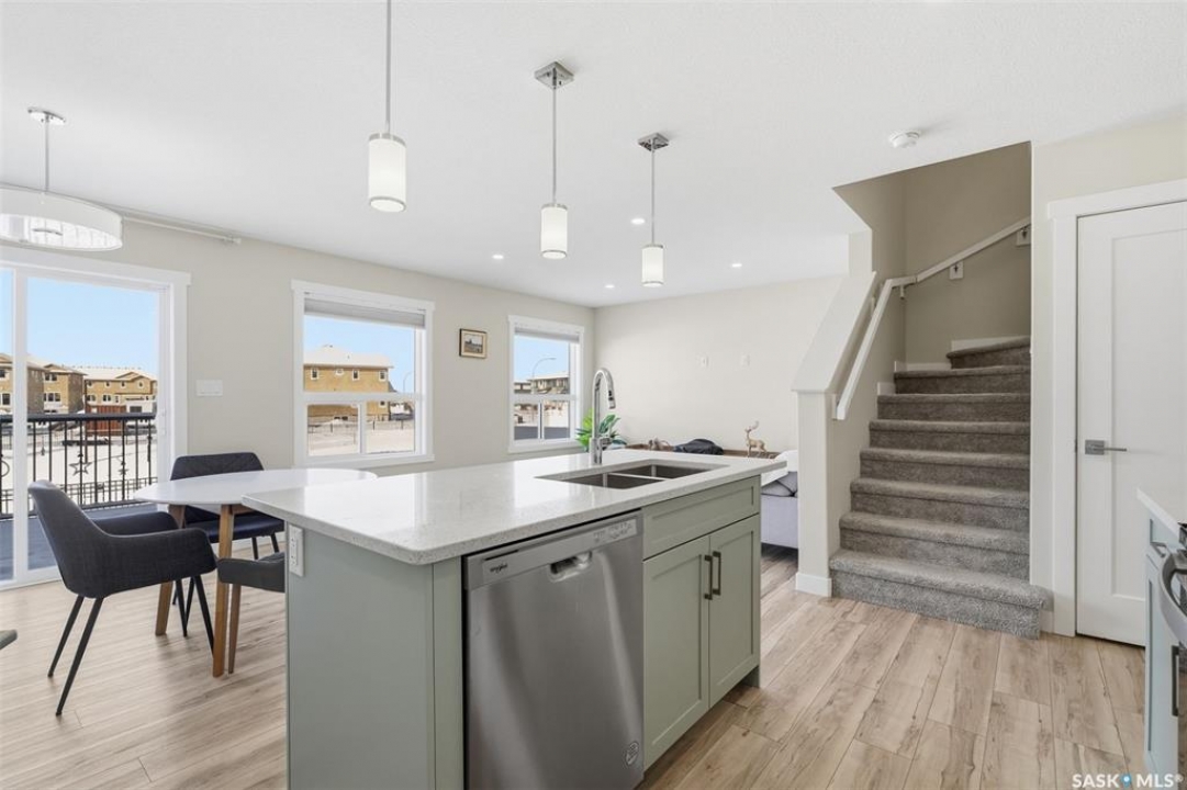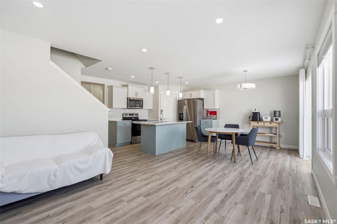 Welcome to 410 Myles Heidt Manor, a stunning semi-detached home in the sought-after Aspen Ridge community, beautifully backing onto the peaceful green space and walking paths of Kisiskaciwan Park. This impressive LAWRENCE model offers 1,484 sq. ft. of thoughtfully designed living space and shows in like-new condition, making it a true functional masterpiece in this price range. The bright and inviting main floor features oversized southwest-facing windows overlooking the yard, filling the home with natural light, along with a spacious living room ideal for entertaining, a well-planned kitchen with quartz countertops, stainless steel appliances with an exterior-vented range hood, and a convenient walk-through pantry. A 2-piece powder room completes the main level. Upstairs you will find three spacious bedrooms, including a large primary suite with a walk-in closet and private ensuite, two full bathrooms, a cozy bonus/flex room, and a second-floor laundry room with extra storage. The home also features a separate entrance with suite potential, adding excellent future flexibility. Outside, enjoy a fully landscaped front, back, and side yard, a 10×10 rear deck, double concrete driveway, and a front double attached garage, all with no condo fees. The location is exceptional, offering quick access to the north industrial area via the Chief Mistawasis Bridge and close proximity to many amenities including restaurants, grocery and convenience stores, fitness facilities, the SaskTel Soccer Centre, schools, the Meewasin North-East Swale, the Forestry Farm & Zoo, scenic river bike trails, the Sutherland Dog Park, and the University of Saskatchewan. With its outstanding design, premium features, and unbeatable setting, this home truly stands out