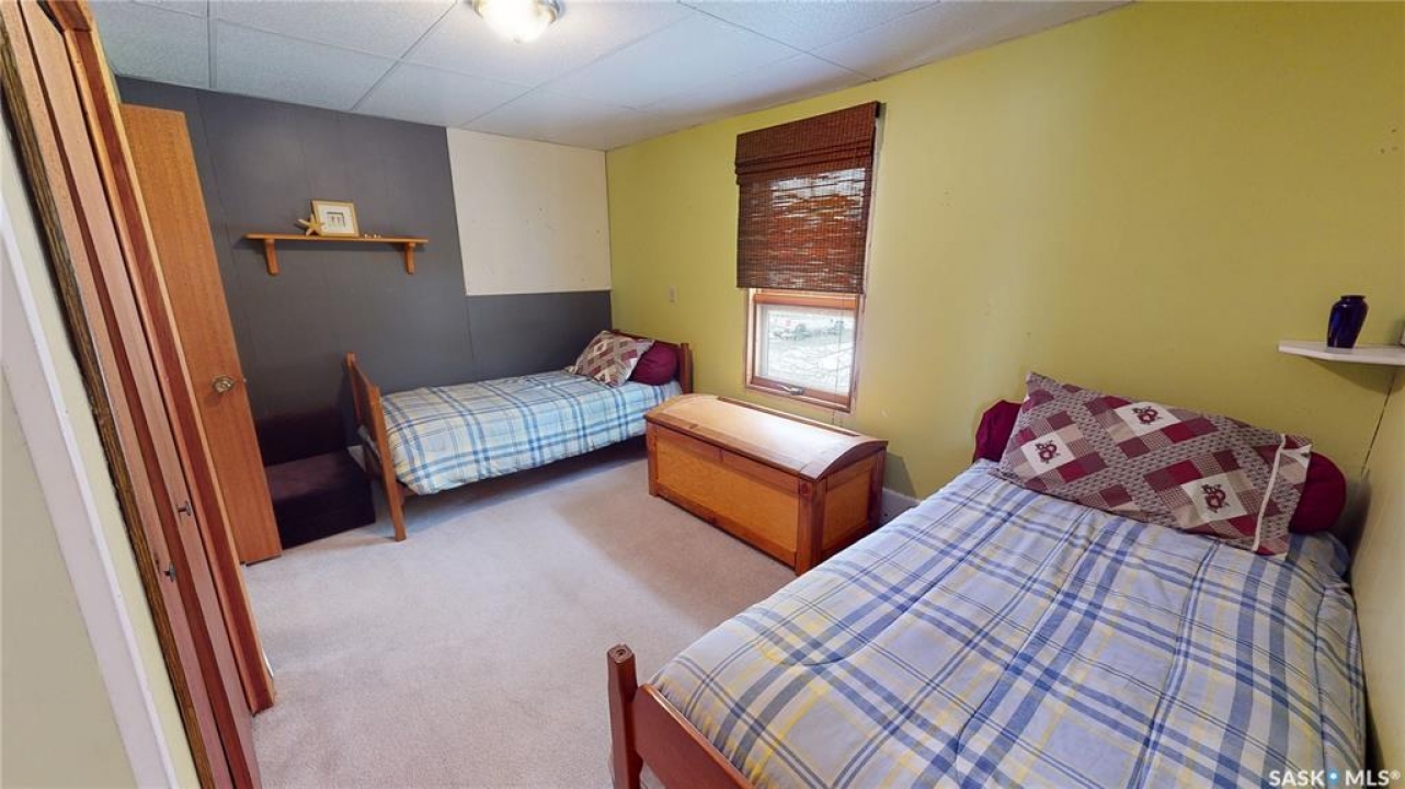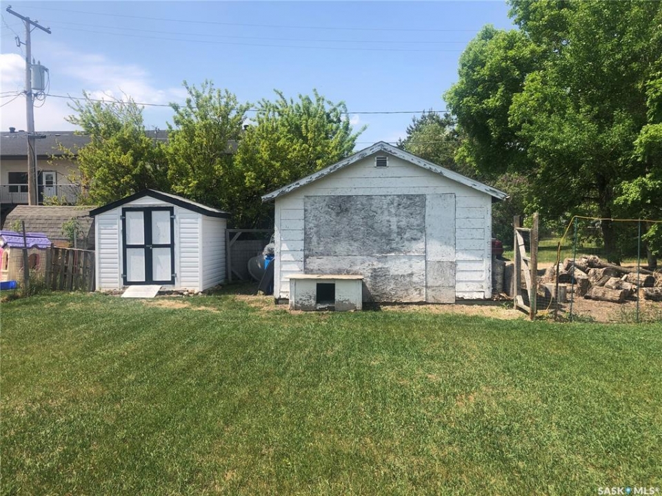 4 BEDROOMS, 2 BATHS, FIREPLACE, DOUBLE LOT, GARAGE. Discover the warmth and charm of this four-bedroom, 1.5 bath Character Home situated on two lots with front and back garages. Step into the inviting wraparound enclosed veranda as you enter into the house. A corner staircase leads you to the 2nd level with 3 bedrooms and a full 4pc bathroom accessible directly from two of the bedrooms. Unwind in the cozy living room complete with a wood-burning fireplace and access to the 4th Floor Bedroom on the Main Level. Proceed through the living room into the dining room and kitchen with windows facing the back yard & deck plus a back door from the kitchen leading right into the fully fenced part of the yard. The kitchen also accesses the conveniently located Laundry Room plus the floor access to the cellar that includes the Gas Furnace and other Utilities. Outside, the yard offers endless possibilities with a treated wood back deck, trees for shade, back garage & shed plus a concrete patio - perfect for a Fire Pit or other backyard activity. The North side of the property is shaded by mature trees, while a greenspace and community playground sit just across the street adding to the home's appeal and central location to the town's amenities include Hospital, K-12 School and Downtown. From the Street front there is plenty of parking on the gravel driveway, along the front fence and in front of the 16 x 24 Garage built in 1995. This home comes complete with a Fridge, Stove, Washer, Dryer, Wall Air Conditioner, Water Softener and Sump Pump. Singles Updated in 2015. Experience it all firsthand with the enclosed 3D Virtual Tour of the property's interior or contact a Realtor for a private viewing!