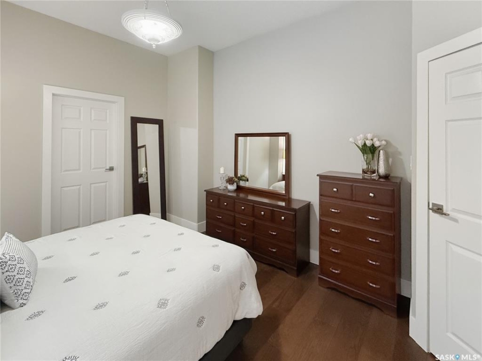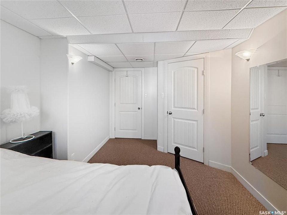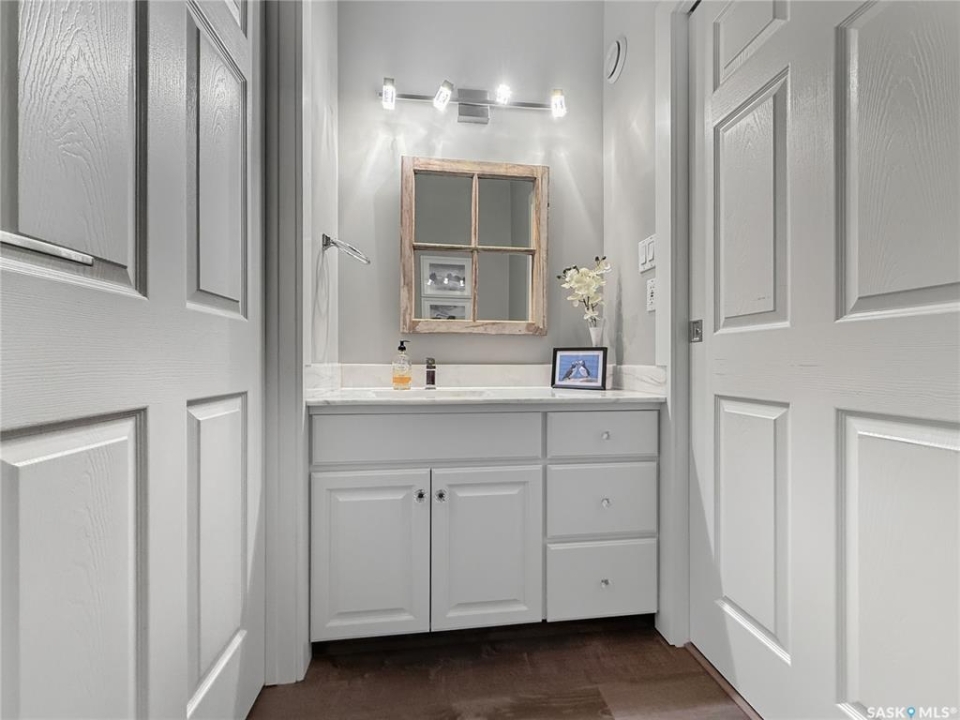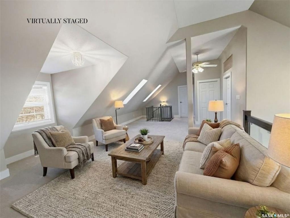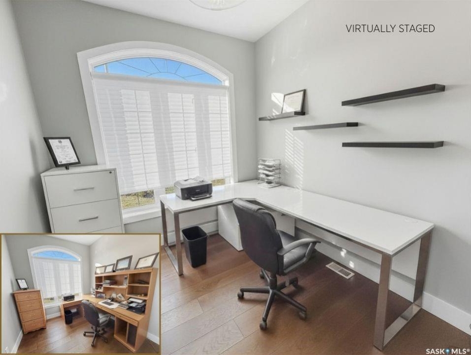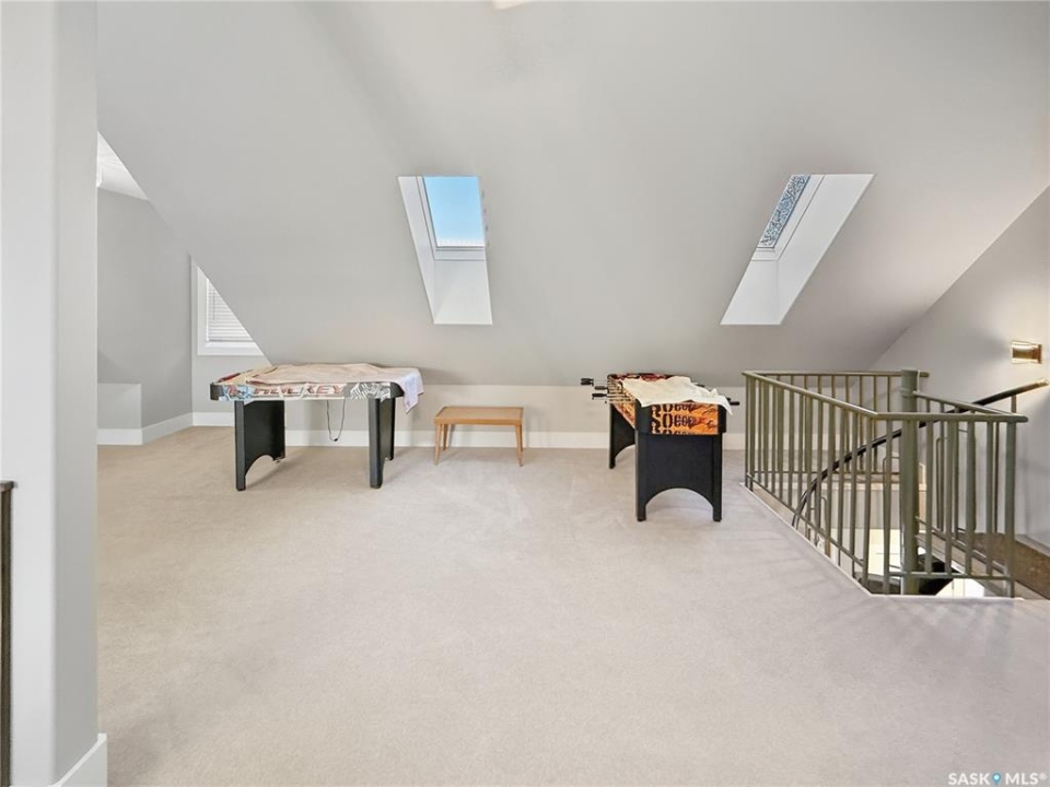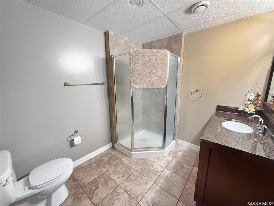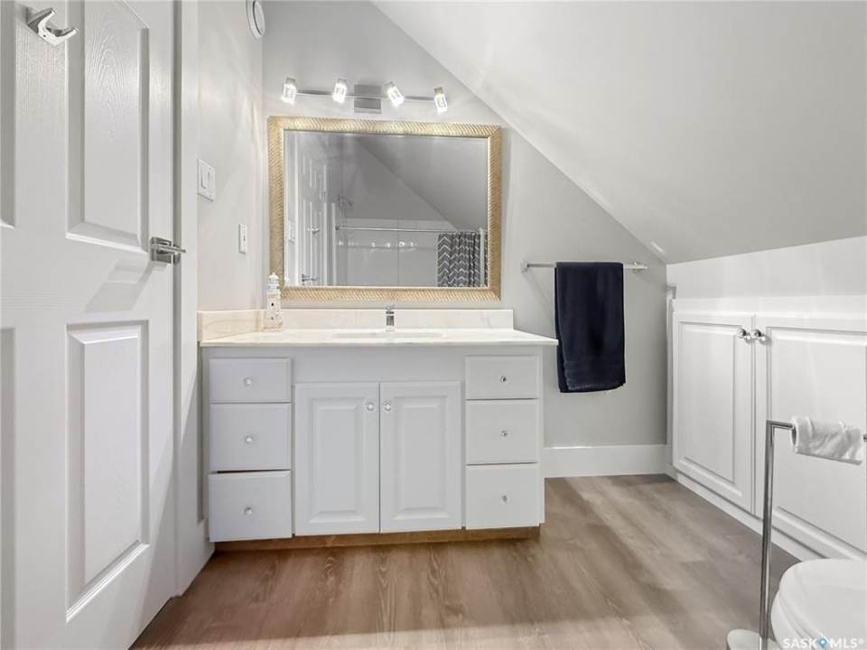 Executive two-storey home located on a quiet cul-de-sac in Swift Current's desirable North Hill neighbourhood. Situated on a mature, oversized pie-shaped lot, this beautifully maintained property offers over 2,400 sq ft above grade with a layout ideal for both everyday living and entertaining. A grand staircase welcomes you into an impressive foyer featuring 10' ceilings, crown moulding, and engineered hardwood flooring. The main floor includes a private office with French doors, a formal dining room filled with natural light, and a spacious living room with updated windows, quality blinds, silk curtains, and a cozy gas fireplace. The fully renovated kitchen (2019) showcases white cabinetry, granite countertops, tile backsplash, under-cabinet lighting, and stainless steel appliances including a double-oven slide-in range. A sit-up peninsula and bright east-facing dining nook provide access to the composite deck and backyard. Main floor laundry, a powder room, and direct entry to the attached garage add everyday convenience. The main floor primary suite offers privacy with a walk-in closet and renovated ensuite featuring granite counters, an oversized custom shower, and a corner jetted tub. Upstairs features a large family room with skylights overlooking the foyer, two spacious bedrooms with a generous Jack & Jill closet, and a full bathroom. The fully developed lower level includes a family room, two bedrooms, a three-piece bath, dance studio/flex space, storage rooms, and access to the lower-level garage. Parking and storage are exceptional with a front attached double garage plus a second garage with alley access—ideal for extra vehicles, hobbies, or workshop space. The private east-facing backyard offers mature landscaping, an oversized tiered composite deck, underground sprinklers on timers, and space to build an additional garage if desired. Shingles replaced in 2024.