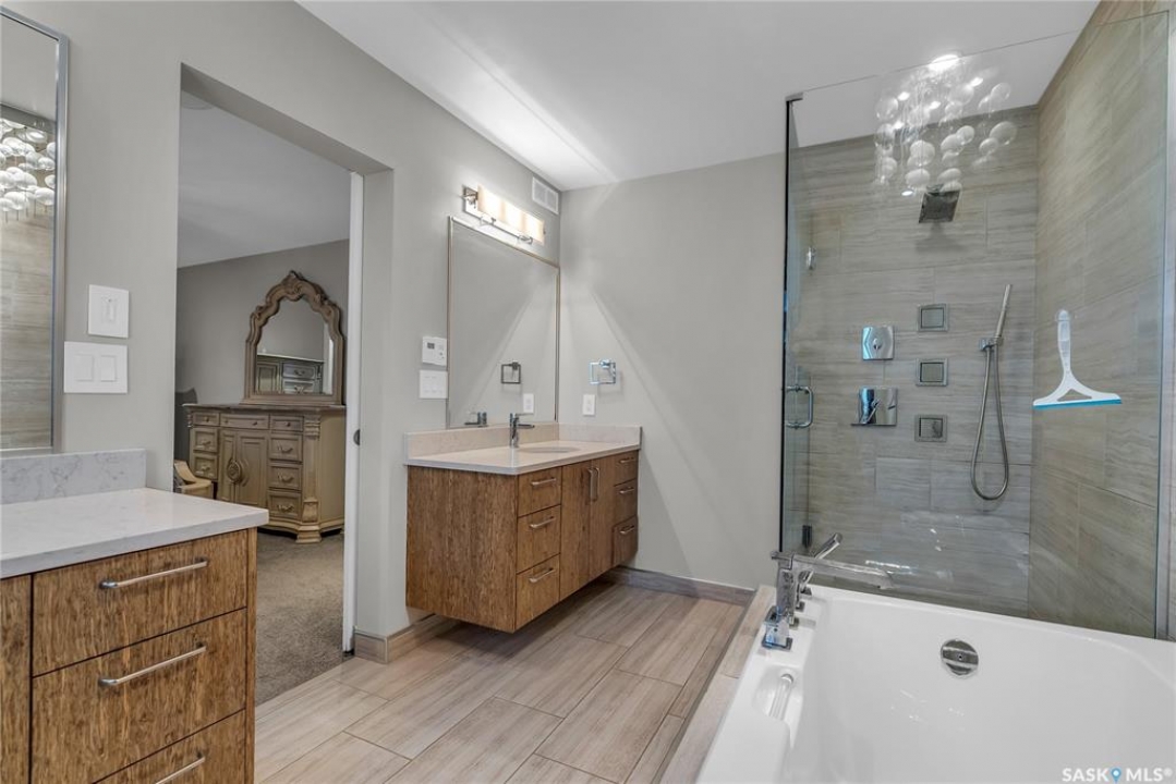 A spacious home with well-proportioned rooms, striking floor to ceiling windows and an abundance of light throughout. This Evergreen - neighbourhood-home proudly sits on a quiet court that's adjacent to green spaces and walking paths, while the all stone and stucco exterior combined with the inlaid brick driveway, proudly boasts easy maintenance and beautifully timeless street appeal. Upon entering this 5 bedroom, 4 bathroom fully developed home you will find a front facing living room that features a tastefully tiled floor to ceiling 2-sides fireplace, and a spacious kitchen with stone counter tops, large breakfast bar and dining room, plus large walk-in pantry and 1/2 bath. Notables features of the 2nd level; a large laundry room with built in storage and linen cabinets, and a DELUXE primary suite with a bonus room from beyond the walk-in closet that works well as a den, a nursery or an extension of the walk in closet, and a beautiful 5 piece ensuite bathroom, offering double sinks and separate tub/shower. The developed basement offers a large family room, computer nook, 2 large bedrooms, a 3 piece bathroom and plenty of storage space. The deep back yard is ideal for the garden enthusiasts or for those desiring to add a swimming pool. Additional features include central air and built in speakers through out the main floor, garage and deck area. An ideal family home all around!