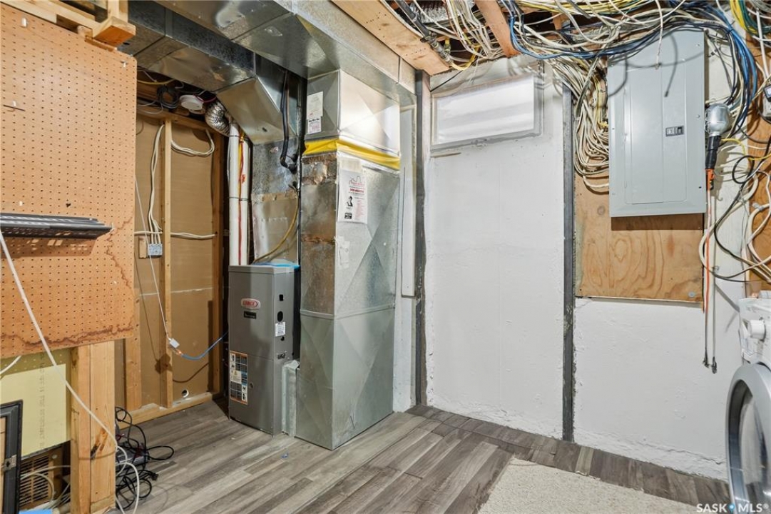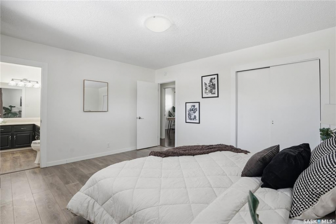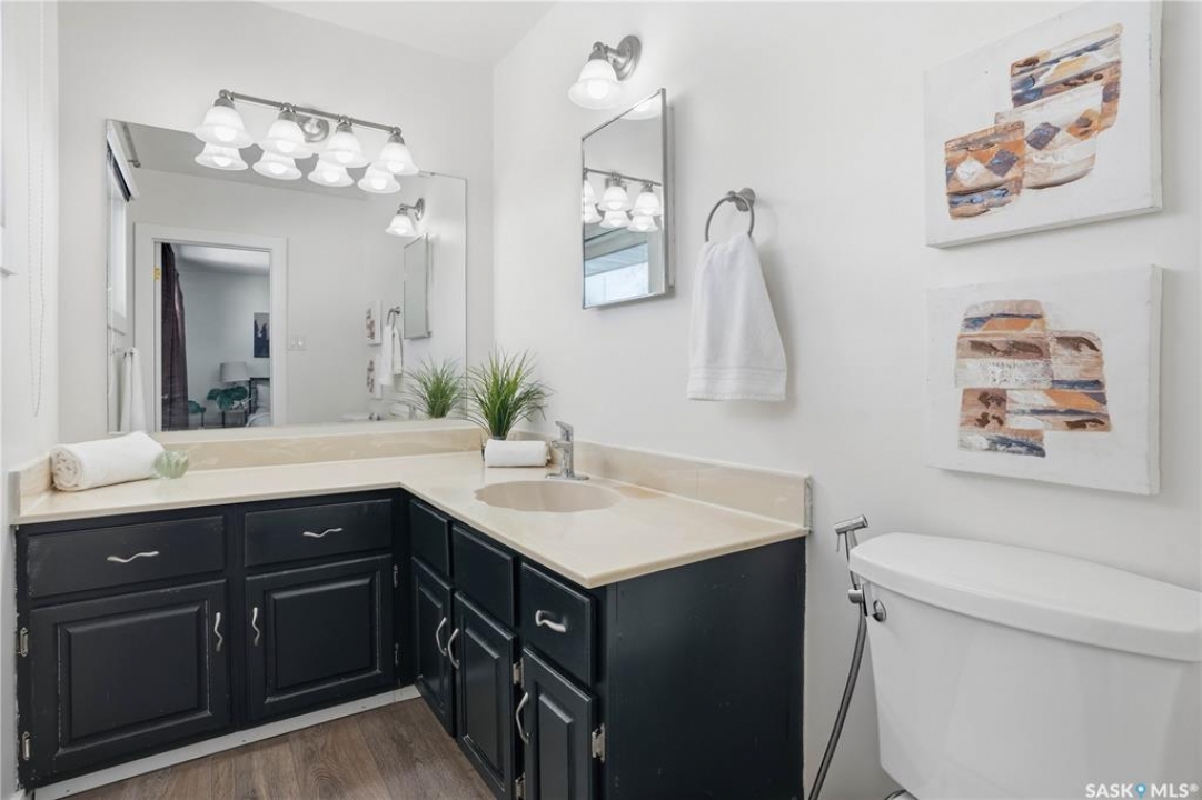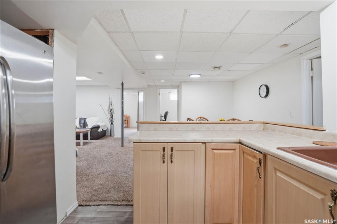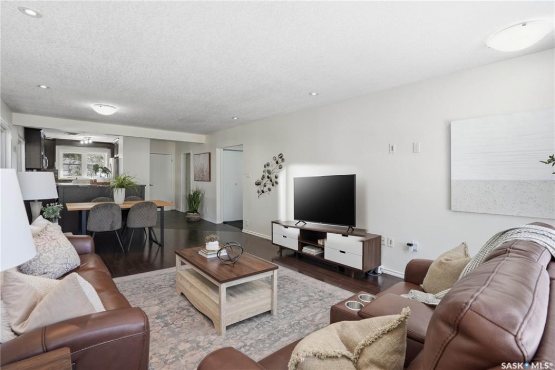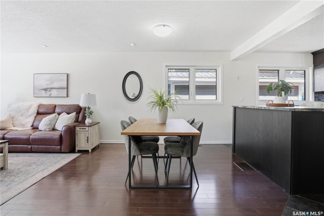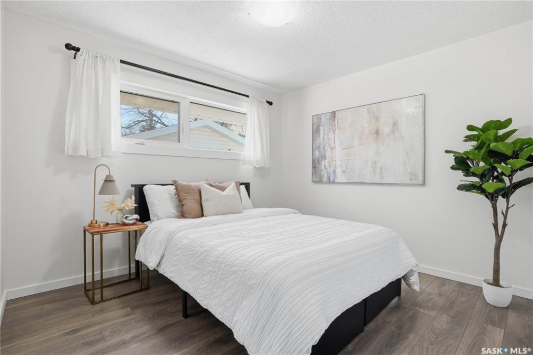 Welcome to this spacious, over 1,300 sq. ft. bungalow, ideally situated on a generous 60 x 109 ft. lot in a quiet, tucked-away crescent in highly sought-after Hillsdale. With 6 bedrooms, 3 bathrooms, and a flexible layout, this home offers exceptional space and comfort for families, multi-generational living, or anyone seeking room to grow. The thoughtfully updated main floor features an open-concept living, dining, and kitchen area that creates a warm, inviting space for everyday living and entertaining. Most main-floor windows have been upgraded to PVC, and the primary bedroom includes a convenient 2-piece ensuite, while a full bathroom serves the additional bedrooms. The fully developed basement adds even more versatility, offering a non-regulated mortgage helper suite—an ideal setup for students attending nearby, University of Regina. Complete with separate entry, a kitchenette, living and dining area, and 3 additional bedroom spaces. Laundry is conveniently located in the utility room. Step outside and enjoy the fully fenced backyard with a new fence (2025), perfect for relaxing, entertaining, or family activities. Just a one-minute stroll away is Munroe Park, a beautiful green space ideal for recreation, sports, and leisurely walks. With convenient backyard access to the park, it truly feels like an extension of your outdoor living space. Additional highlights include a detached double garage, central air conditioning, high-efficiency furnace (2009), updated electrical panel, and quick possession available. This is a rare opportunity to own a spacious, well-located home in one of Regina's most desirable neighbourhoods. Contact your agent today to book your private showing.